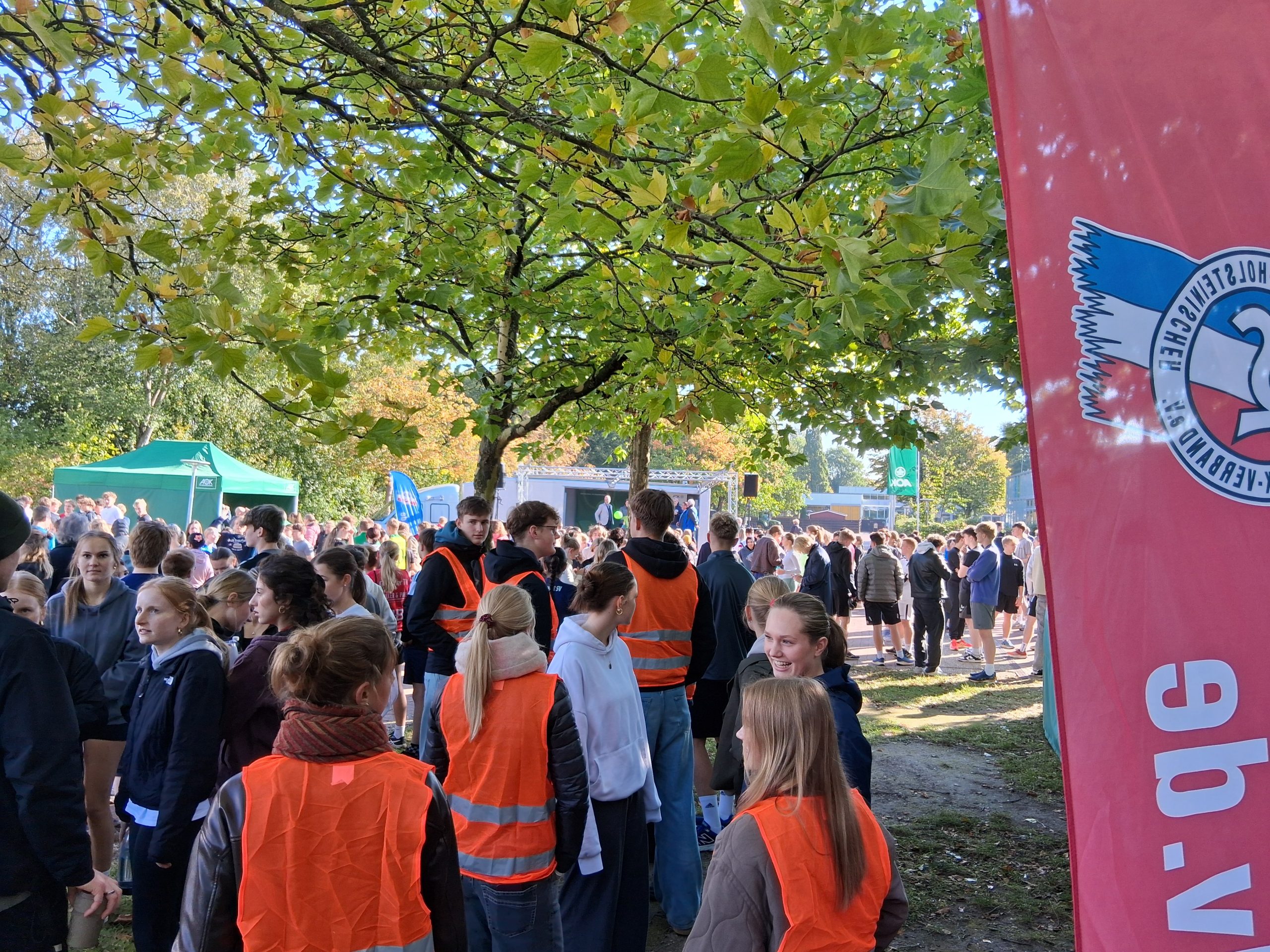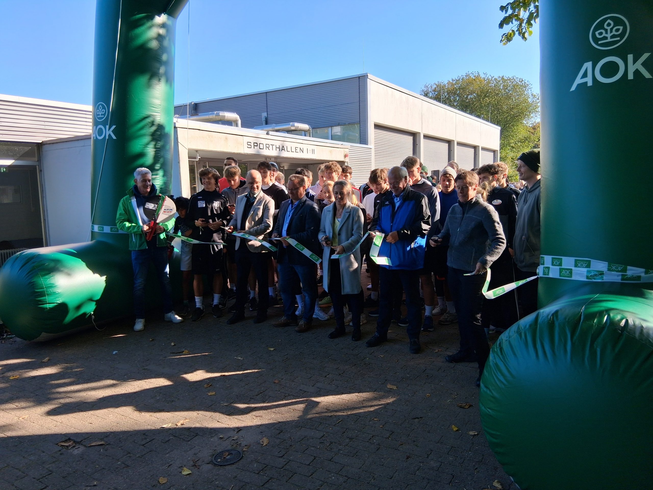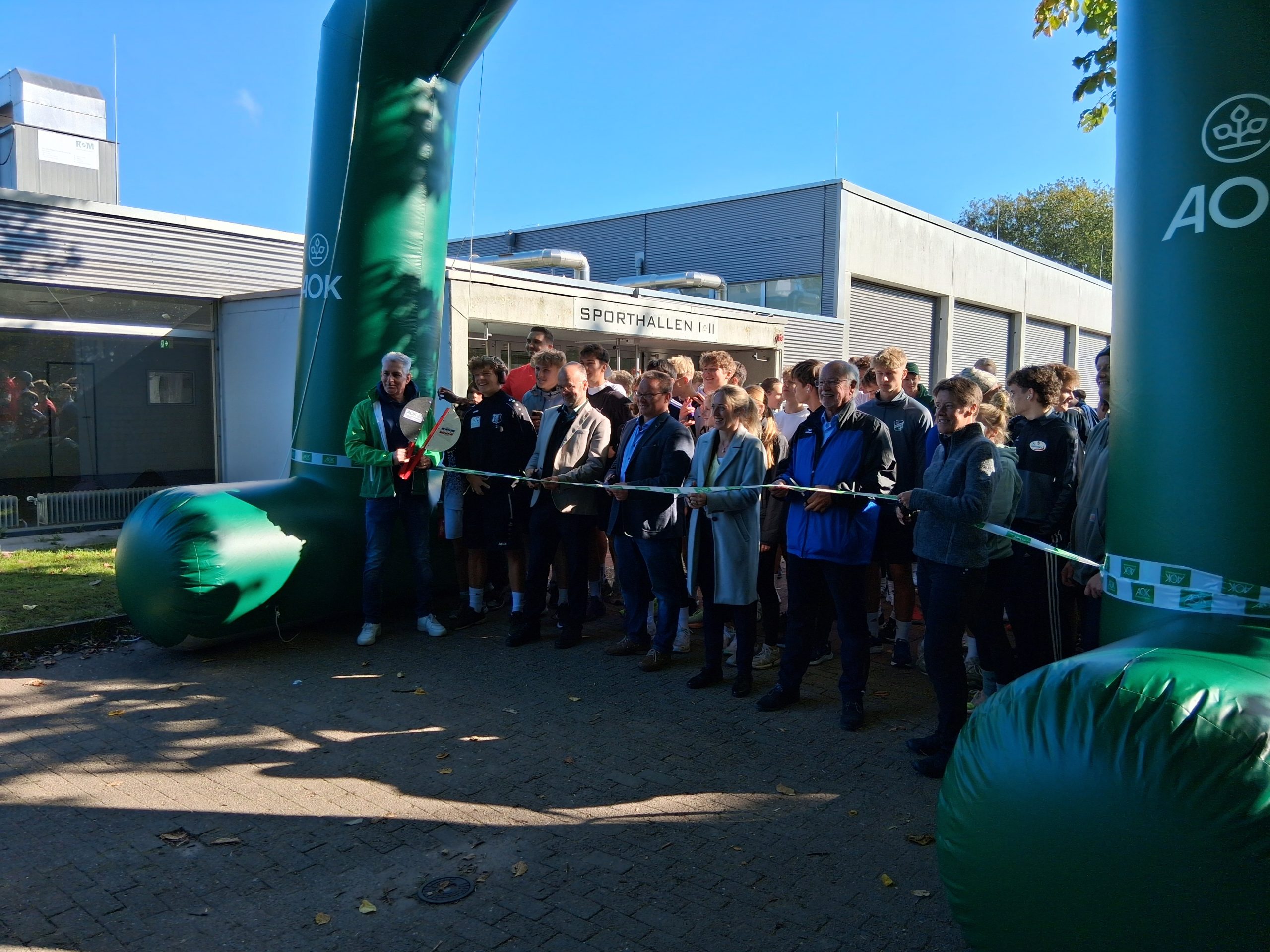 Los ging es heute in Eckernförde. Um 11:15 Uhr gab AOK-Serviceregionsleiter Stefan Kölpin zusammen mit SHLV-Vize-Präsident Matthias Welz, Bürgermeisterin Iris Ploog, Stephanie Heß als Vertreterin des Bildungsministeriums sowie den beiden Schulleitern Michael Rehbehn und Sebastian Klingenberg das Startsignal für den landesweiten Laufabzeichen-Wettbewerb in Schleswig-Holstein. Darauf hatten rund 1.000 Schülerinnen und Schüler in Eckernförde schon gewartet, um voller Elan ihr Laufabzeichen zu absolvieren.