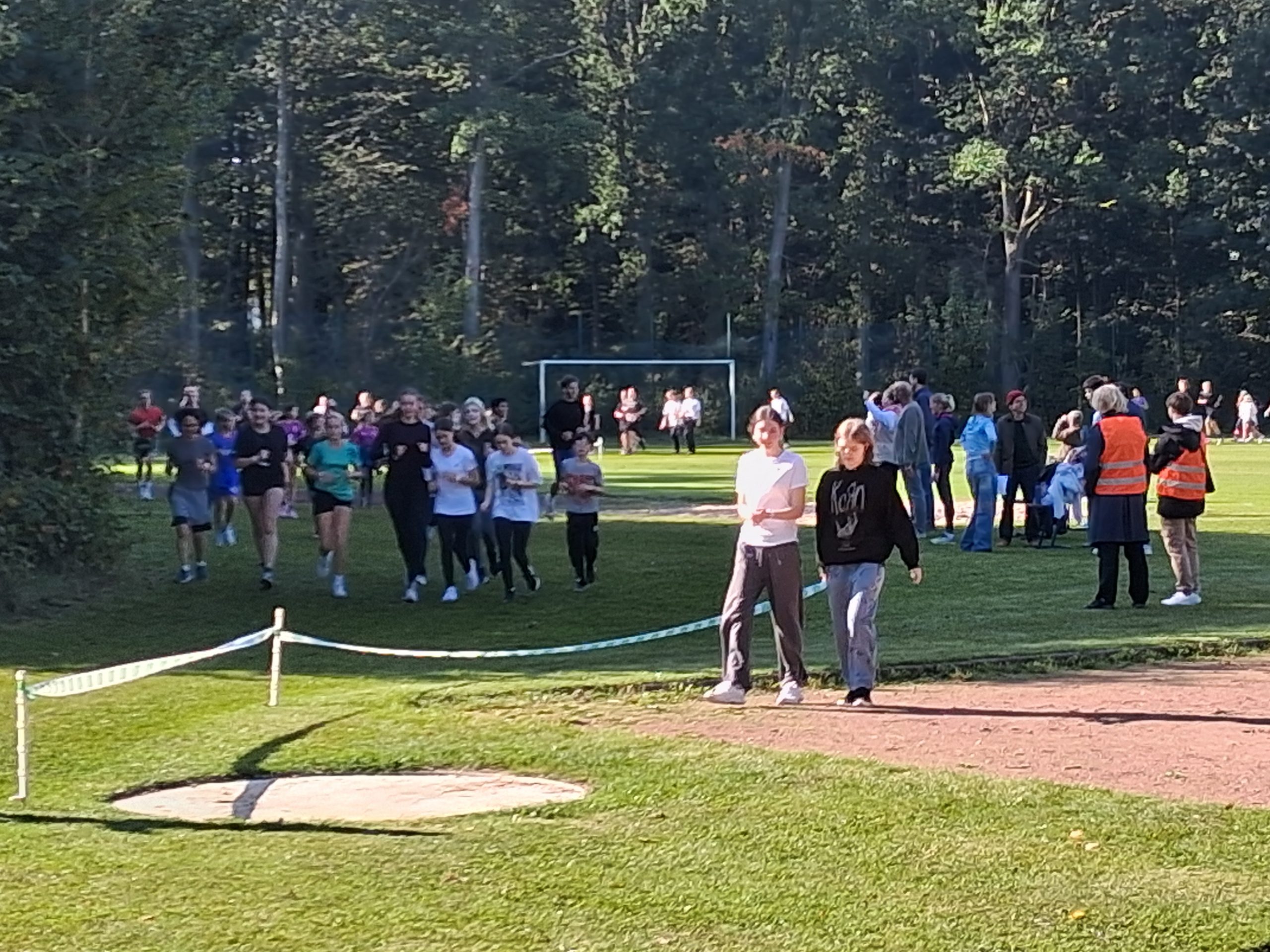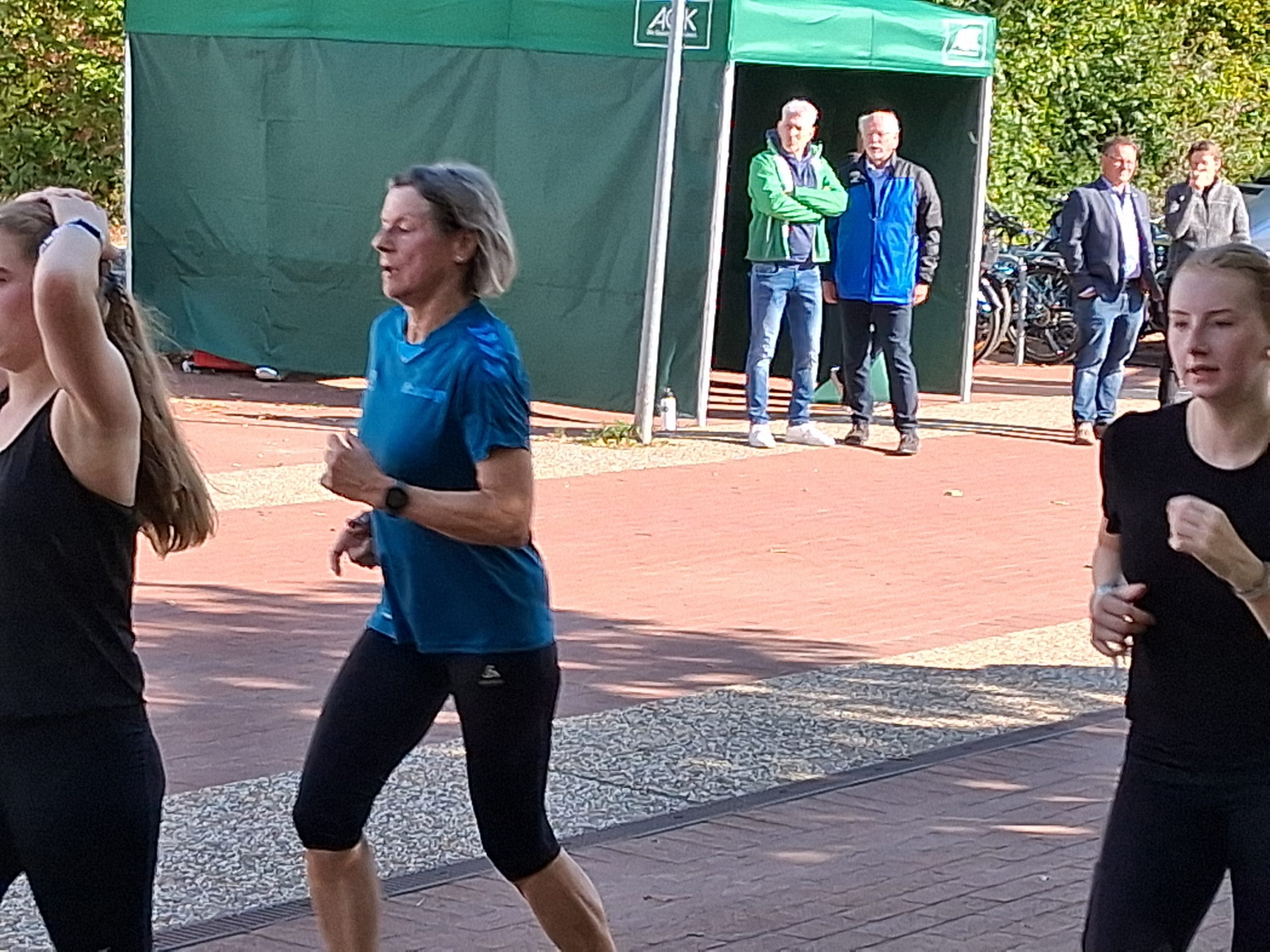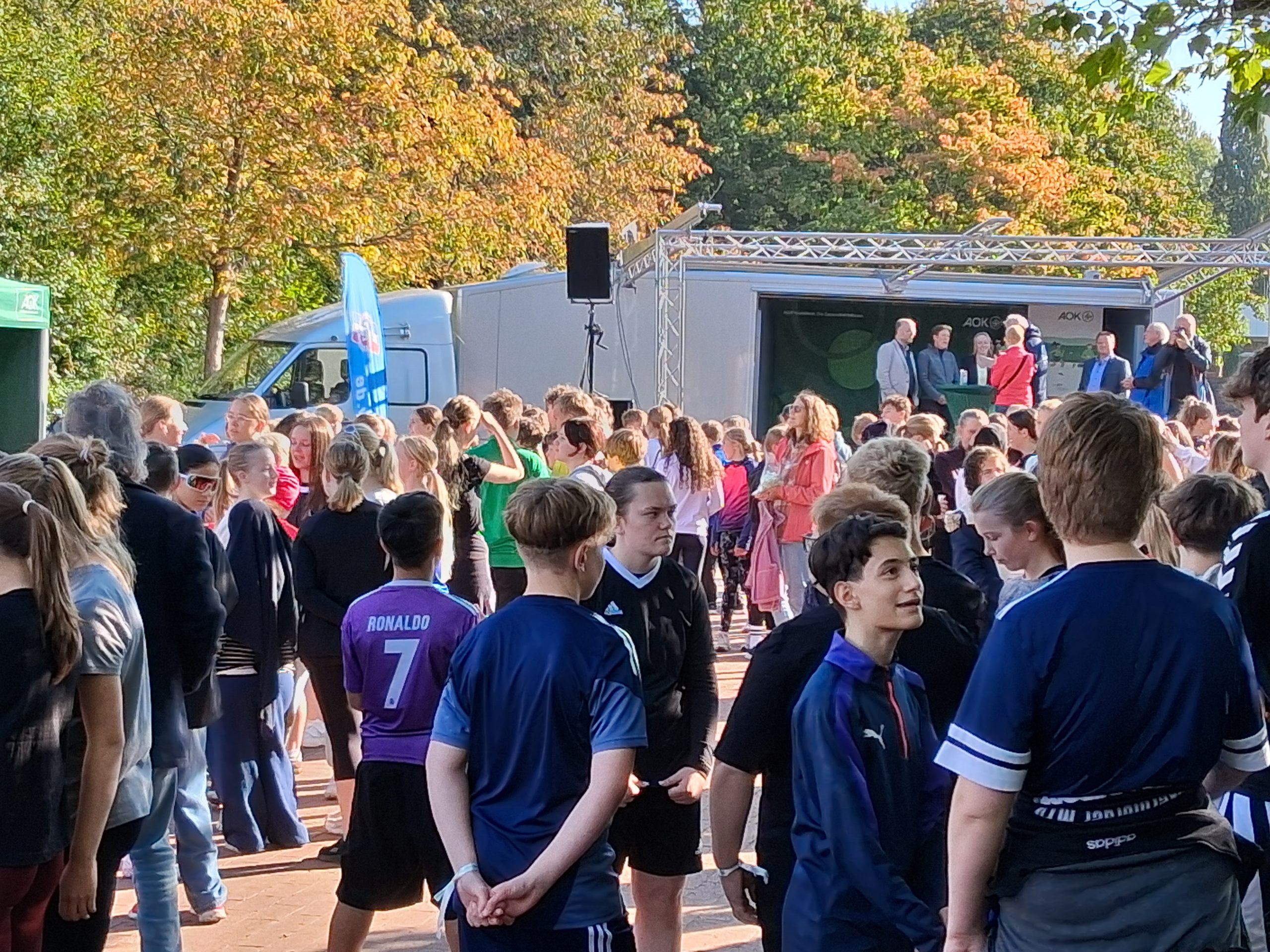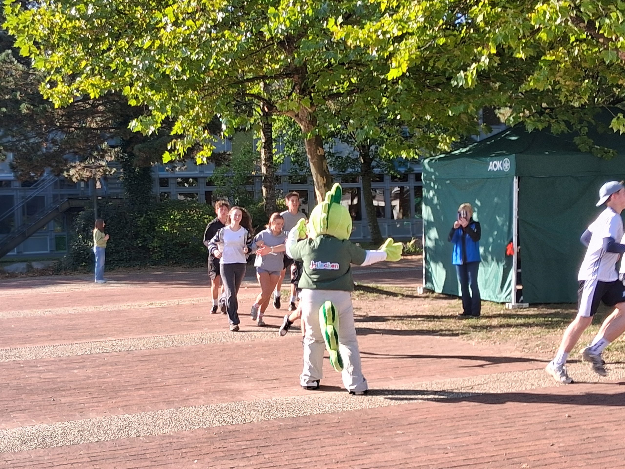 Nach dem Warm-up durch die Schülerinnen und Schüler aus dem Sportprofil des 13. Jahrgangs wurden die mehr als 1.000 Schülerinnen und Schüler der Peter-Ustinov-Schule und der Jungmannschule auf dem Schulvorplatz mit dem Startsignal von AOK-Serviceregionsleiter Stefan Kölpin auf die Strecke geschickt. Der circa ein Kilometer lange Rundkurs führte durch die Grünanlagen neben der Schule zum Sportplatz und von dort wieder zum Vorplatz zurück. So drehten die Schülerinnen und Schüler ihre Runden, bis sie ihre persönlich anvisierte Zeit für das Laufabzeichen erreicht hatten.