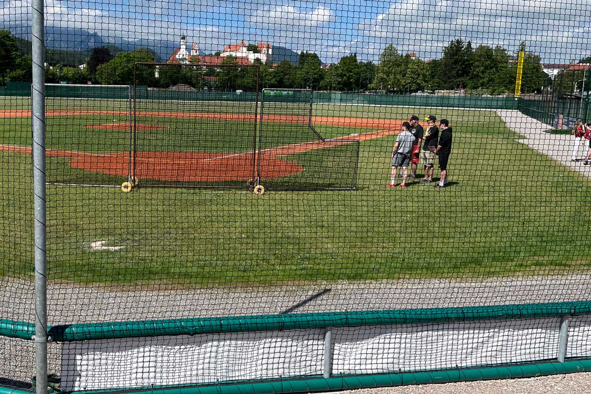 Am Samstag, 26.06.2021 reiste unser Schüler 1-Team zum Doubleheader nach Füssen. Nach der Anfahrt durchs schöne Allgäu vorbei an den Seglern am Forggensee und an Schloss Neuschwanstein wartete gleich das nächste Highlight: das neue King’s Field der Royal Bavarians. Auch wenn die Anlage noch nicht ganz fertig ist, kann man jetzt schon erkennen, welches Schmuckstück die Royal Bavarians da haben. Direkt am Lech gelegen mit Blick auf das Hohe Schloss und die Bergwelt dahinter. Zusätzlich führt ein Radlweg direkt am Feld vorbei und das ganze Spiel über blieben immer wieder Zuschauer hängen, die das Baseball-Treiben interessiert beobachteten.