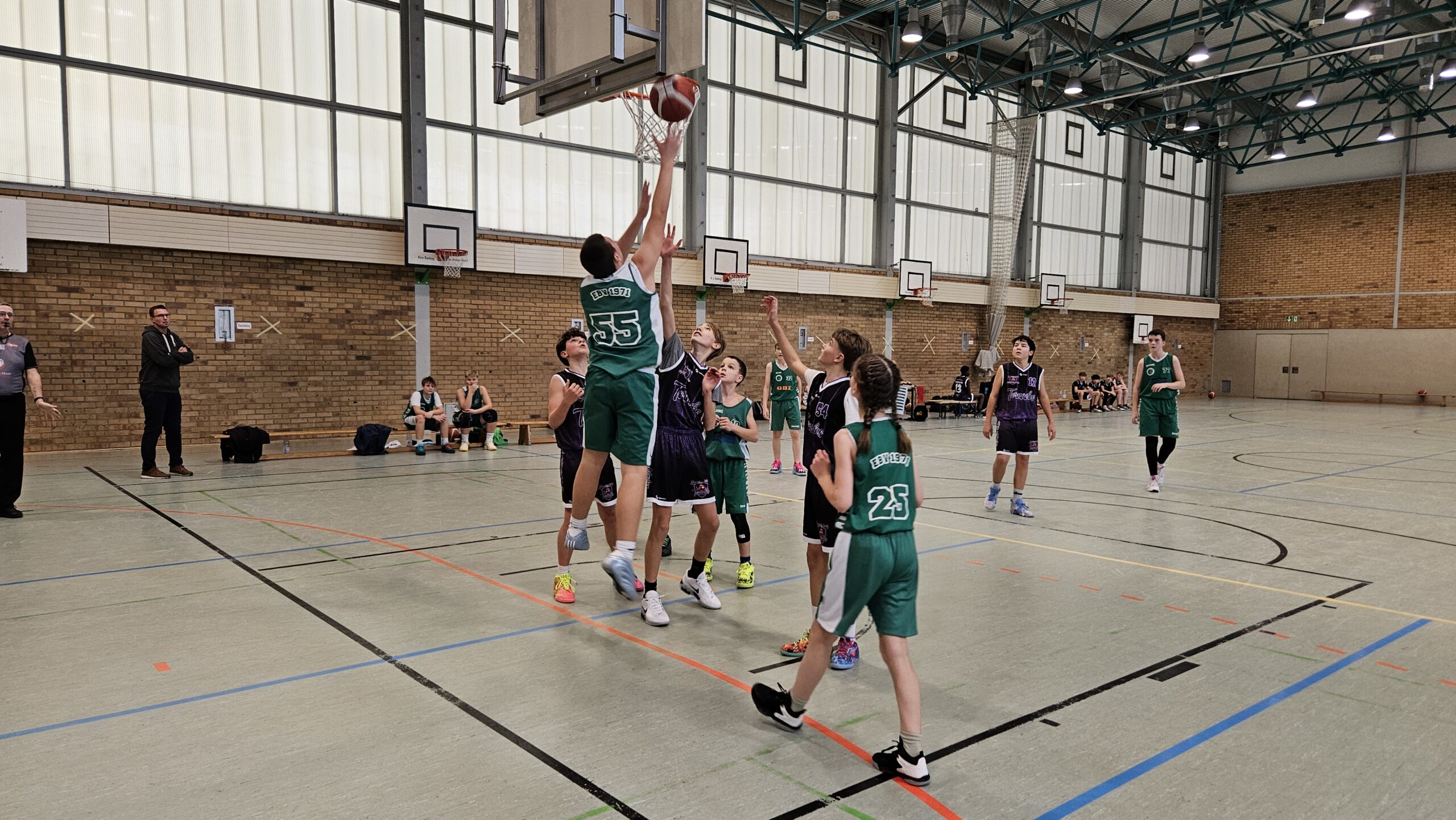 (mbor/dkar) Mit zwei Heimsiegen und sehr viel Engagement in beiden Spielen beendeten die Mädchen und Jungen der U 14 das Jahr 2025. Das EBV-Team von Trainerin Anne Vorhoff und Trainer Daniel Karls gewann gegen die SG Rot-Weiß Neuenhagen klar mit 84:61 (39:27). Spannender wurde es nach einem Spiel Pause gegen die SV Stahl Hennigsdorf Tornados. Hier glänzten die Gastgeber nach hartem Kampf nach einem Rückstand bis ins 4. Viertel hinein noch mit einem spektakulären 76:69 (29:39) – Sieg.