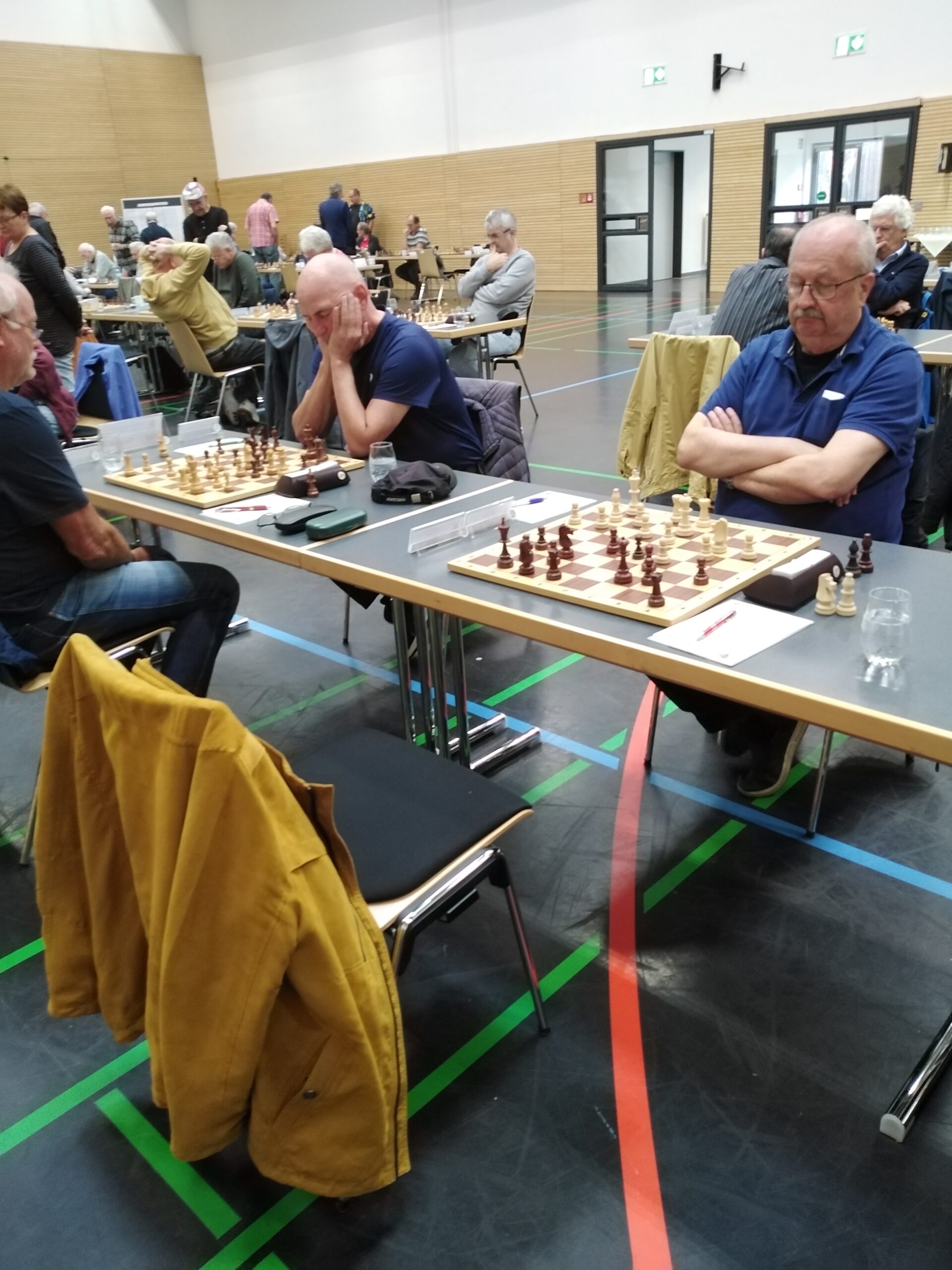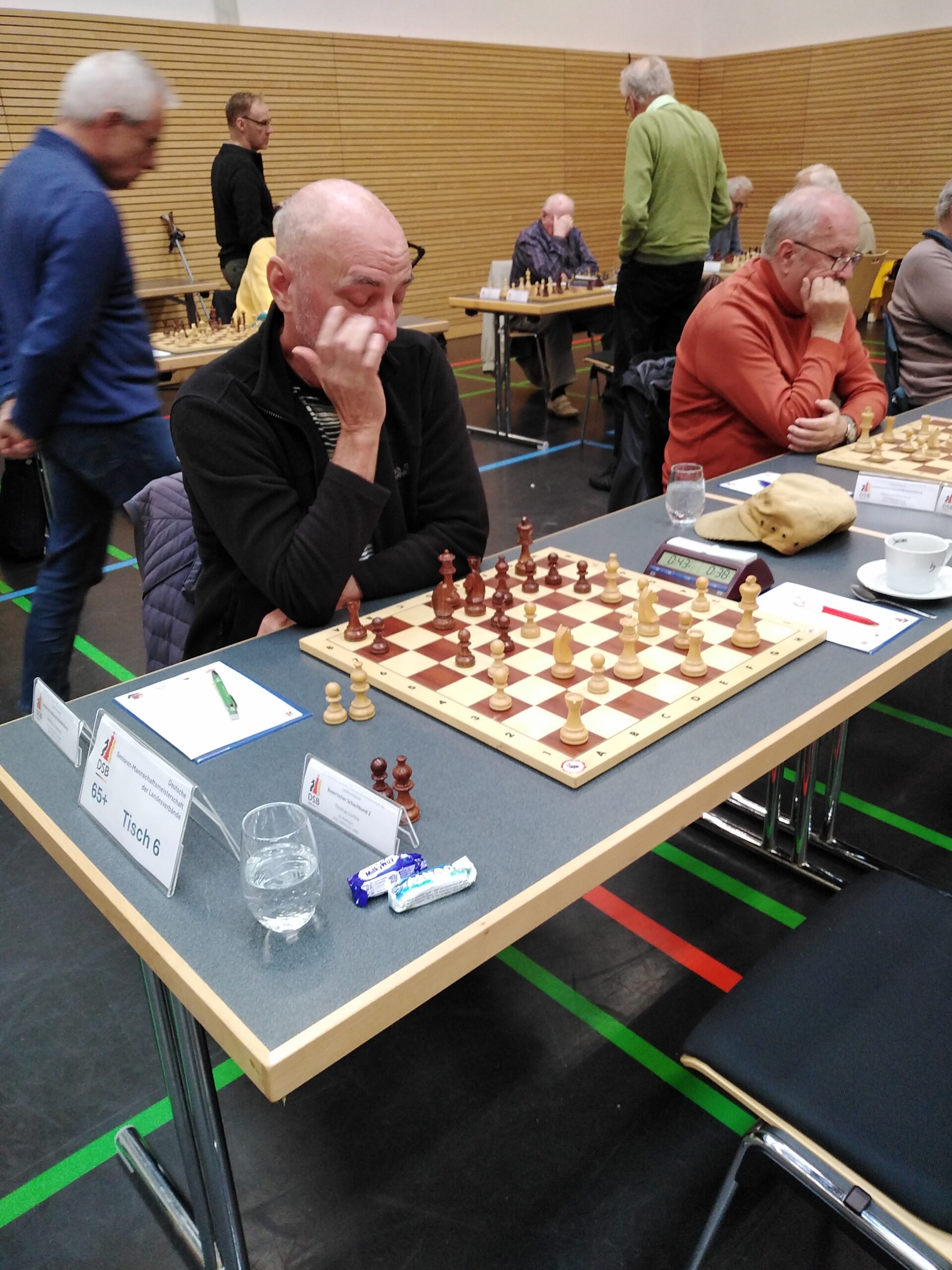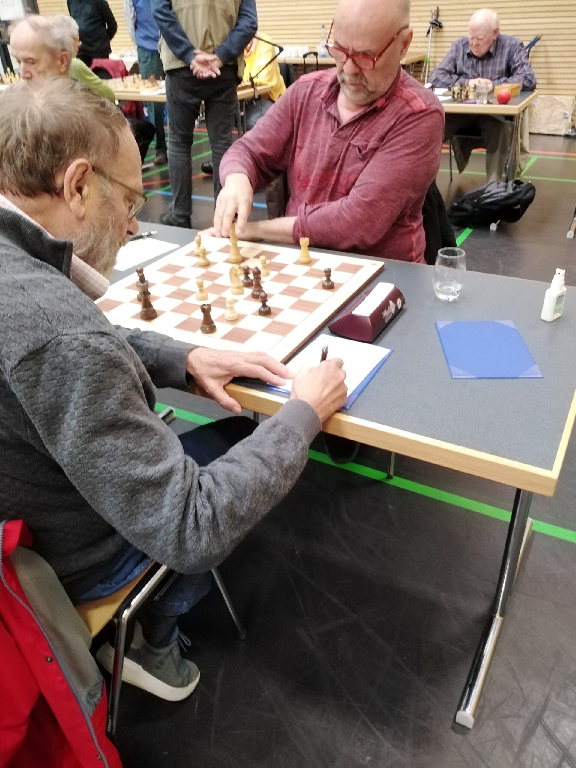 Brett 4 Detlev Kuhne legte nach 3,5 Stunden Spielzeit das erste Remis vor, Eckehard Ellenberg (Brett 2) erspielte sich ebenfalls ein Remis. Hans-Rainer Urban musste den Sieg an seinen Gegner abgeben und Brett 1 Andreas Woschech kämpfte bis zum Schluss, aber es reichte nicht.
