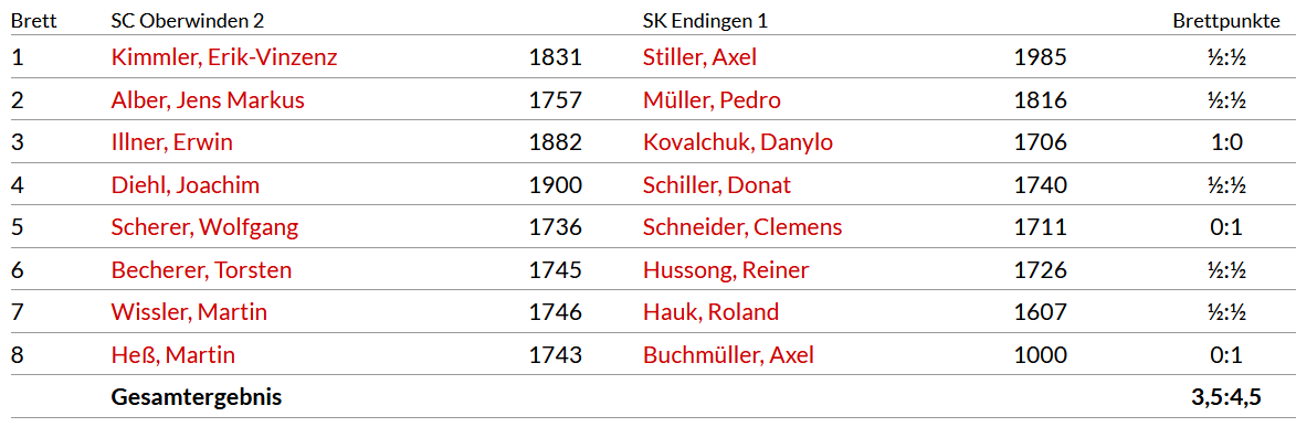 „DWZ schießt keine Tore“ bzw. knappe 3,5 : 4,5 Niederlage unserer Zweiten gegen den stark aufgestellten Gegner aus Endingen…