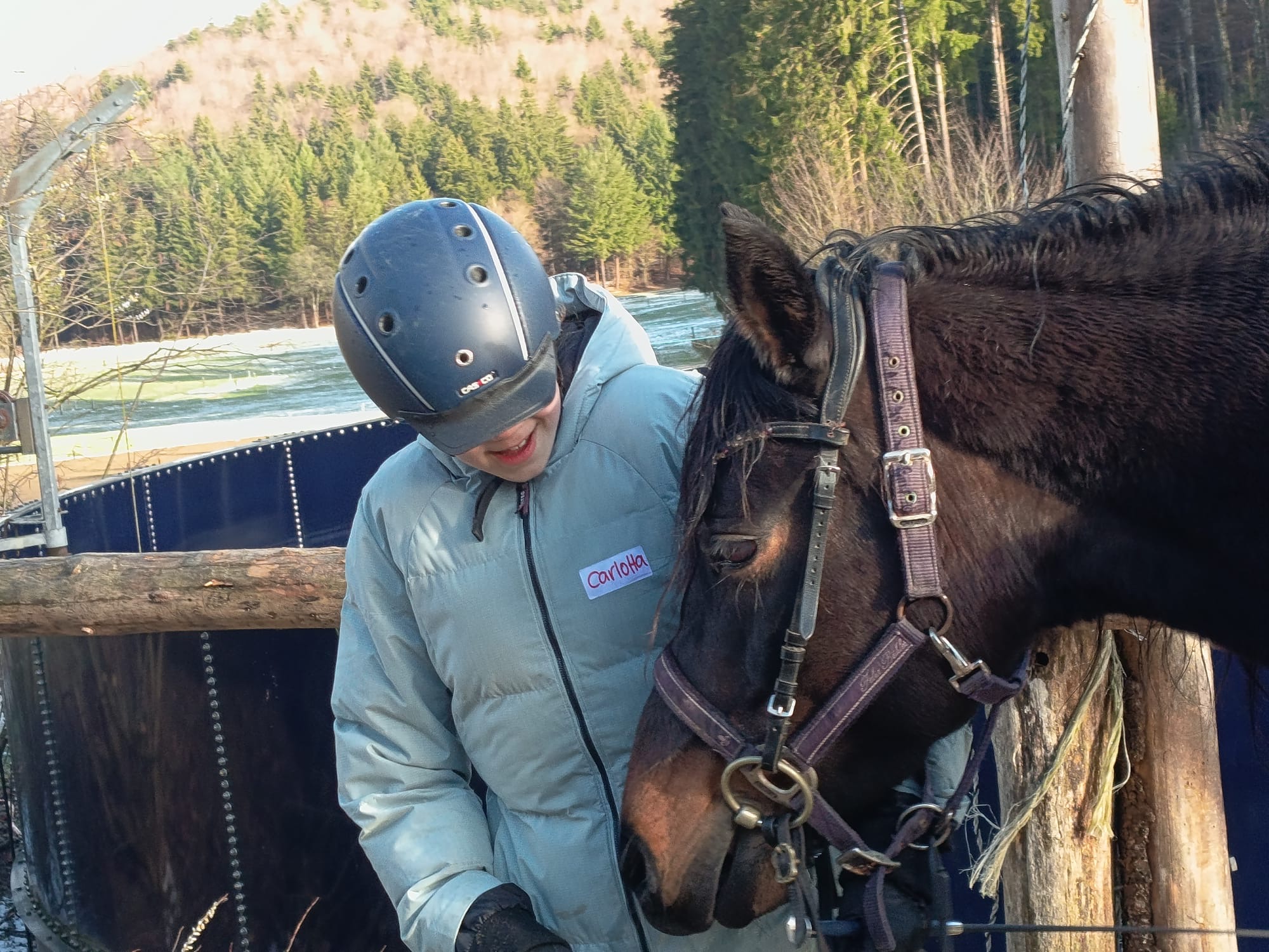 Am Nachmittag ging es dann ganz entspannt zu den Pferden. Wir haben uns in zwei Gruppen aufgeteilt, damit jede in aller Ruhe Zeit mit ihrem vierbeinigen Partner verbringen und die ersten Runden reiten konnte. Ohne Eile konnten sich alle aufeinander einstellen.