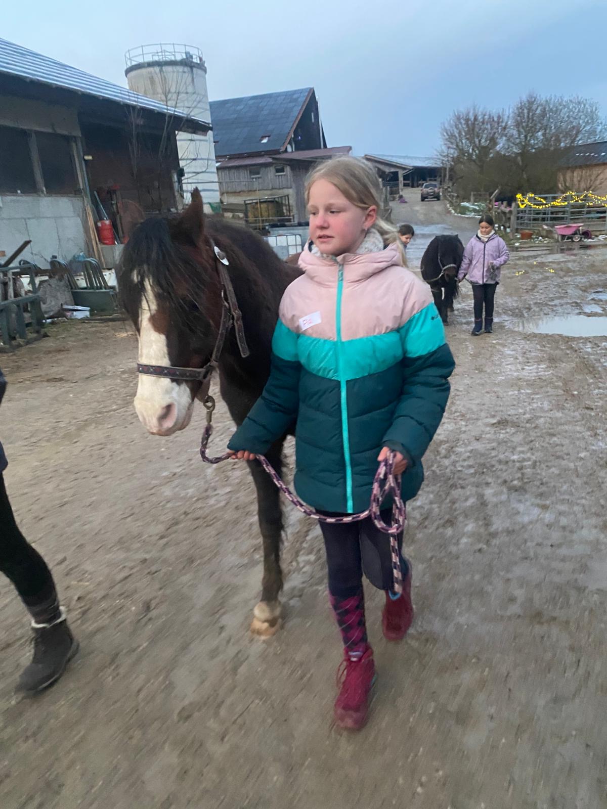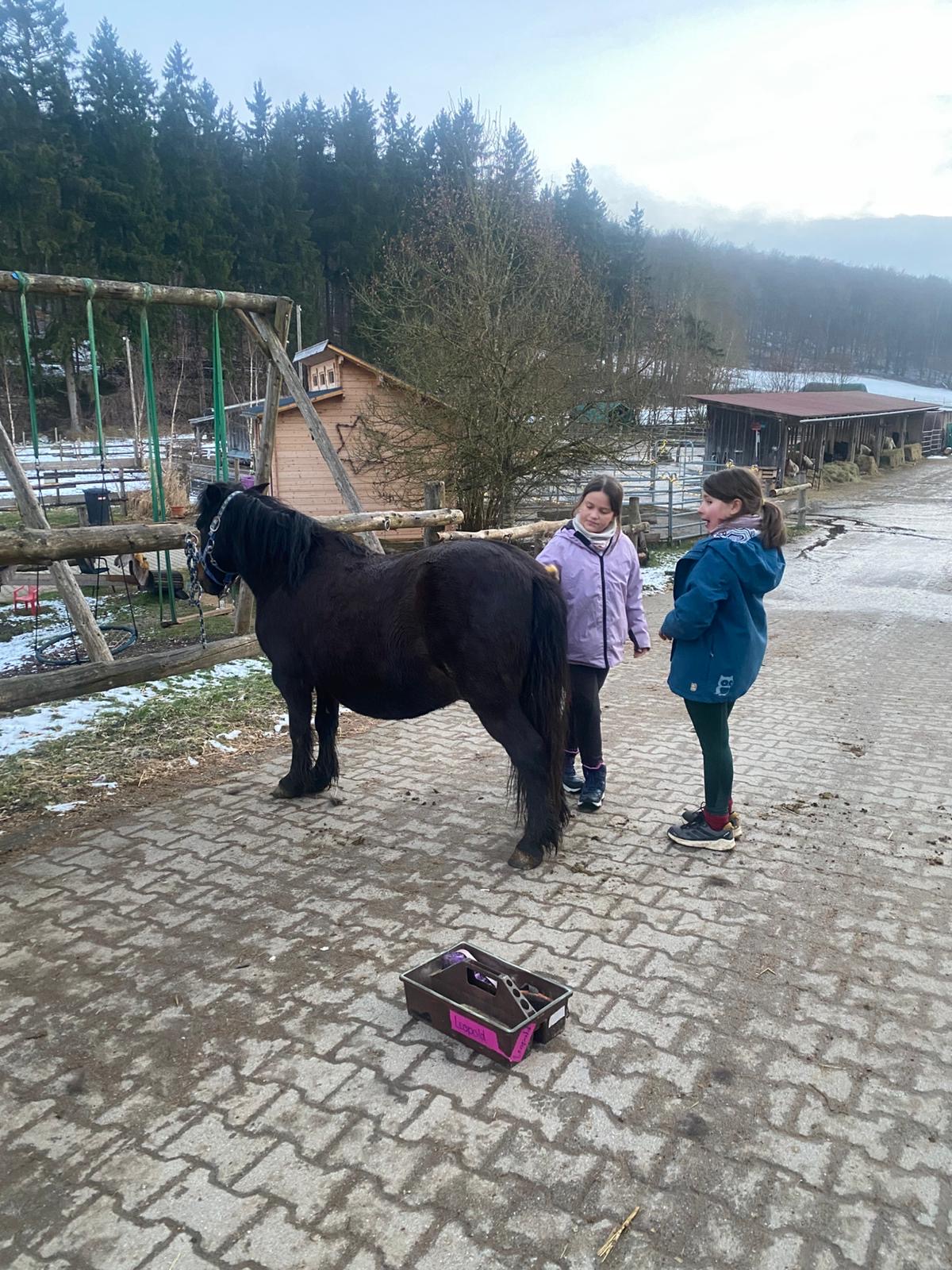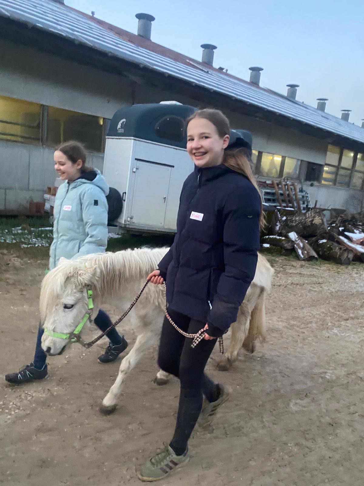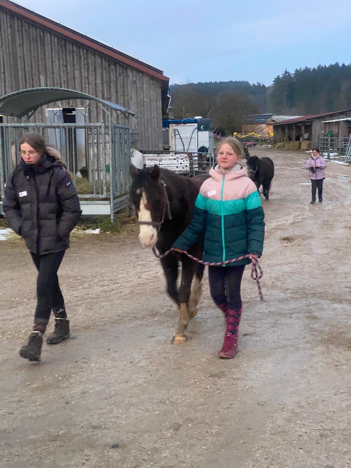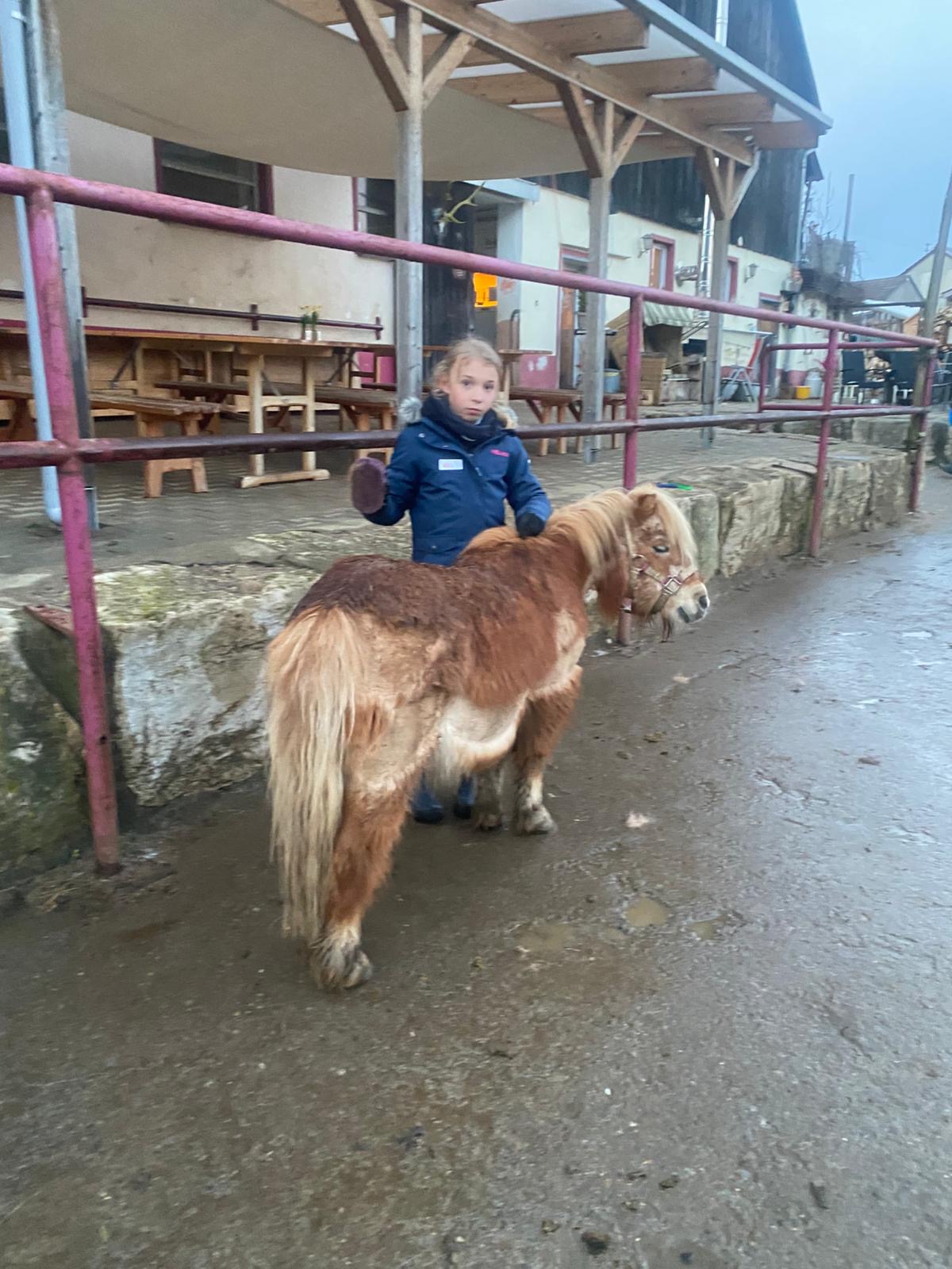 Nach einem gemütlichen Abendessen, bei dem wir uns alle wieder aufgewärmt haben, stand noch unser Ponyprogramm auf dem Plan. Wir sind nochmal zu den Ponys in den Stall, haben Zeit mit ihnen verbracht und den Tag gemeinsam ausklingen lassen. Ein richtig schöner, harmonischer erster Tag!