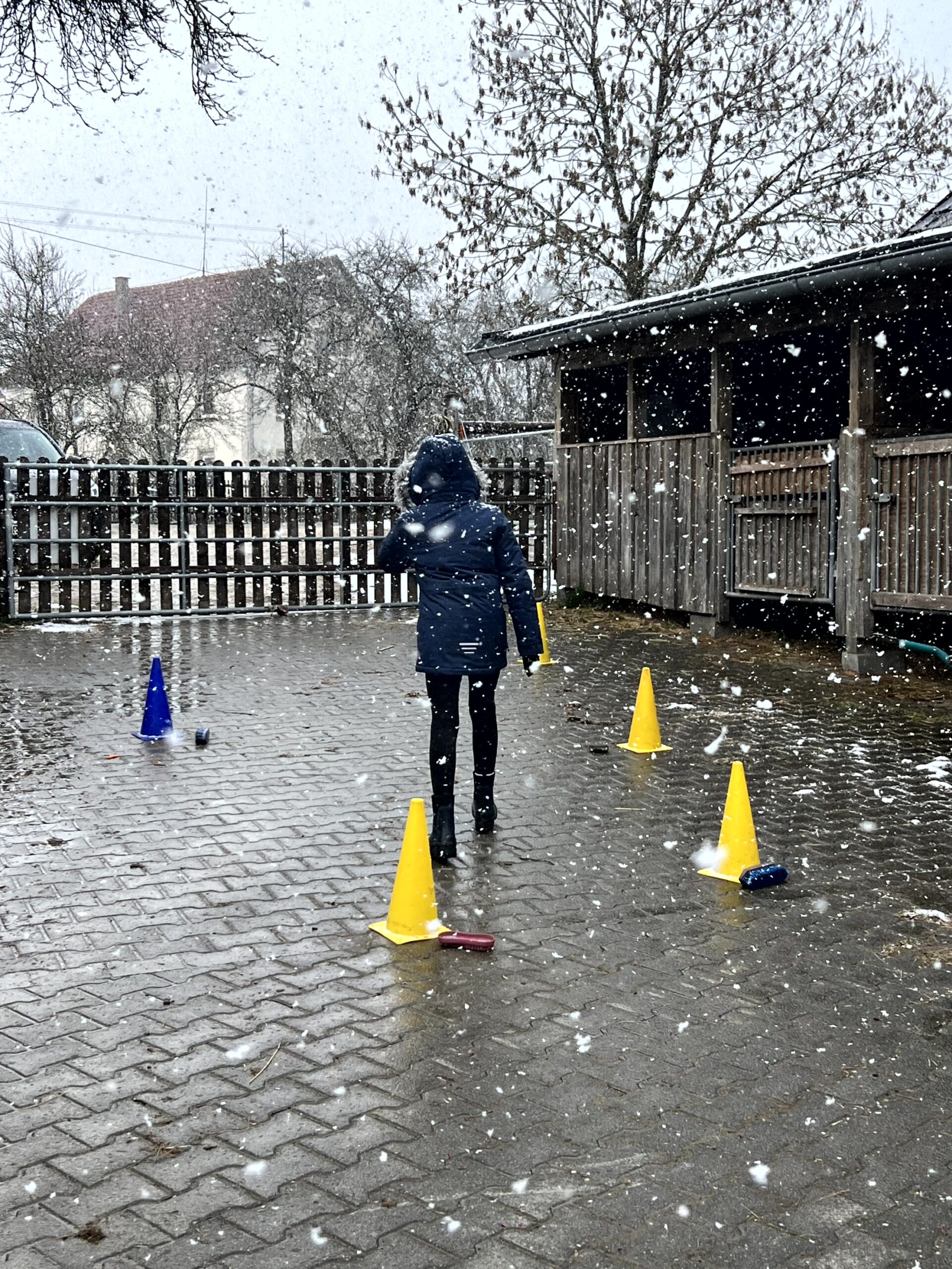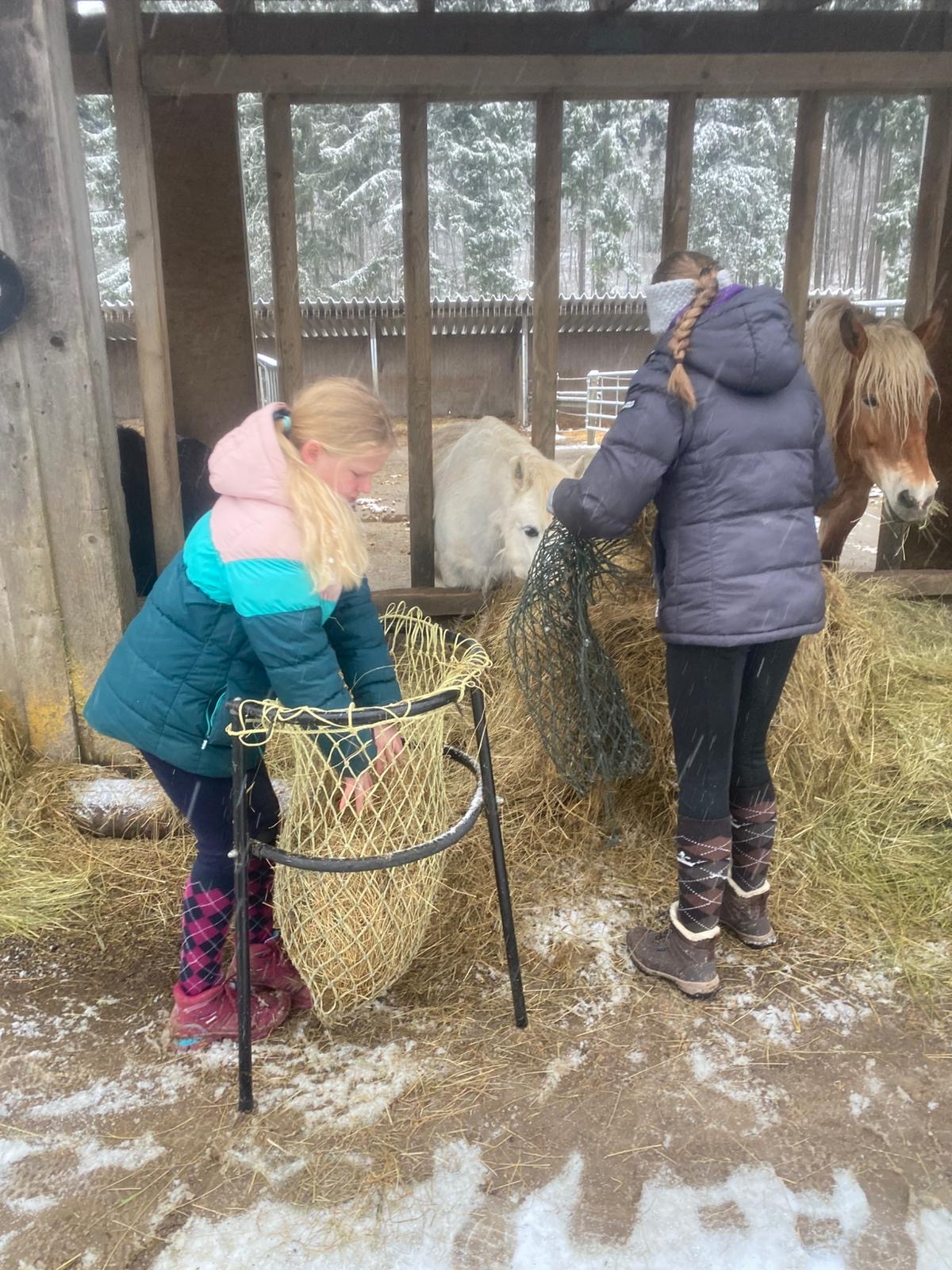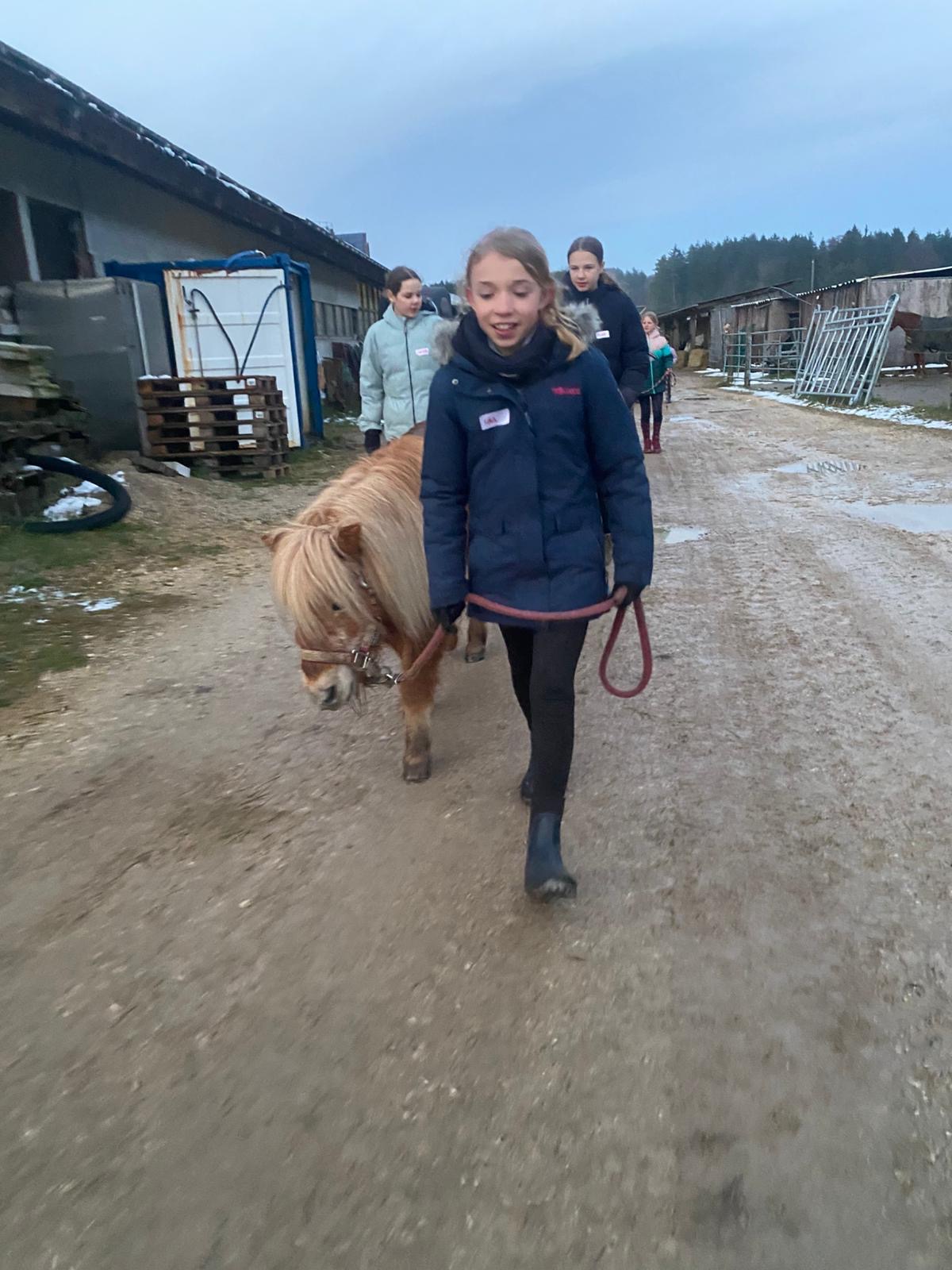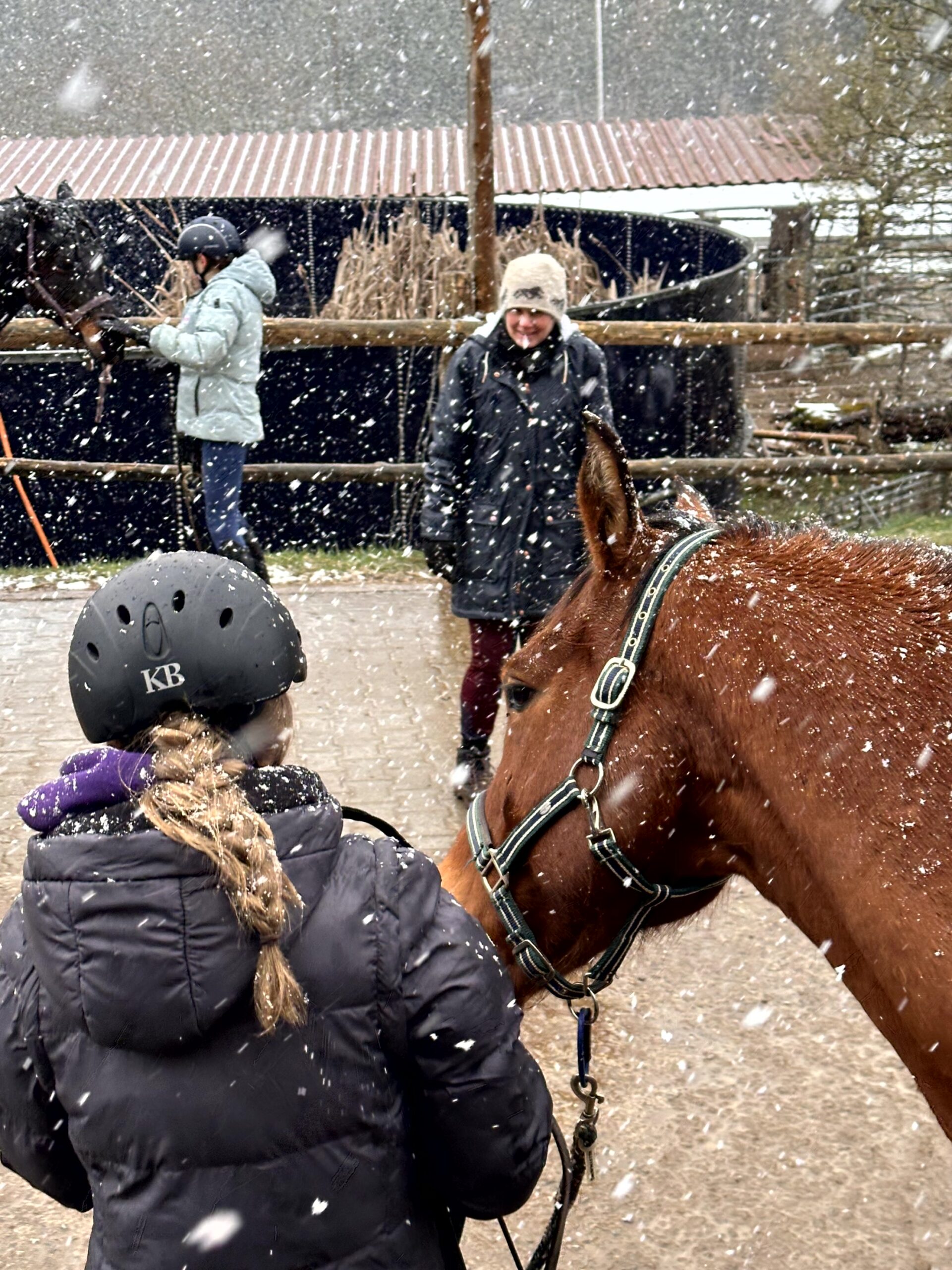 Nach einem gemütlichen Abendessen, bei dem wir uns alle wieder aufgewärmt haben, stand noch unser Ponyprogramm auf dem Plan. Wir sind nochmal zu den Ponys in den Stall, haben Zeit mit ihnen verbracht und den Tag gemeinsam ausklingen lassen. Ein richtig schöner, harmonischer erster Tag!
