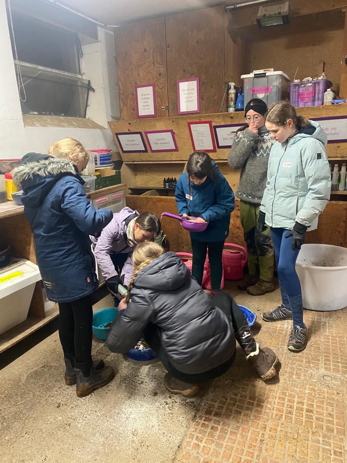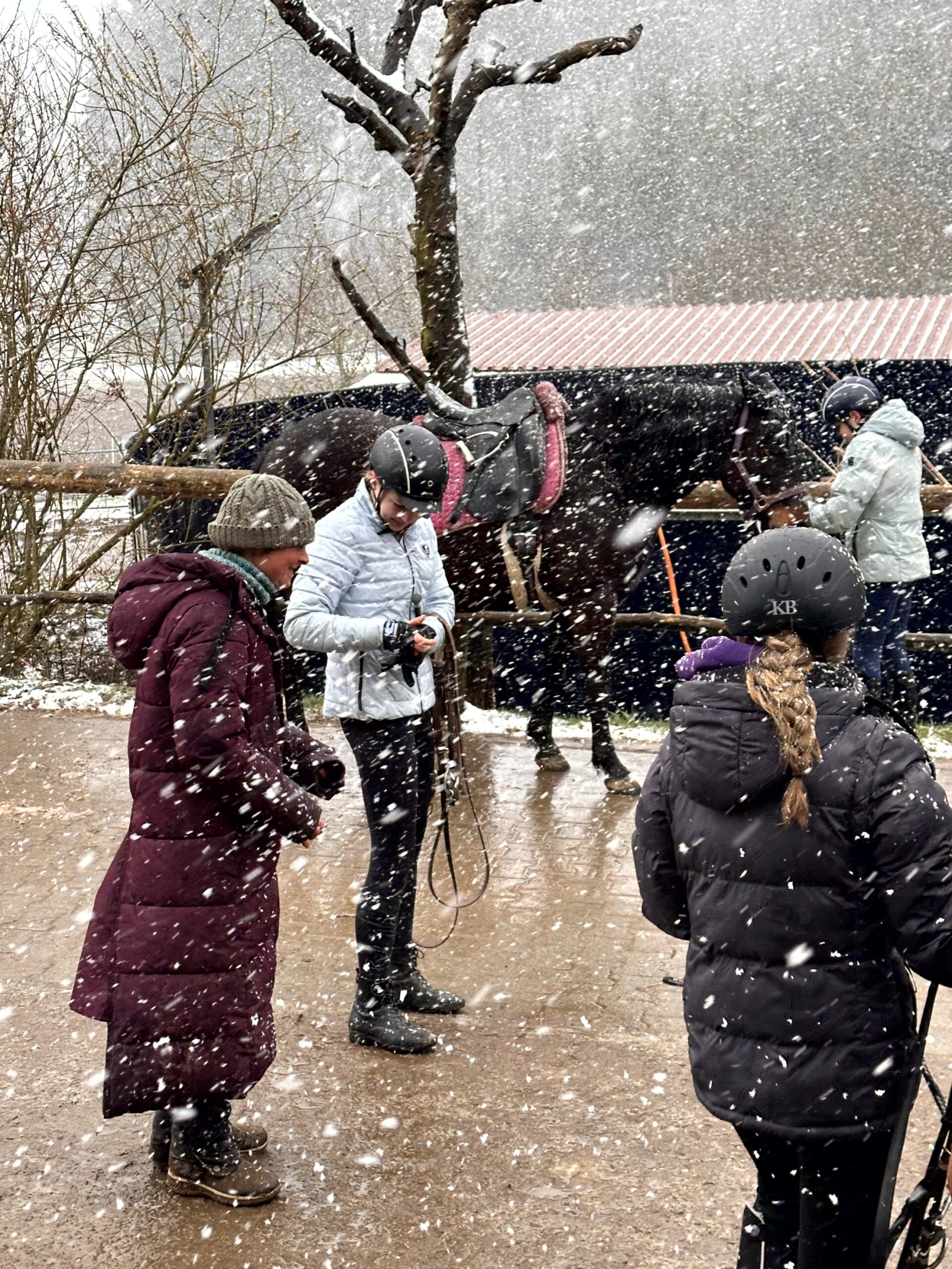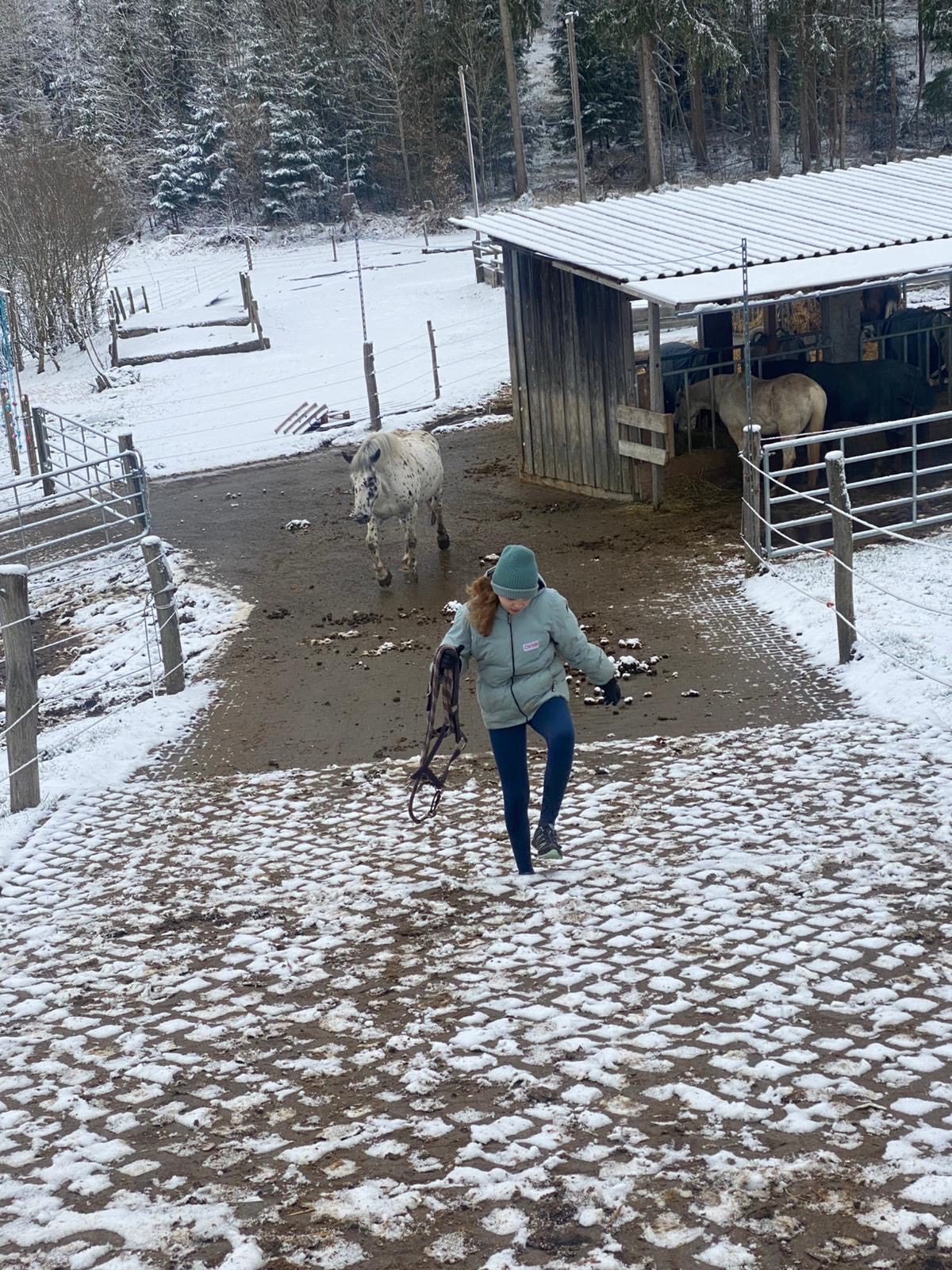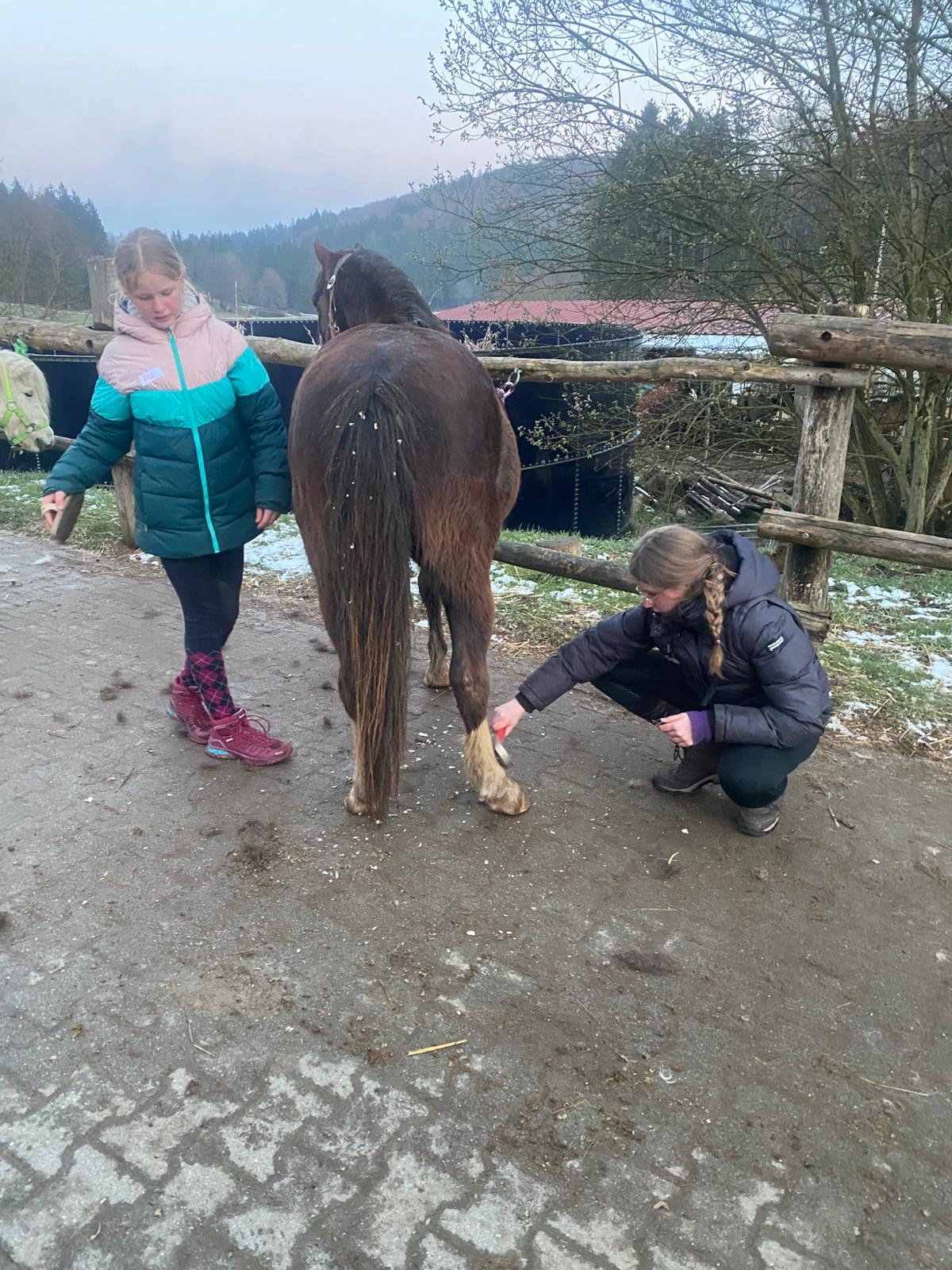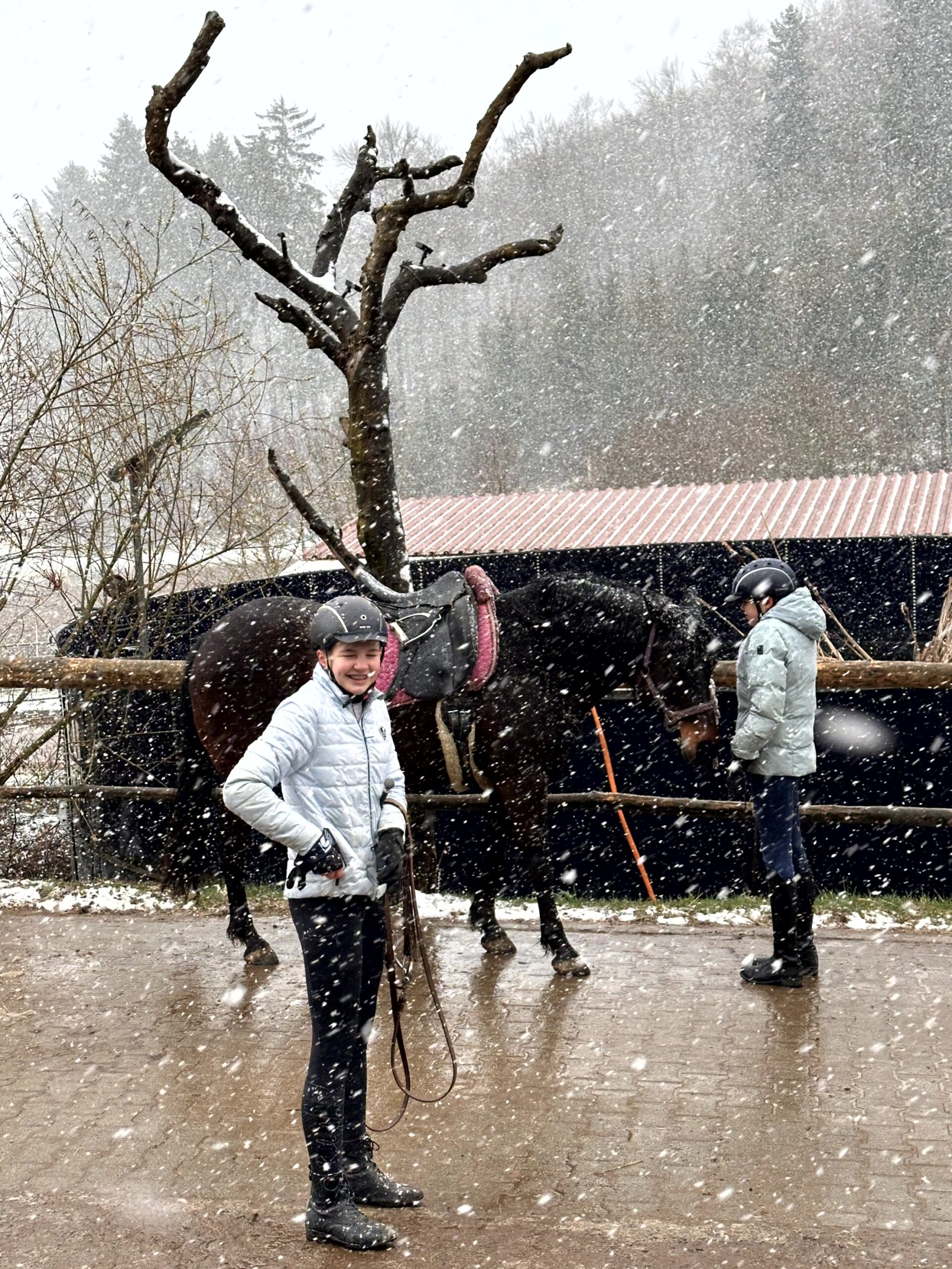Nach einem gemütlichen Abendessen, bei dem wir uns alle wieder aufgewärmt haben, stand noch unser Ponyprogramm auf dem Plan. Wir sind nochmal zu den Ponys in den Stall, haben Zeit mit ihnen verbracht und den Tag gemeinsam ausklingen lassen. Ein richtig schöner, harmonischer erster Tag!