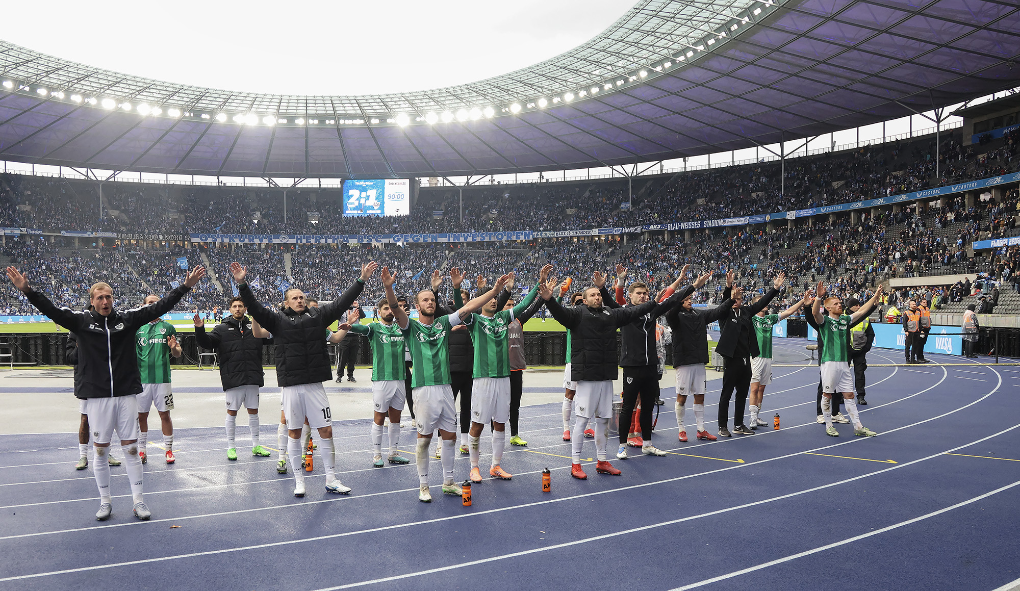 Am achten Spieltag der 2. Bundesliga ging es für die Adlerträger zurück ins Berliner Olympiastadion, wo in der Vorsaison ein umjubelter Auswärtssieg gelang. Die Rückkehr konnten die Preußen allerdings nicht erfolgreich gestalten, unterlagen vor 43.827 Zuschauern in Summe verdient mit 1:2. Nach einem Doppelpack von Sebastian Grönning kam der Anschlusstreffer in der Schlussphase durch Etienne Amenyido zu spät.