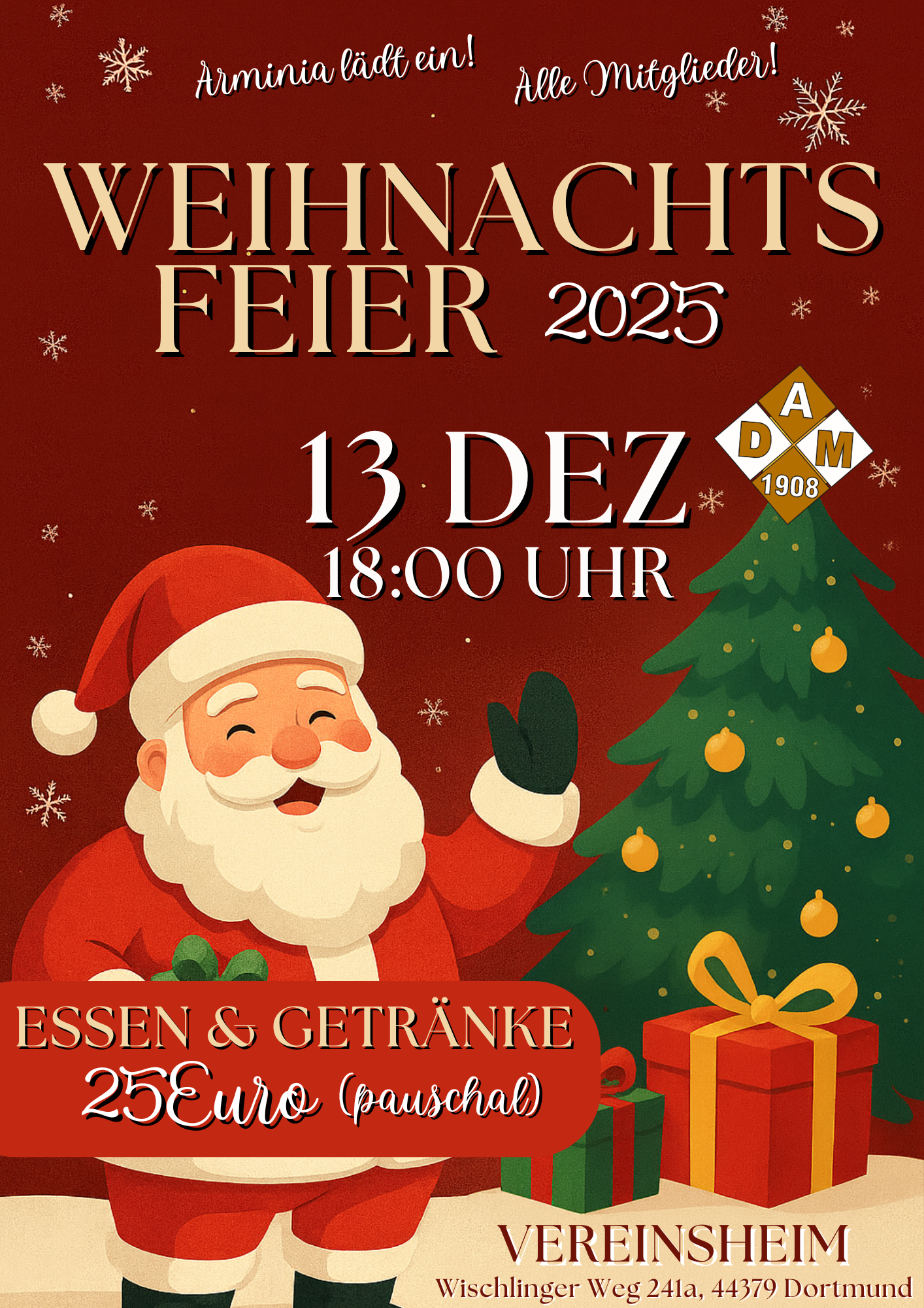 auch in diesem Jahr möchten wir gemeinsam mit euch die Adventszeit feiern und laden euch ganz herzlich zu unserer traditionellen Weihnachtsfeier am Samstag, den 13. Dezember 2025, ein.