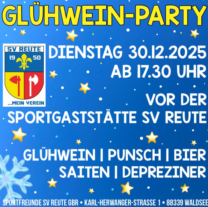 Der SV Reute wünscht allen Mitgliedern, Trainern, Betreuern, Funktionären, Schiedsrichtern, Anhängern, Gönnern, Freunden, Unterstützern und Helfern frohe und besinnliche Weihnachtsfeiertage 2025.