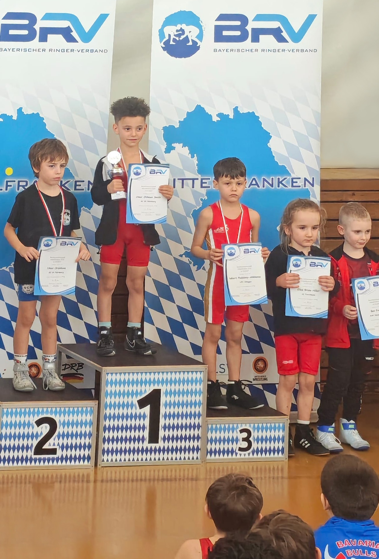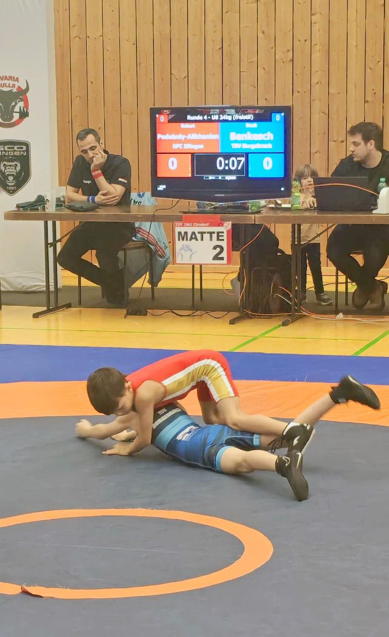 Ellingen / Zirndorf. Die Ringerabteilung des UFC Ellingen hat erstmalig an der mittelfränkischen Bezirksmeisterschaft im Freistilringen teilgenommen. Mit Makar Skundzia, Robert Podobniy-Alihkanian, Noah Beyerlein, Artur Fabrytsiy und Natalie Heller nahmen insgesamt 4 Ringer und eine Ringerin vom UFC an einem regionalen Verbandsturnier teil.