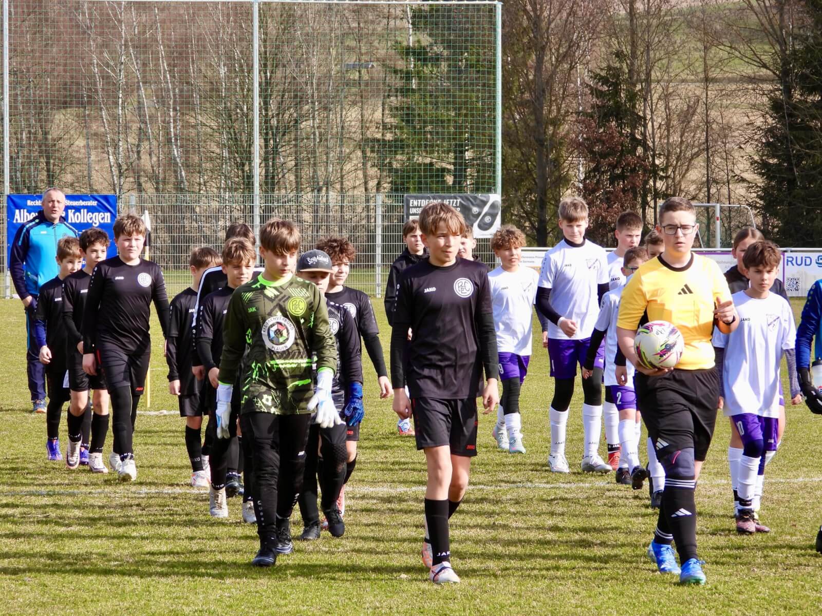 Zum Auftakt der Meisterrunde unserer D-Junioren reiste die Mannschaft des VFC Adorf an. Nach zwei Niederlagen in der Hinrundenstaffel wollte man diesmal energisch und kämpferisch dagegenhalten. Und das gelang unseren Jungs super! Mit der richtigen Einstellung und guten Spielzügen erspielte man sich zahlreiche Chancen. Gleich dreimal zappelte der Ball in der ersten Halbzeit durch Leo im gegnerischen Netz. Die langen Adorfer Befreiungsschläge konnte man hingegen immer gut verteidigen.