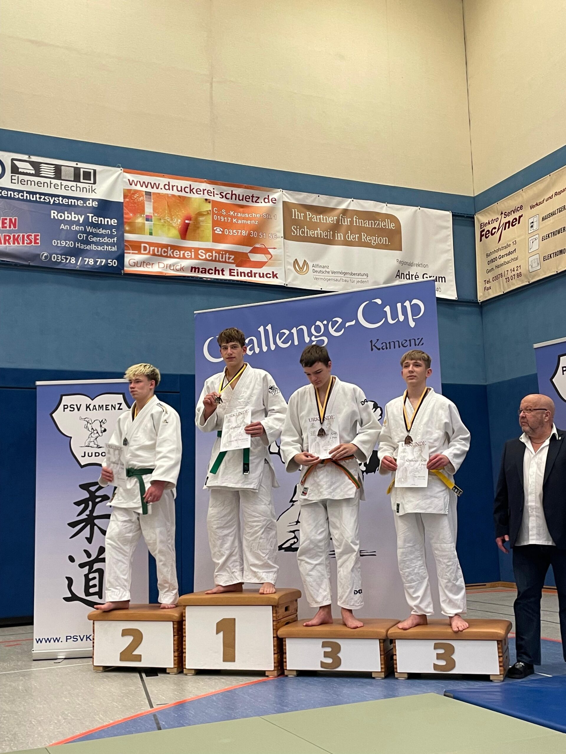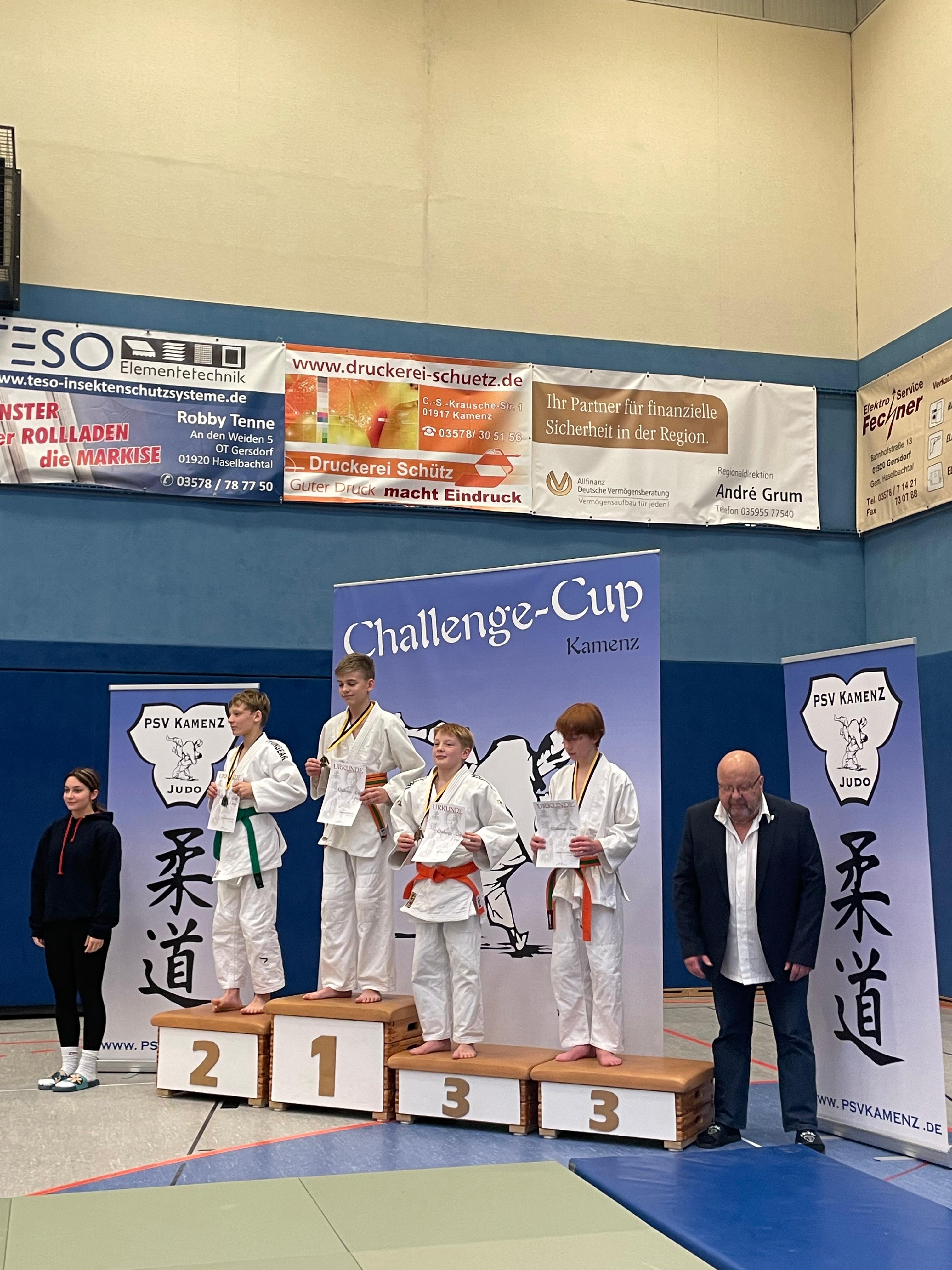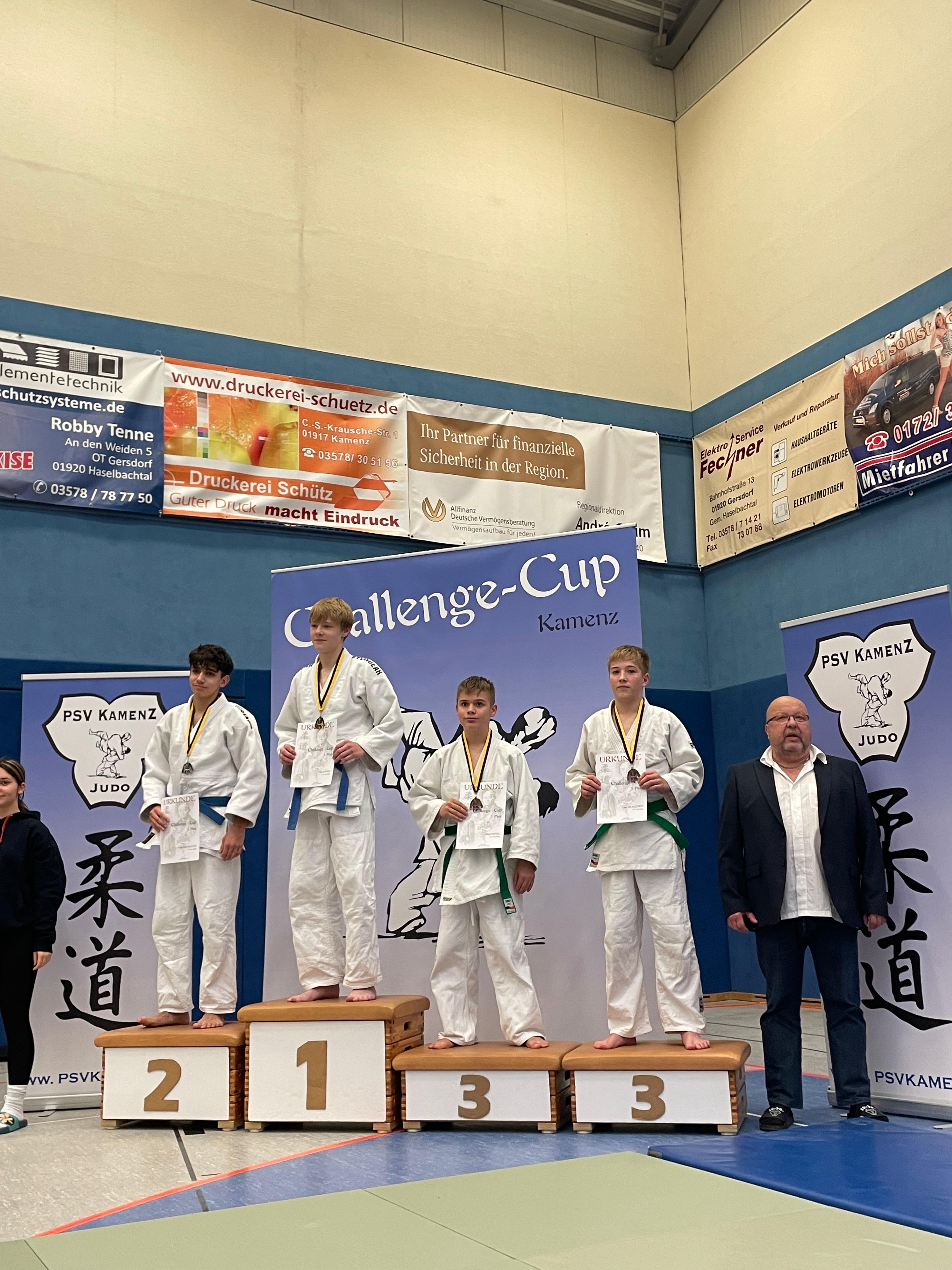 Carl startete in der Gewichtsklasse -40kg mit insgesamt 5 Teilnehmern. Seine Gegner waren hauptsächlich größer als Carl, was es ihm schwer gemacht hat. Carl konnte einen Kampf souverän mit O-sot-gari und anschließender Festhalte gewinnen. Bei den anderen drei Kämpfen, musste er sich leider geschlagen geben, aber konnte trotzdem ein paar gute Wurfansätze zeigen. Carl hat sich den 3. Platz erkämpft!