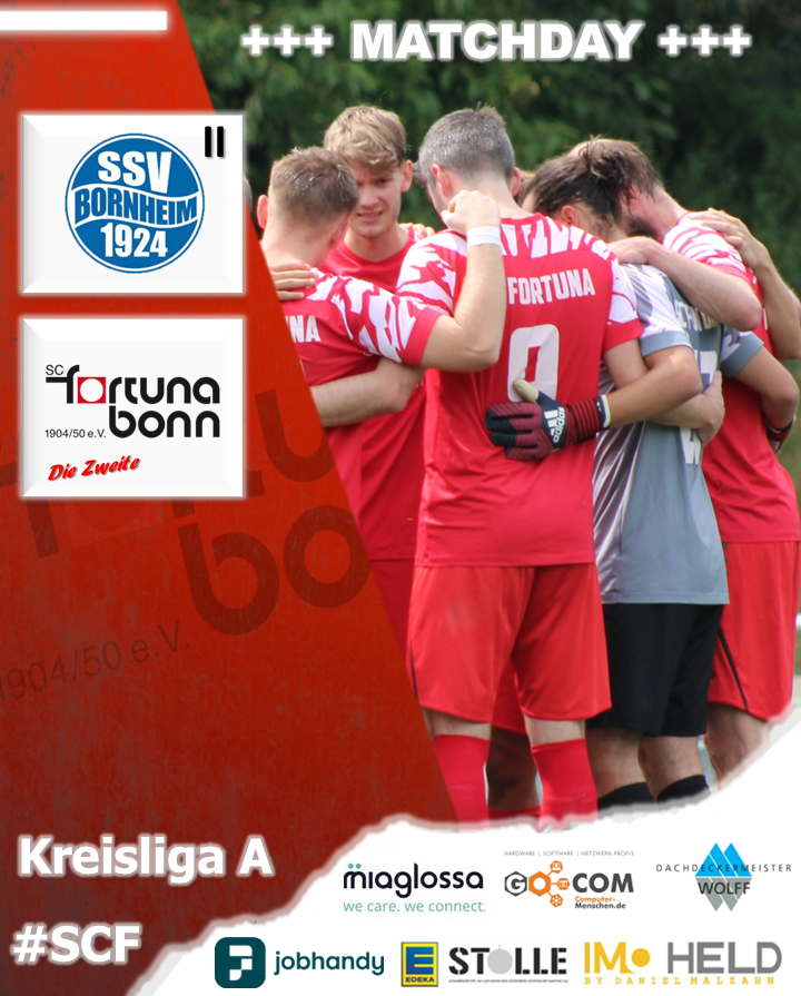 Spitzenspiel für unsere Zweite Mannschaft! Unsere Fortuna reist in der Kreisliga A zum Spitzenreiter nach Bornheim. Derzeit hat unsere Zweite 7 Punkte Abstand zum Tabellenführer. Will man noch einmal an Bornheim herankommen, muss man 3 Punkte holen. Dies gelang unseren Jungs in der Hinrunde eindrucksvoll. Da spielte man allerdings zu Hause. Unsere Fortuna ist nach wie vor die stärkste Heimmannschaft der Liga, aber auswärts kann man leider noch nicht immer an die starken Leistungen aus dem Wasserland anknüpfen. Das Duell wird mit Sicherheit eine äußerst spannende Angelegenheit.