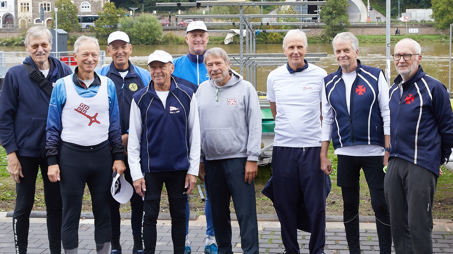 So fanden sich am Freitag 26.9. der F8+ ( Steuerfrau Hannah, im Bug Arne als Verstärkung aus Flensburg, Thorsten, Chris, Marco, Michael, Jens, Tammo und Heiner) sowie der H8+ (mit Teilnehmern sämtlicher Rudervereine des Landes Bremen, am Steuer Hans-Werner, Willi, Werner, 2 x Helmut, Klaus, Redelf, Peter, Sven) die beiden Bremer Achter an der Mosel ein. Sowie der Vierer Hansa/Kettwig/Flensburg/Bremerhaven.