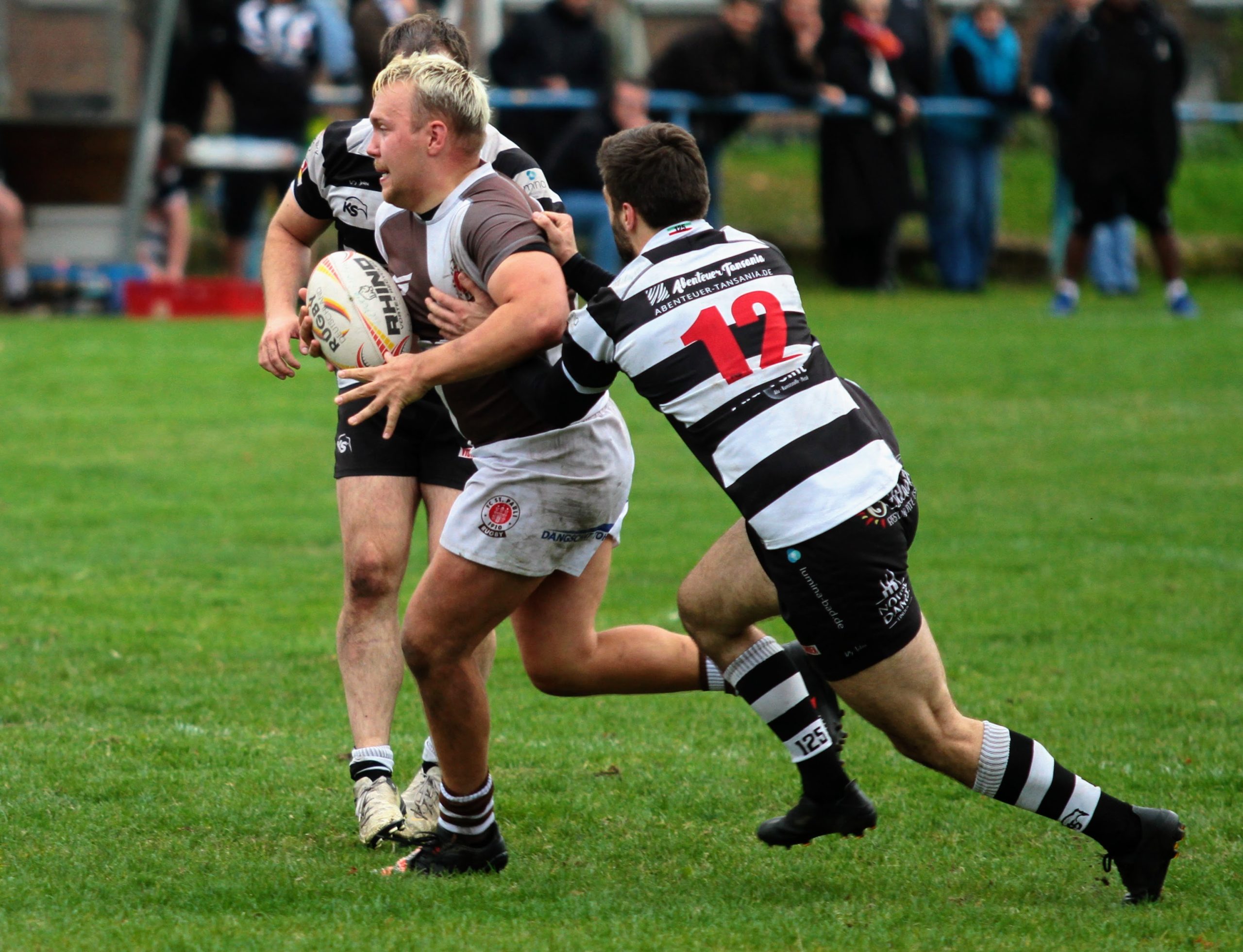 Kurz vor Schluss schien die Partie dann aber entschieden, nach einer 5 minütigen Druckphase in der generischen 22, konnte ein Victoria Spieler den Ball heraus fangen und auf der andern Seite zum Versuche einlaufen. Man hätte denken können, das Spiel ist vorbei, aber unsere Jungs blieben ruhig und besonnen. Besonders der Sturm übernahm in den letzten drei Minuten Verantwortung, arbeitete sich mit druckvollen Phasen tief in die gegnerische 22 vor, hier konnte Victoria den Angriff nur noch mit einem Foul stoppen, Straftritt St.Pauli.