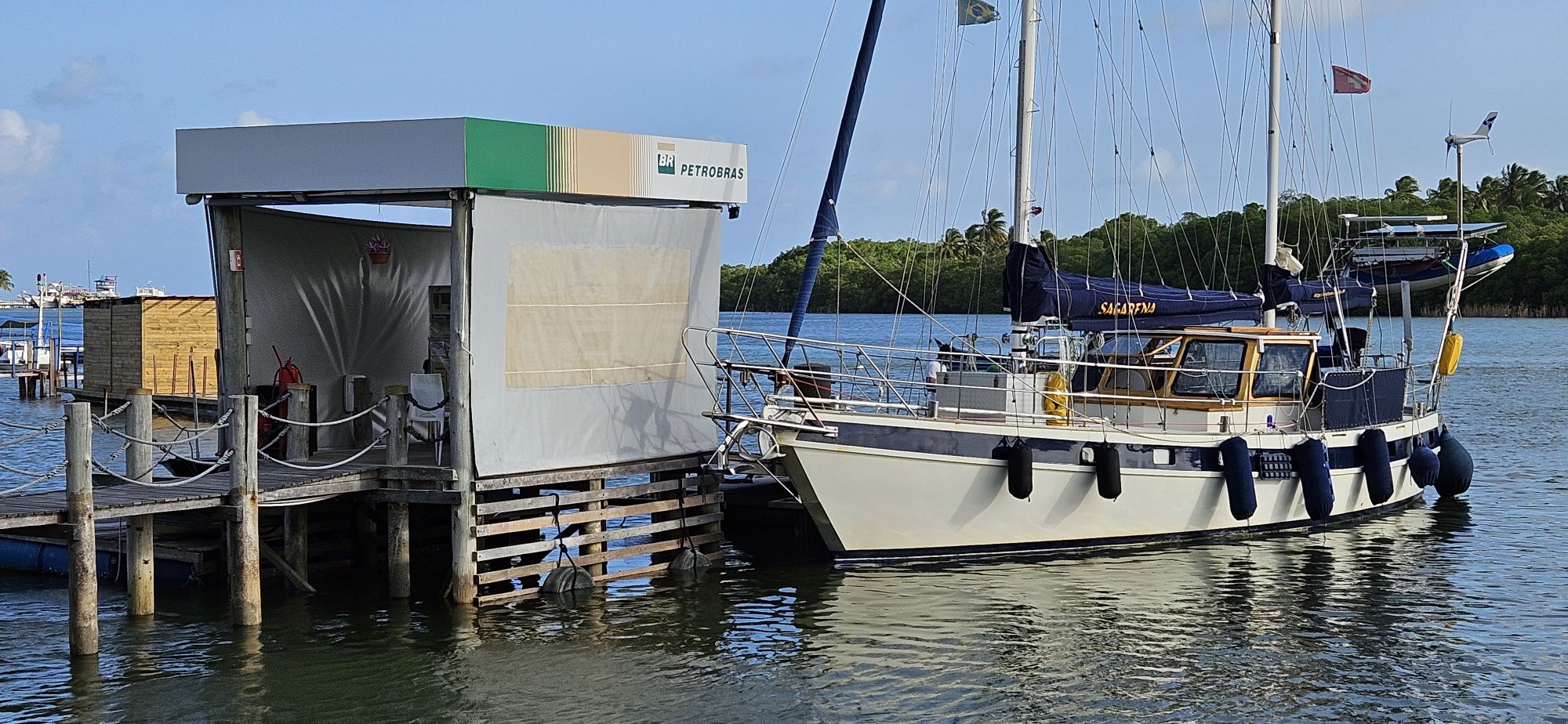Bei der Tankstelle bekommt man sauberen Schiffs Diesel (kein Biodiesel). Bei Flut kann die Tankstelle angefahren werden und das Team hilft dabei. Aktuell kostet der Liter Diesel 7.34 Real.