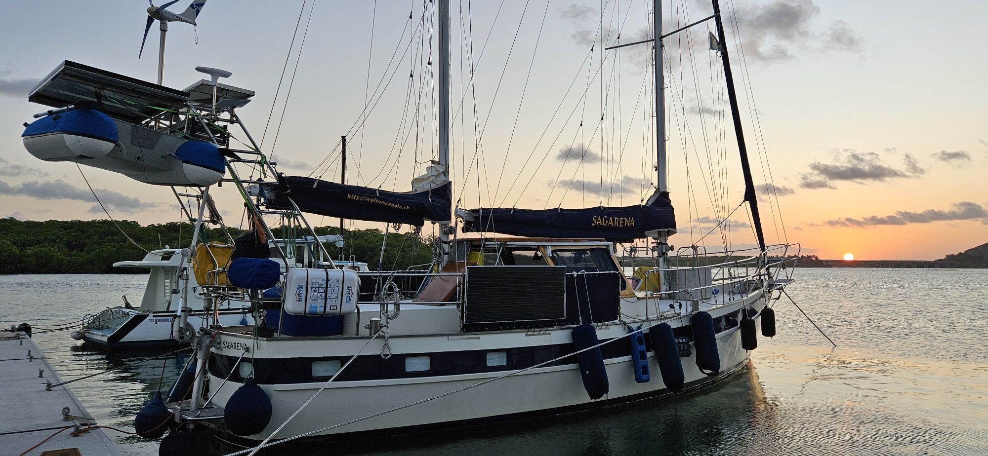 Ohne Wind motoren wird 3 Stunden bis endlich der Wind einsetzte, jedoch der Wind kam nicht aus SE sondern aus SSW also voll auf die Nase. Wir segelten bis Sonnenuntergang und die Geschwindigkeit sank auf 1 Knoten. Wir mussten umdrehen, die Düngung, der Strom und die Windwellen waren von vorne. Mit bis zu 8,5kn sind wie die 150sm zurück nach Stella Marin gesegelt.