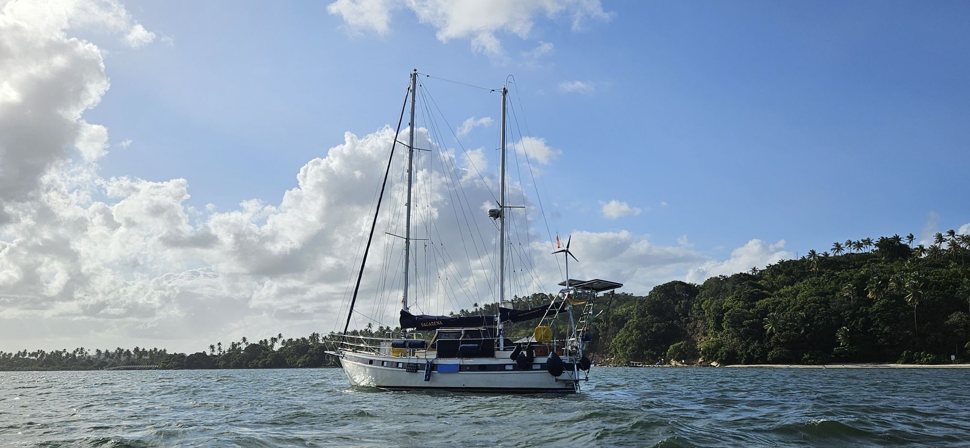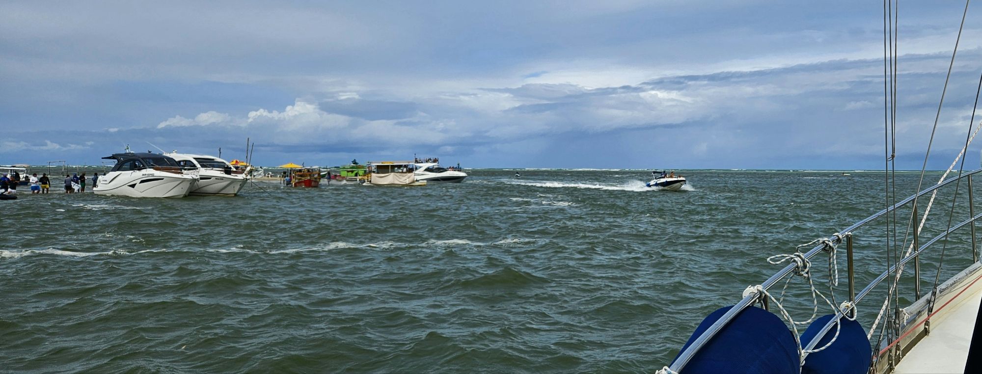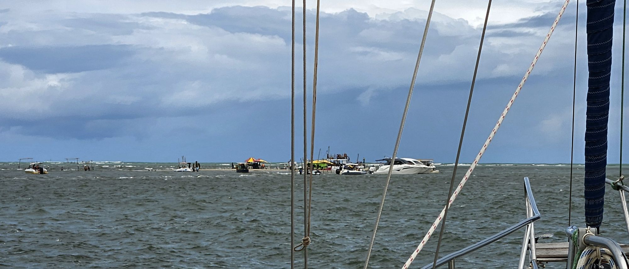Als nächstes Tagesziel peilten wir Aracaju an. Leider war die Flut erst bei Sonnenuntergang und vor dem Flusslauf waren die Wellen zu hoch um zu ankern. So folgte der ersten Nachtschlag. Dort konnten wir mur dem Tracking von dem Yachtclub in den Fluss einfahren.
