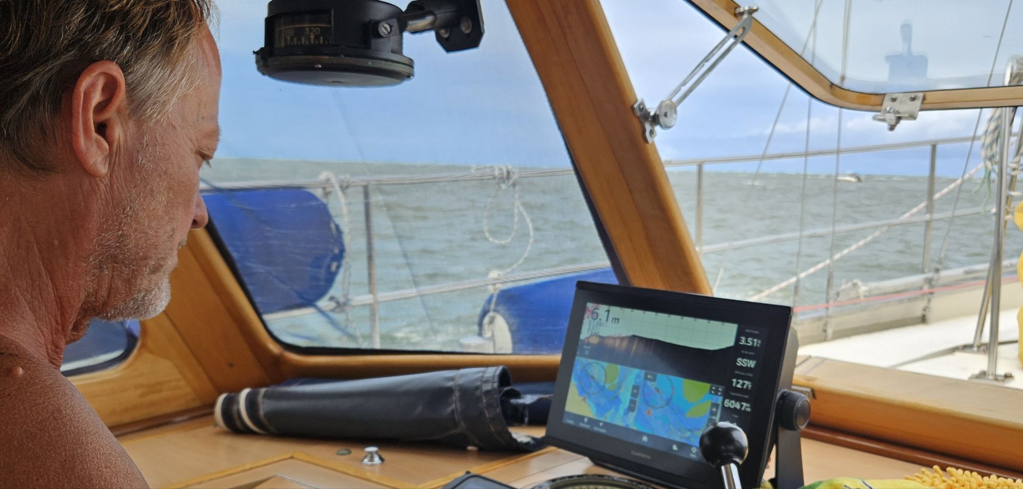 Leider haben wir wieder einmal Hydraulik Probleme, der Autopilot und das das Steuerrad zeigen keine Ruderwirkung. Drei Stunden war die Notpinne im Einsatz.