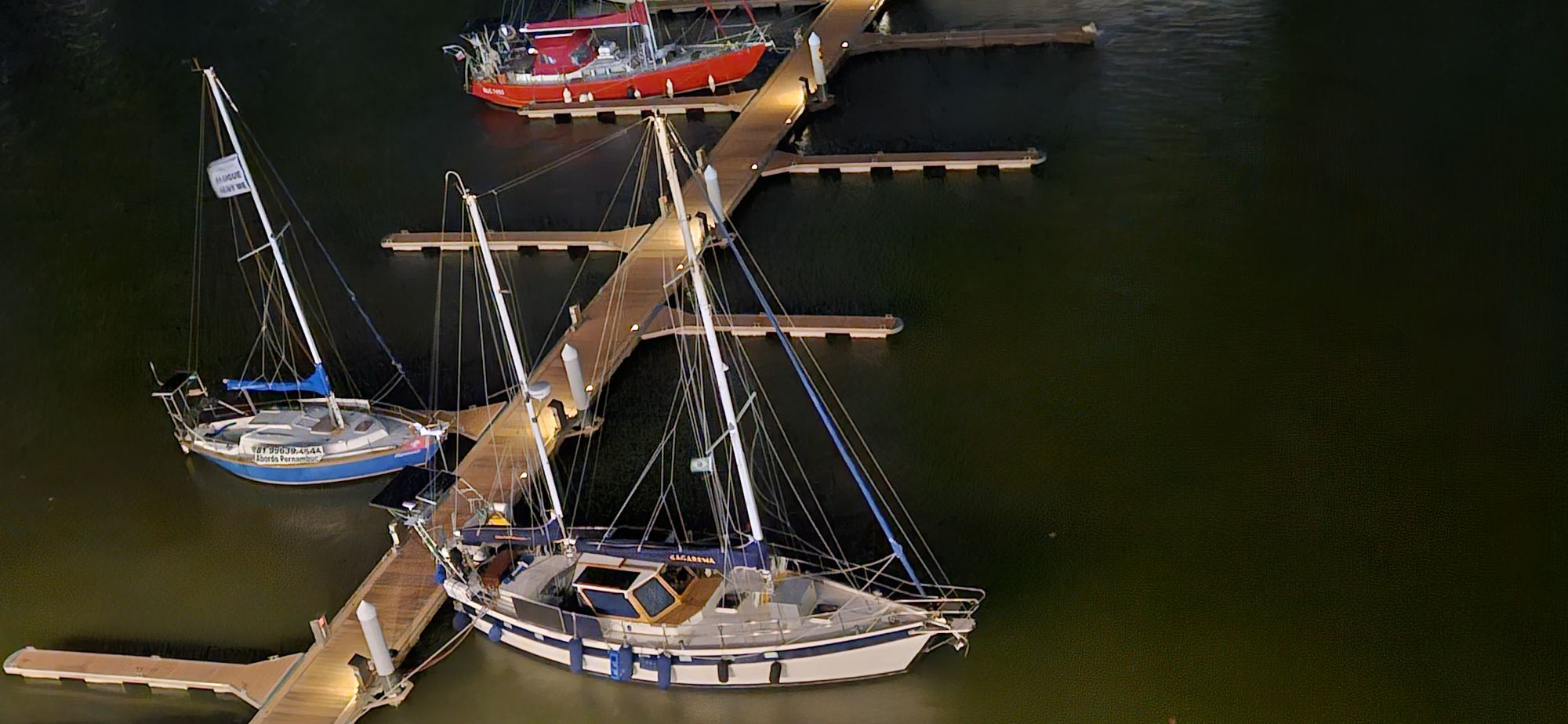 Exakt bei Flut und Dunkelheit wartete Andre mit dem Pilotboat. Die beiden Bug Anker haben sich verkeilt, es dauerte circa 15 Minuten diese zu befreien. In der Marina legten wir rückwärts mit Buganker und Heckleinen an, jedoch die Ankerkette lies sich nicht ausfahren.