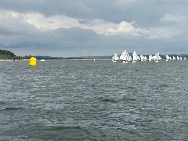 Die Vorhersage sah leider überhaupt nicht gut aus: Regen und kein Wind. Aber das Gegenteil passierte: Wir konnten pünktlich am Samstag aufs Wasser und segelten bei ca. 5-8 kn 4 Rennen. Es war zwar bewölkt, regnete aber zum Glück nicht. Der Wind war allerdings eher schwierig zum Segeln: es gab viele Böen und Dreher und man musste sich sehr konzentrieren.
