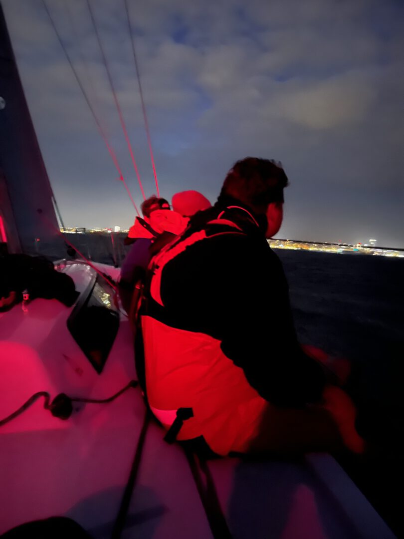Mit der Zeit wurden wir von den schnelleren Booten überholt und das Feld verteilte sich immer weiter auf dem Meer, alle auf den Weg in Richtung Sizilien. Frachter empfanden dies wohlmöglich als weniger lustig und wichen freiwillig auf einen Umweg aus. Was weniger lustig war für uns, waren die folgenden Stunden. Starker Wind, hohe Wellen, ein kurzzeitiges Gewitter und eine gute Portion Regen. Wenn schon, denn schon. So ging es dann in die erste Nacht rein.