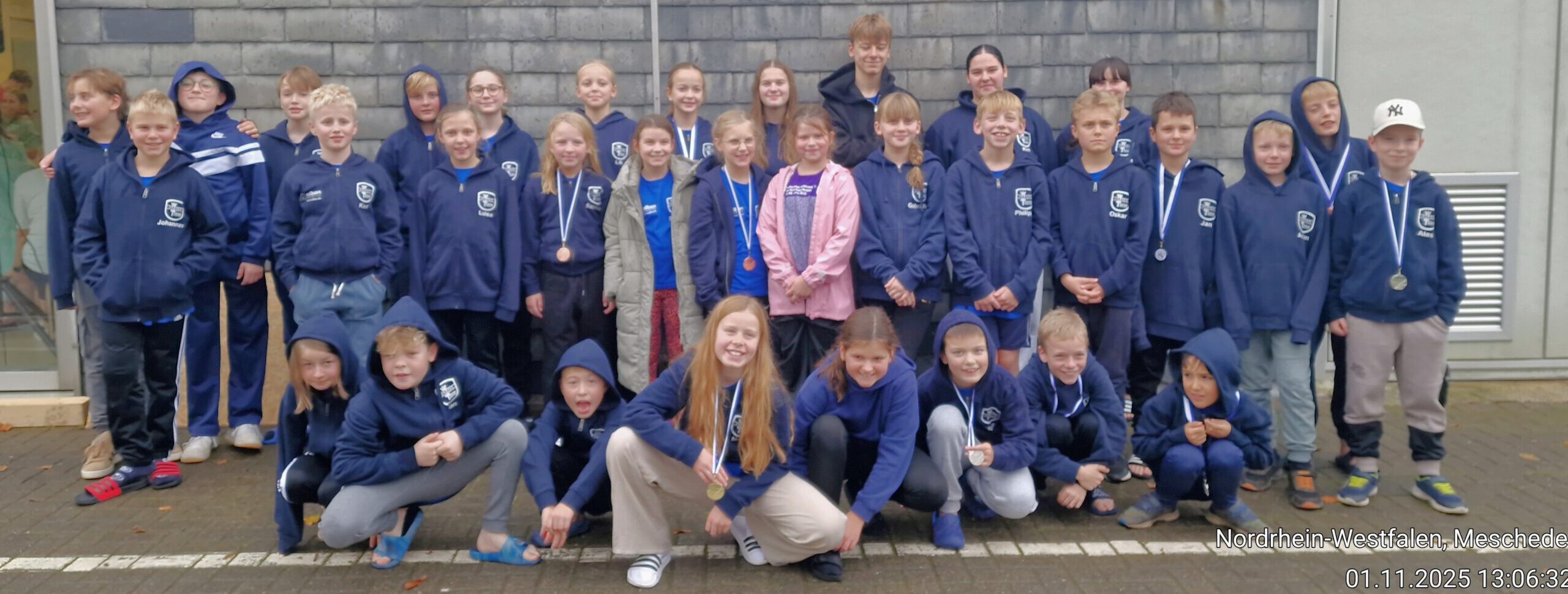 Am 1. November 2025 fand zum 32. Mal das alljährliche Herbstschwimmfest sowie die 5. Herbst-Masters statt. Veranstalter und Ausrichter der Veranstaltung war der TuS Velmede-Bestwig, der in diesem Jahr ganze 17 Vereine im Hallenbad Meschede begrüßen durfte. In 935 Einzel- und 15 Staffelstarts stellte dies einen ausgefüllten Wettkampftag dar und trotz der vorhergegangenen Herbstferien konnten viele bisherige Bestzeiten gehalten, verbessert und bei jedem 3. Start eine Medaille erschwommen werden.