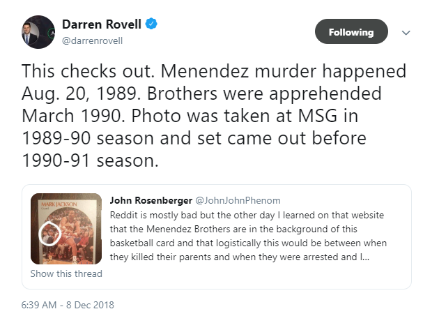Have you heard about a 1990 basketball card and how it intersects with one of the more infamous murders of the 80's?