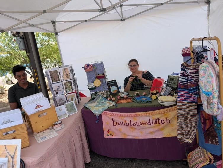 The 2026 Spring Art Mart was so much fun — but it wouldn’t be Art Mart without you! Thanks so much to our community, to our raffle winners, to our food vendor Donut Blitz, to the wonderful crowd at #tucsonchillride, and deepest thanks to our wonderful local artists: M Carlisle, Ana Sanctos Acinas, Jester Judas, So Gay Crochet, Moonsprout, Foul Tasting Film, Akasiaart, Mi Casita Press, By Heidi Sue, Recs by Lex, Divine Speak Beading, Tumbleweedwitch, and The Artist Liam Wallace Llc!