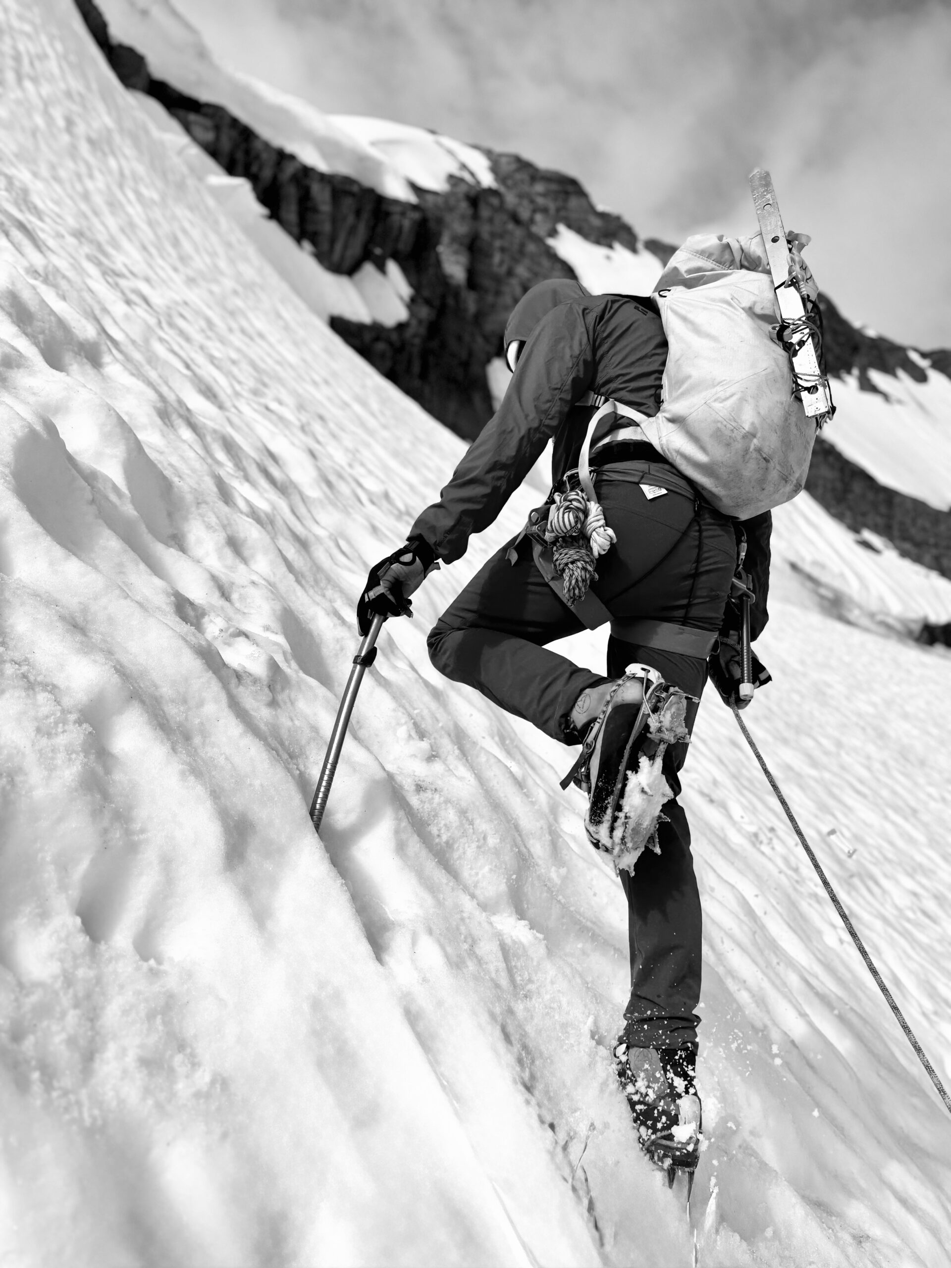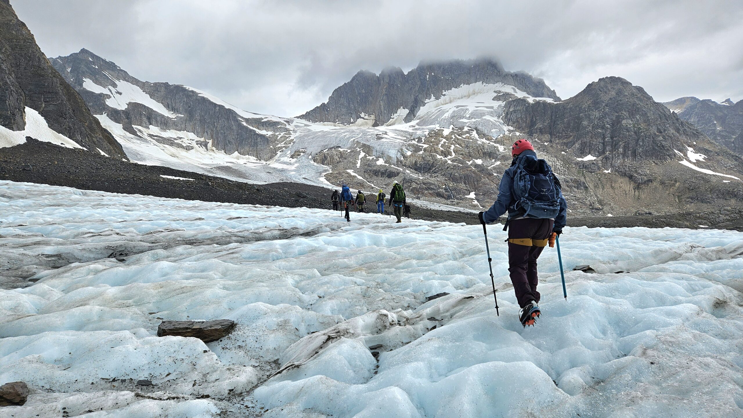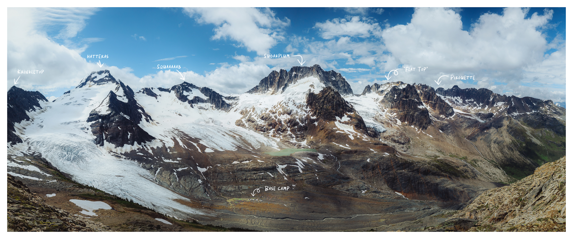 ‘This panorama captures the spectacular landscape from GMC 2025, with the peaks of Krinkletop, Hatteras and Squab (L-R) dominating the skyline and the crevassed surface of the sweeping Hatteras Glacier bearing the marks of time and movement.’ – Steve Fagan