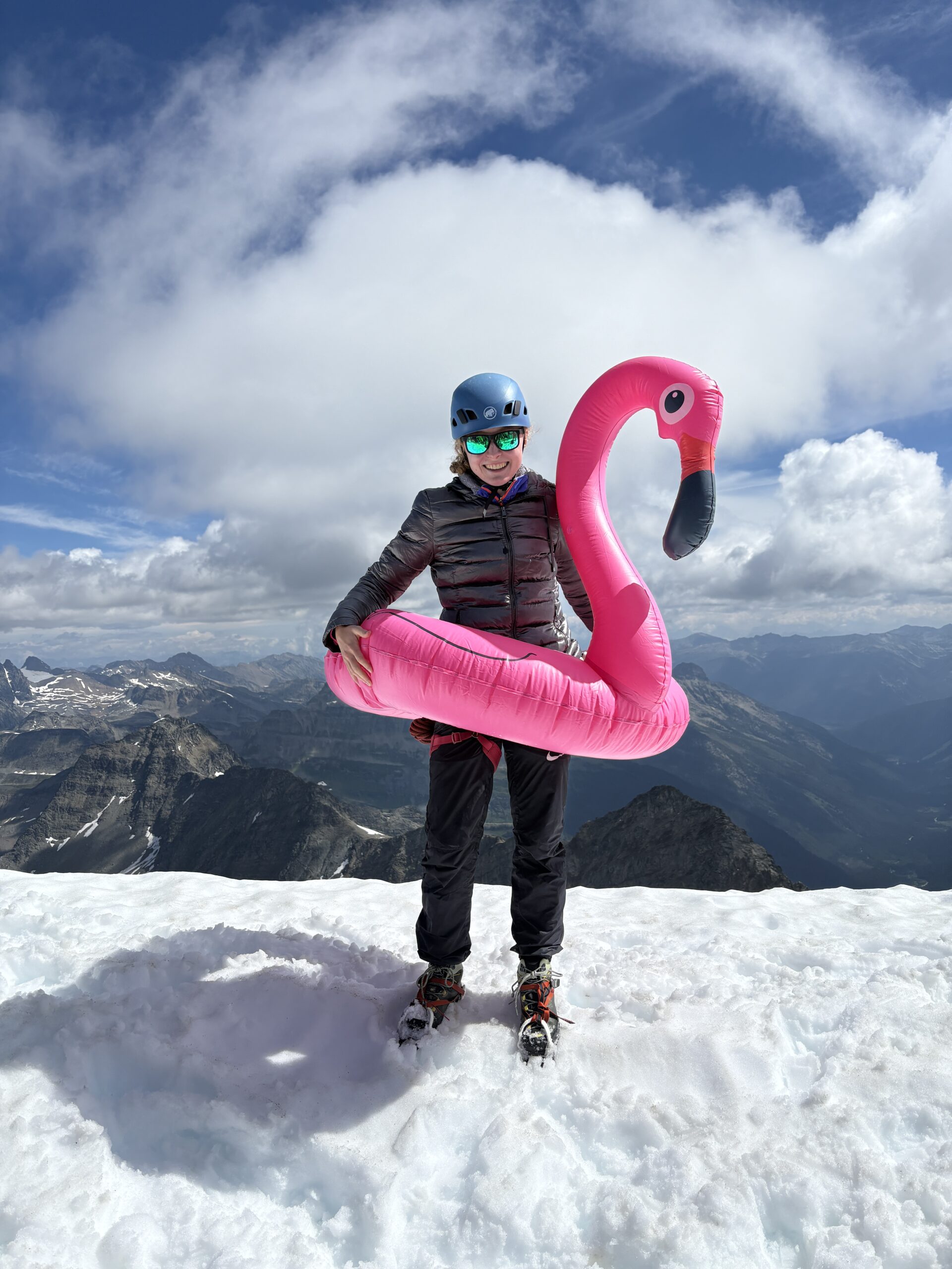 Admittedly, we named this one! It is the perfect excuse for a creative caption. This photo is a whole load of fun that you won’t see anywhere other than on an ACC GMC. But it not only oozes with GMC spirit – its subjects are perfectly posed, the shot is clear of distractions, the composition is balanced, and as always – pinky adds a welcome splash of colour to the mountainscape. It’s a good job that Pinky’s air-head doesn’t need the protection of that helmet, but our climbers are all geared up for an amazing ascent. Thanks for this fun capture, Alison!