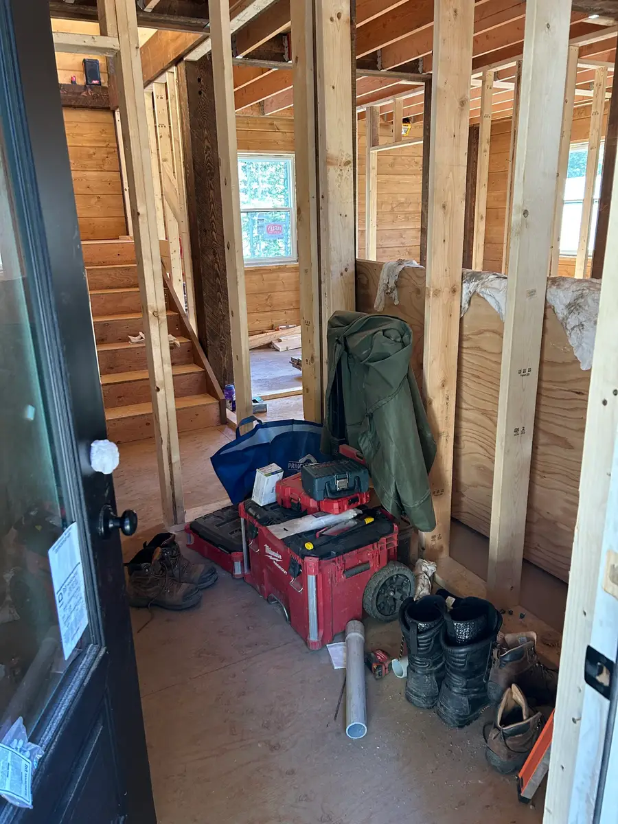 The ground floor sleeping quarters before interior walls were installed. Now, from this angle, you would be looking at the walls of the two bedrooms.