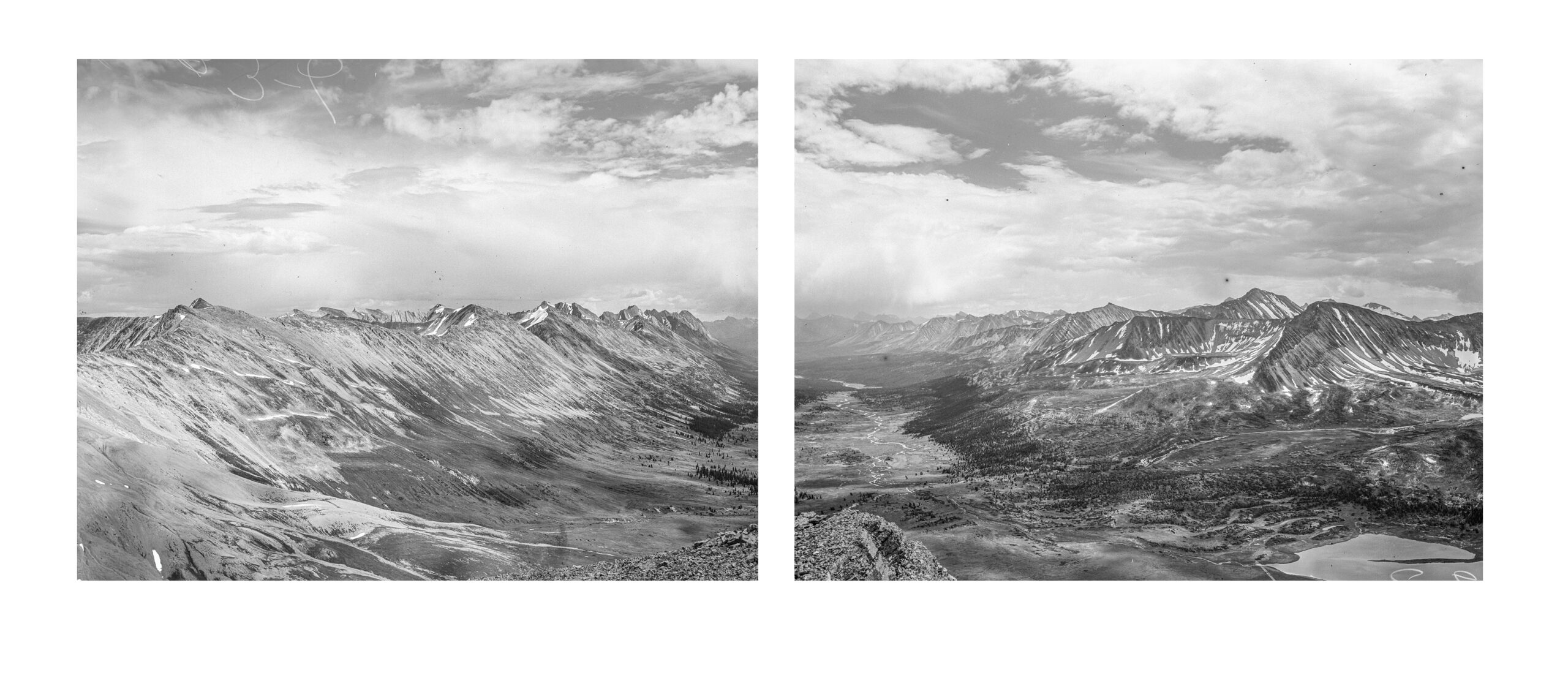 But sometimes, you find with elation a particular detail that persists, and with it, the exact place you’re looking for. In this photograph, it is the small jumble of scree in the foreground. These fist-sized rocks, unchanged in nearly a century, told us we were standing in Lambart’s footprints. One of his 1927 photographs shows a thick wool sweater cast aside. I imagine he too must have paused in the warmth of the afternoon sun and looked down the valley with a sense of awe, feeling small in a landscape where it is only natural to feel small. I know that eighty-four years later, we stood in the exact same place and whooped with joy. In our fieldnotes we recorded “a perfect day in the mountains.” And looking through the lens at the rocks in the foreground I wondered, what will persist in a century more?