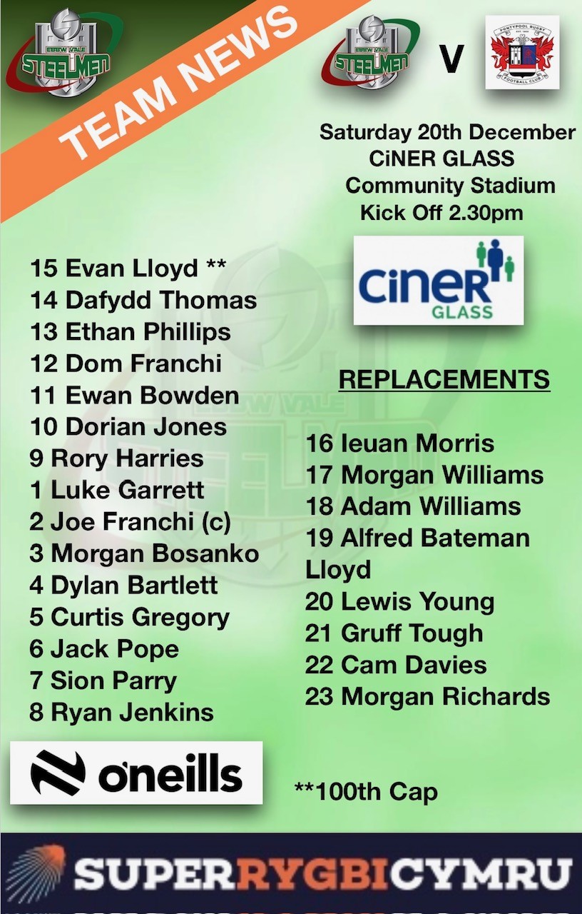Ebbw Vale’s next game is the returned fixture at Pontypool Park on Saturday 27th December 2025, with kick off at 2:30pm.