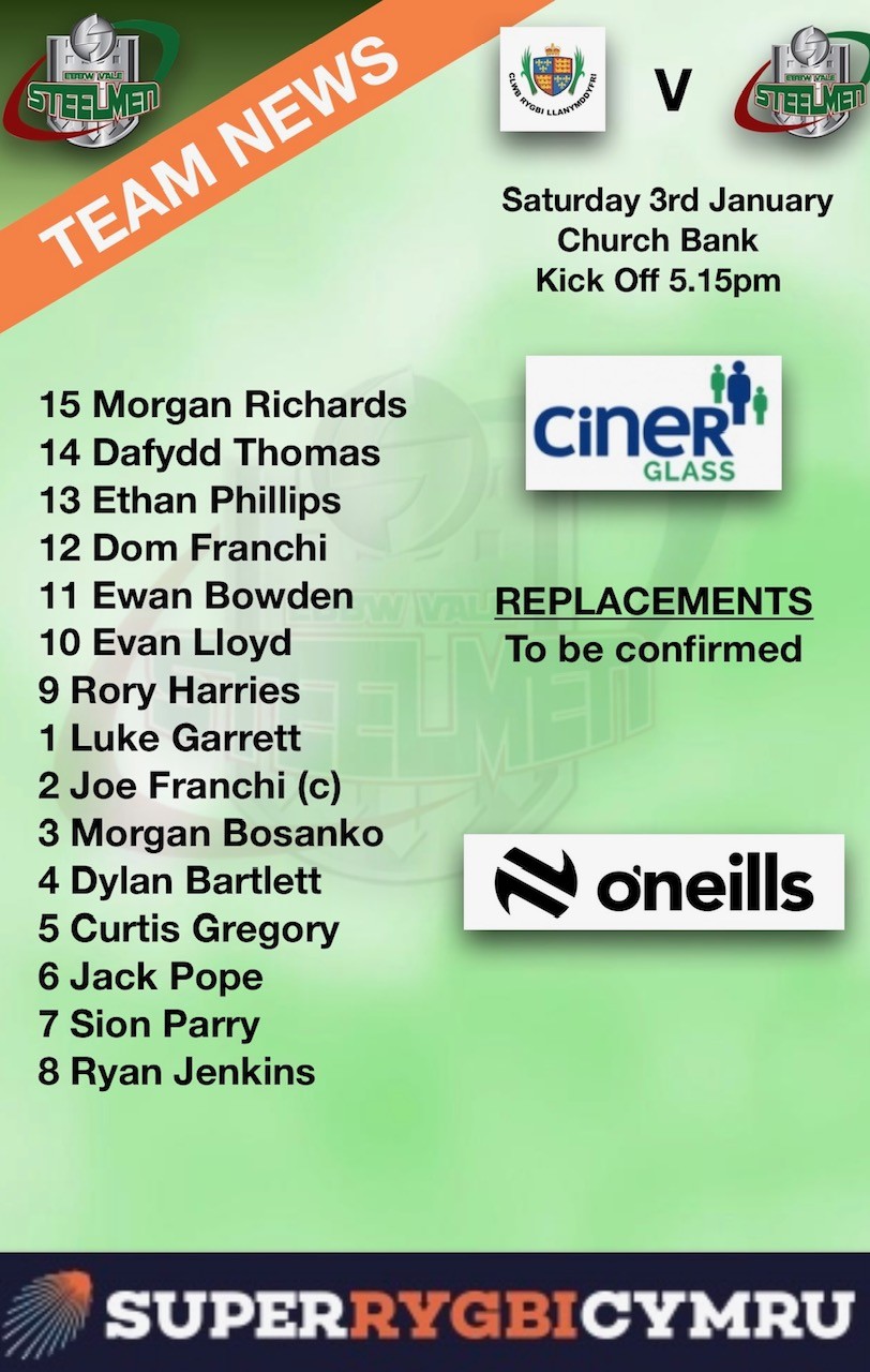 The Steelmen start 2026 with a top of the table clash against Llandovery RFC at Church Bank live on S4C. The Steelmen beat Llandovery RFC earlier in the season at the CiNER GLASS Community Stadium by 40 – 22.