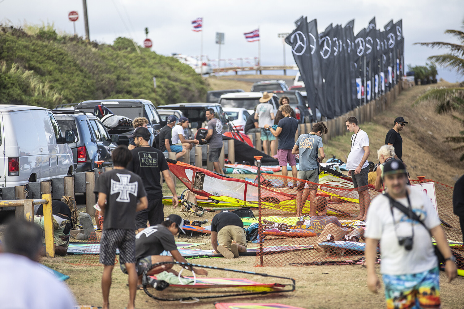“ IT minus 24 hours to the start of the Aloha Classic, and I got a call from Rich Page, the manager of the PWA World Tour. He said, “We have a problem. A big problem. We can’t start the event.” By this time, all the riders had already flown into the island from all over the world—and the judges too. Mercedes had written a check to secure title sponsorship. The world was ready for the start of the most watched windsurfing event in the world. A local law had just changed, requiring all events to hire security guards from a firm with a special license—only 2 such firms exist on Maui, and both were fully booked. The event’s permit requires onsite security, so no security meant no event. Page called me back to say that a loophole had been found: hiring off-duty police officers. But where could we find off-duty police officers for tomorrow morning? Off-duty cops were eventually found and the event was officially announced to start at 11 o’clock the following morning. But this hiccup was only one in a series of issues.