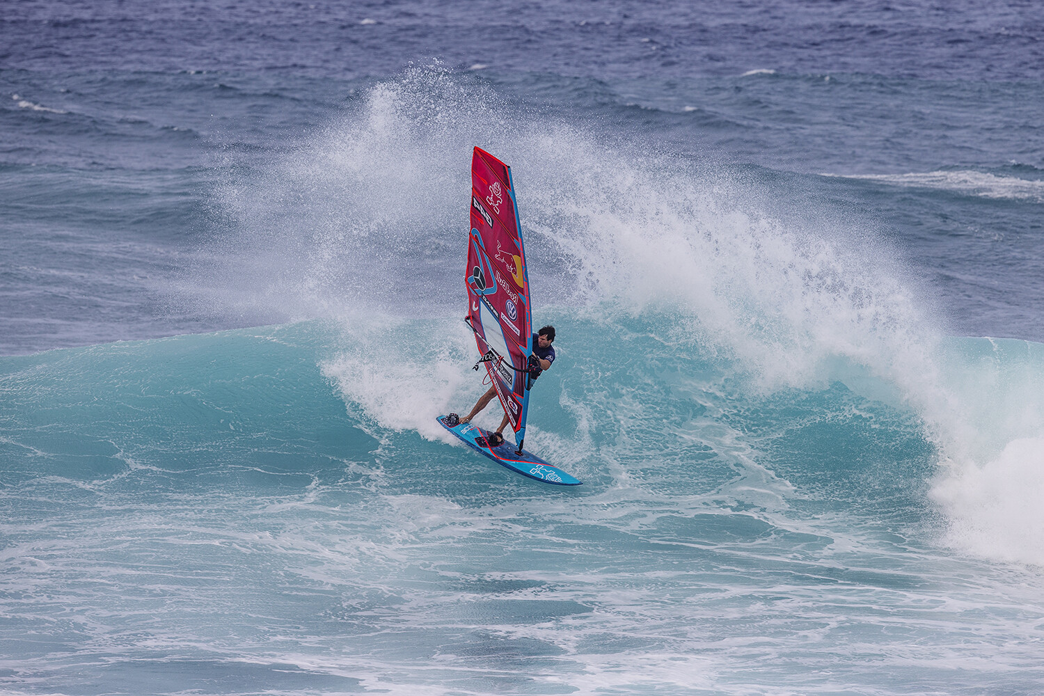 To be honest I was one of the only sailors holding back! I am normally the one going the most to the rocks during free sailing and taking risks during the competition. This year at the Aloha I made the big mistake of playing safe and not going for it. I actually did not break any equipment this year and that is something really rare for me on Maui! The conditions were a big gamble, I didn’t sail to my ability at all, like I said I didn’t risk it and picked the wrong waves, it was hard to read the waves because every set was different! There were some huge sets and if you were at the wrong place at the wrong time that was it for your heat, that is why I tried to play it safe. Wrong call as it turned out! I wanted to use my ‘magical’ 82 litre board that had its tail broken on the plane in whilst in transit to the Red Bull Storm Chase last winter. Timo Mullen helped shape the tail again for me; it is a sick board and I feel I can really rip in Maui on it. The wind was far too light for it, so I had to pick my new 92 litre. I did not have time to get used to it before the event as I had just received it and to be honest trying something new on a big day at Ho’okipa was not ideal. The swell was huge with a lot of west in the direction. Picking the right waves was the key, but it was not an easy task! The bigger ones were mostly closing out, bumpy and sometimes with less wind than normal!
