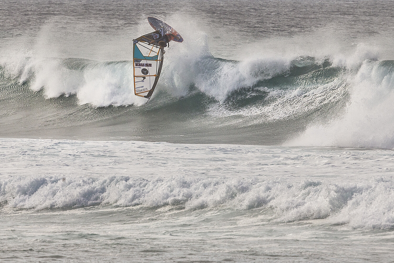 I was on my biggest board and sail during the event except my first heat, then I used my 92 and 5.0, but for the last heats I had to rig my 5.3, which I don’t like using in those conditions. You had to float and get going as soon as you could so as to not get stuck on the inside! I would normally go out half a heat before to make sure I had time to be out and in position for my heat and be a bit upwind! For my last heat, I headed out and towards the channel and there was a massive set, about seven waves all closing out. I had the option to chicken tack and then get stuck on the inside again where there was no wind or face the wave and try to make it out! Brawzinho was in his heat and got stuck on the inside getting about six waves on the head and nearly went to the rocks. I was lucky enough and made it out somehow, do not ask me how! The whitewater was like mast high and I made it through seven or eight waves, that was pretty much the only time I had “balls” during the event!