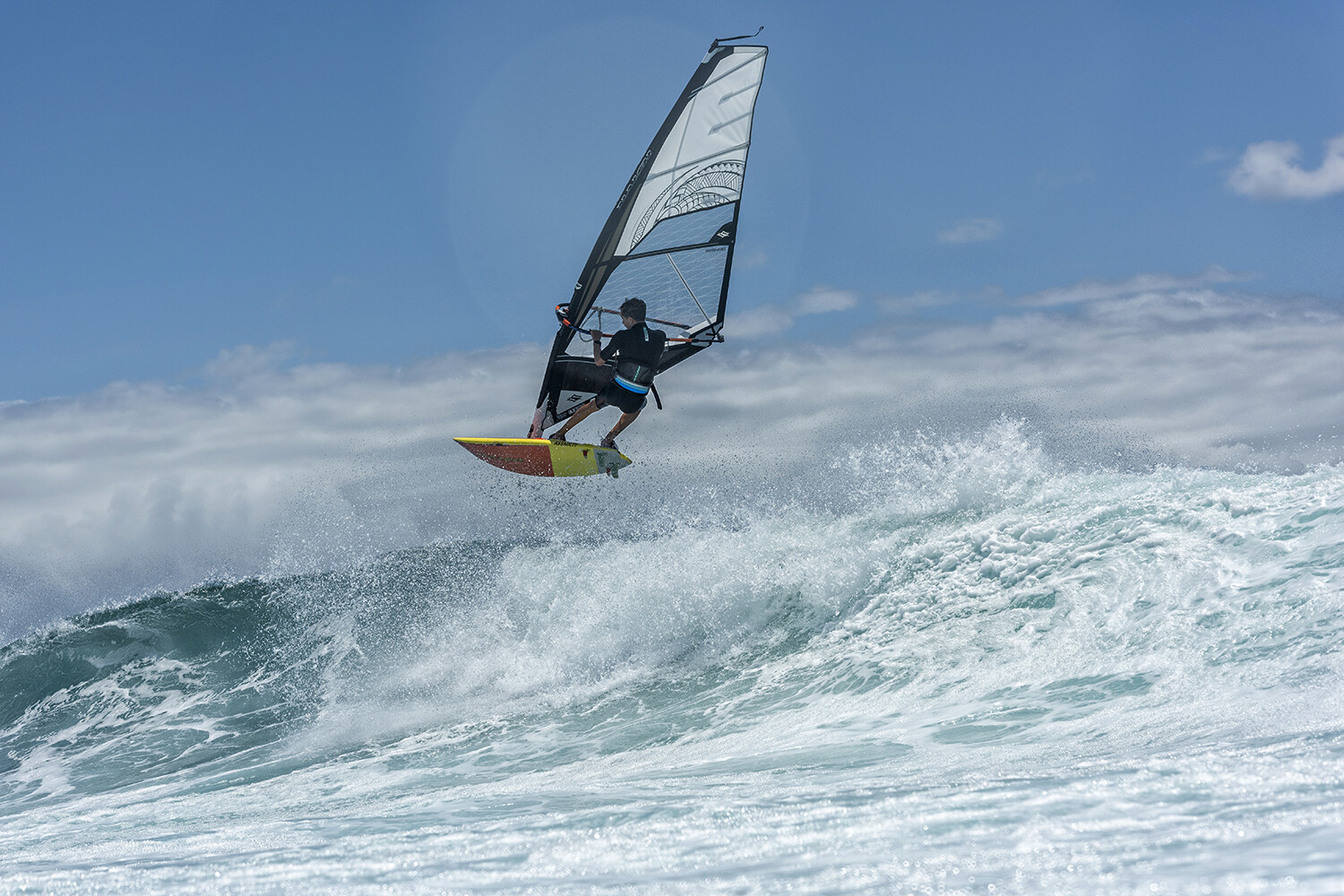 I mostly sail at Ho’okipa, but he last few years I have also had the opportunity to windsurf Peahi / “Jaws” as well.