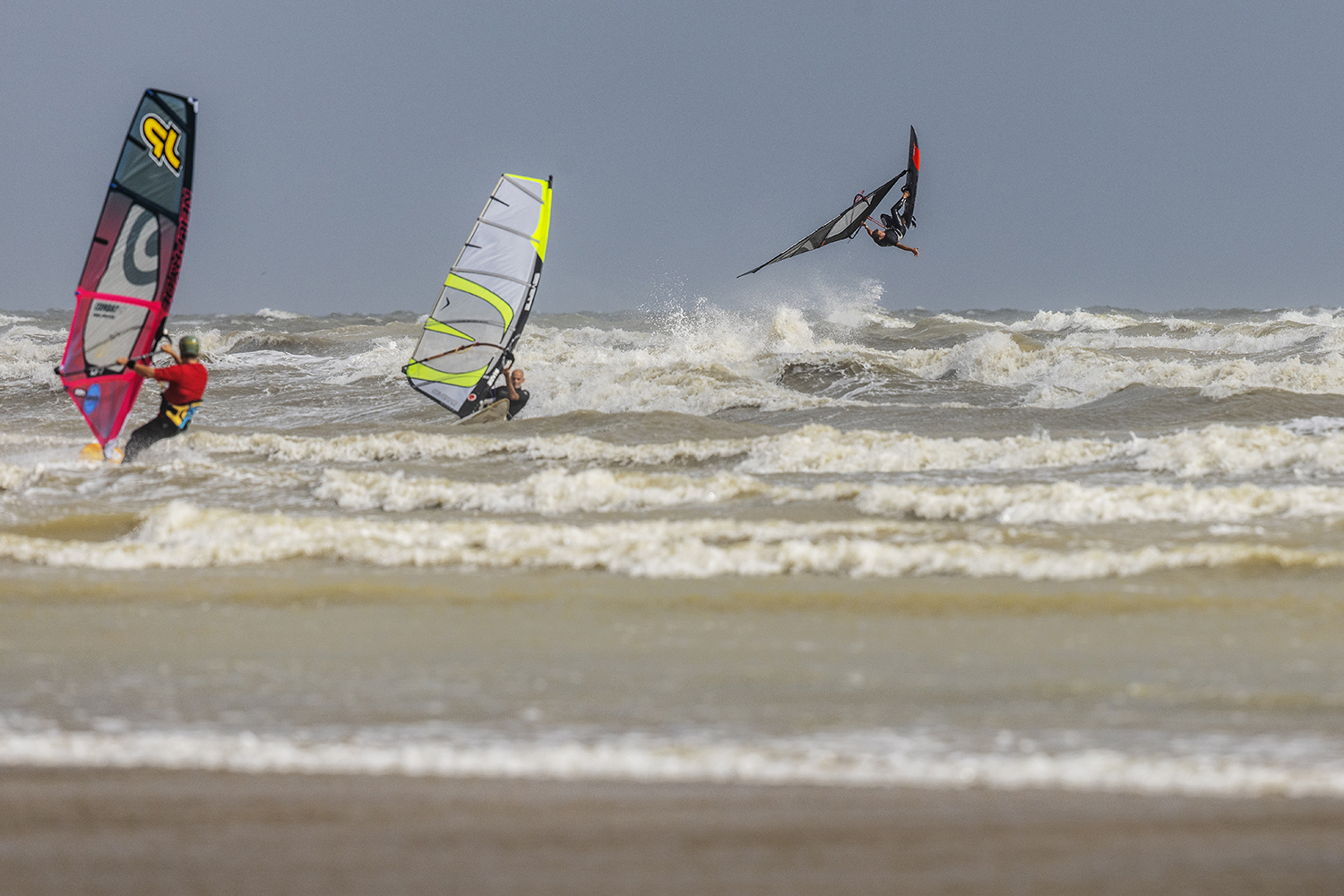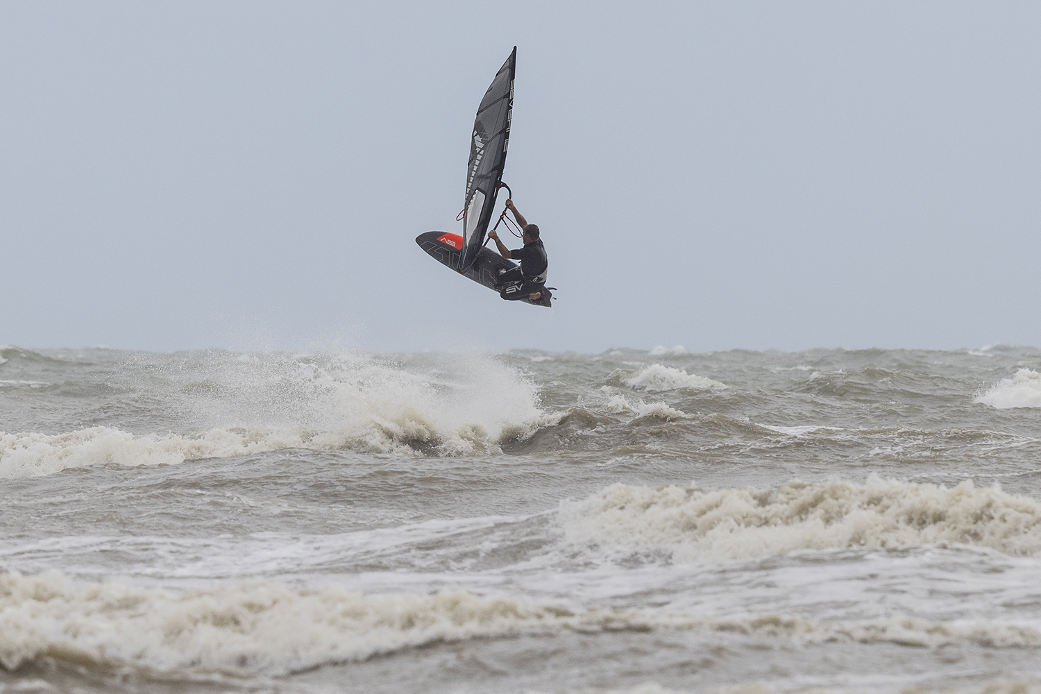 At Camber it is mostly about jumping. It is a really solid jumping spot! I have taken a couple of friends there and they have learned to push loop in a day because there are so many ramps. The waves are quite forgiving and they never really get much above head high when I have been there. There are a few parts of the sand that create a bowly sucky wave, but on the whole the waves are quite soft. It is great for learning jumps. The moves you will see are big back loops because it is so windy, as well as plenty of forwards and push loops. I don’t normally go to Camber when it is firing at home as there is no need.