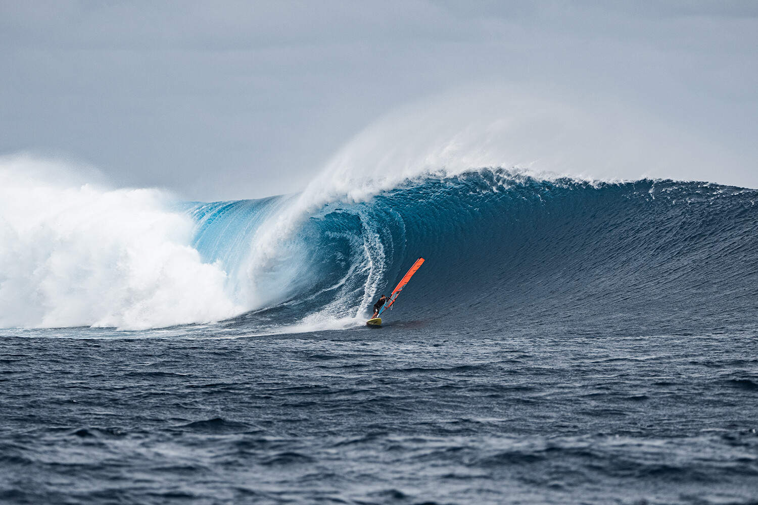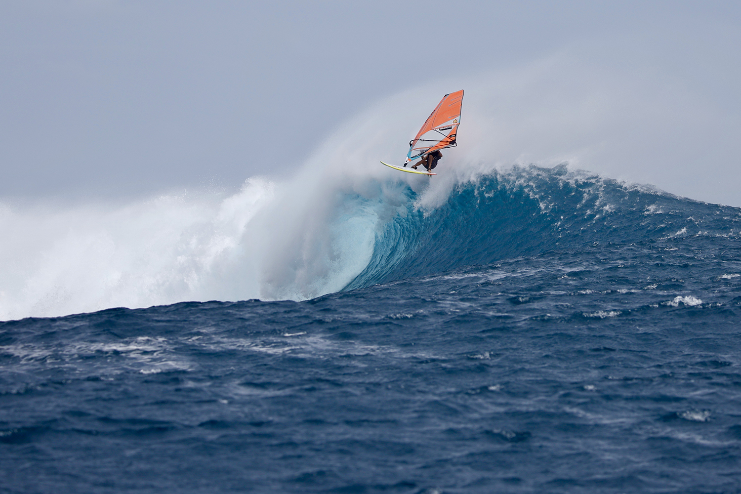 I was pretty nervous. I had sailed some port tack on Maui before flying out, but I had to get used to my board and these were the biggest waves I’ve ever sailed on port tack. I was a bit timid on my first few waves, but I started to figure it out and I got a few that I was happy with. I would have liked to have gotten a big air or hit a big section, but overall it was an absolutely incredible session, and I made it back in one piece with my gear intact, which is good as we are technically here for an event!