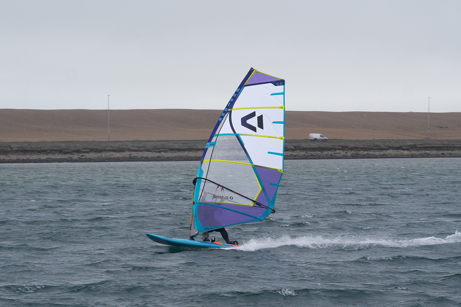 A true Duotone sail, both visually and with its user-friendly features, which are prevalent all over the sail. Available in two colour-ways – red and turquoise or white and violet, the latter of which we were provided with for the test, it offers a cool, distinctive and slightly retro look. Constructed from monofilm and X-ply Plus, which can be found in areas under particular stress, it delivers power and overall stability. The Duke is also available in a more costly, but more durable monofilm-free HD version. Consisting of a five-batten layout, you will notice that Duotone has a larger ‘batten-free centre’ between battens above and below the boom to increase inflation with the intention to provide extra power in the gusts. As a result, this pushes the remaining three battens further up the sail, which adds further stability to the top of the sail. Staying with the top of the sail, rigged and at rest, the Duke has a notable amount of fall away at the leech. Yet, in the lower half of the Duke, a noticeable amount of sail and batten sit proudly over the mast, ready to create great depth in the belly of the sail. With handy rigging guides all over the Duke, it doesn’t disappoint in its easy-to-use personality and it offers the rider great tuning options in each of the tuneable components.