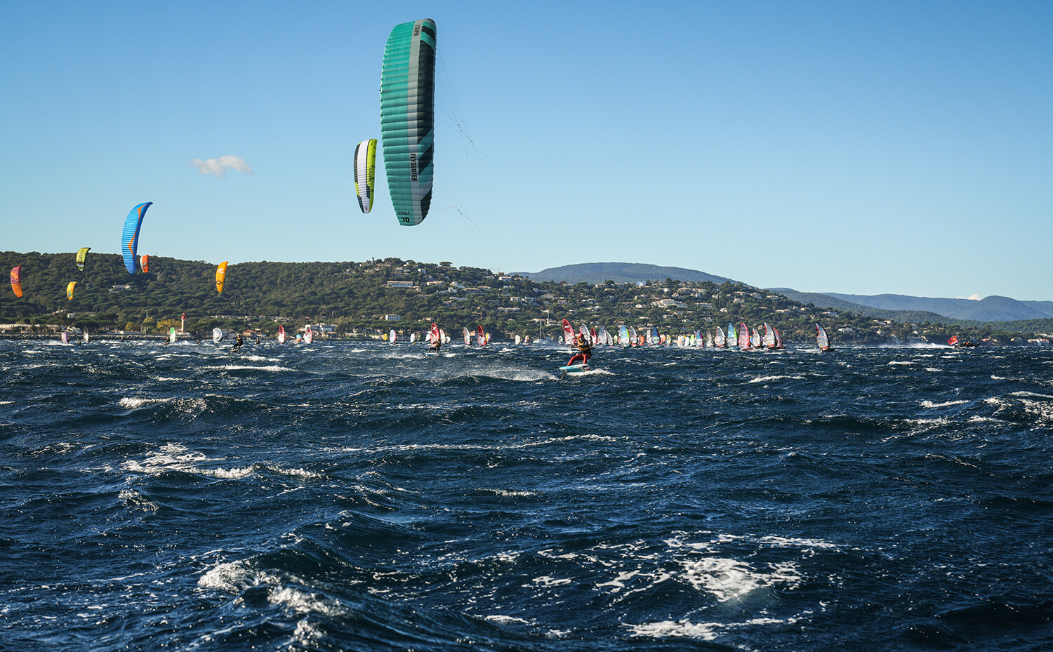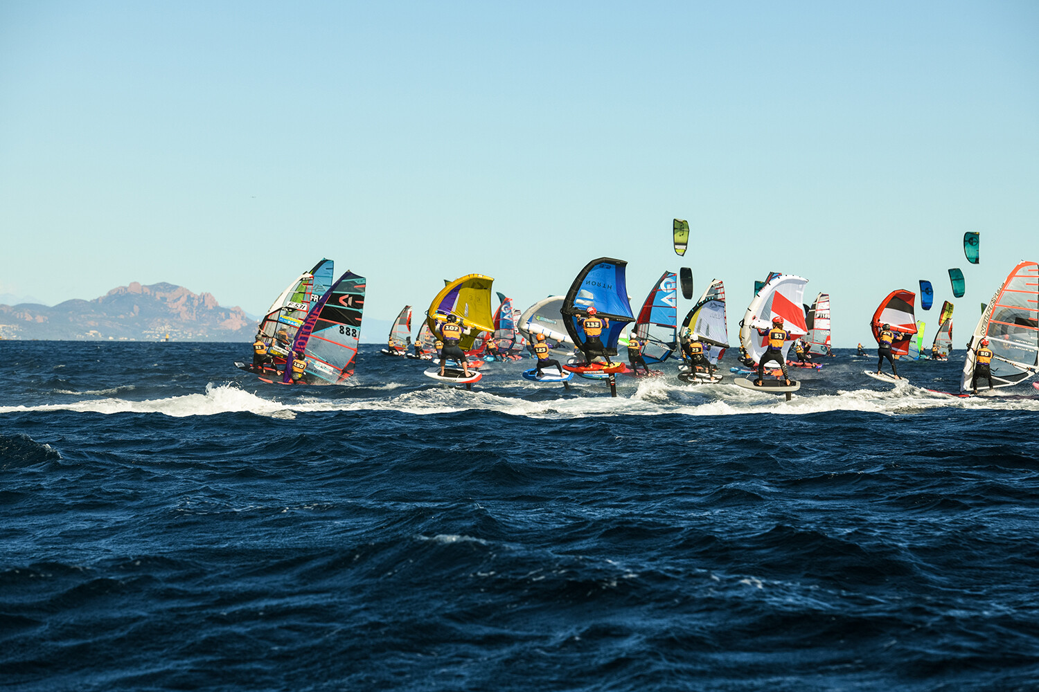 Nowadays, without any question of doubt, the foil is the weapon of choice for these kinds of long-distance courses. The bay of Saint Tropez offered an impressive and somewhat unexpected playground with 15 to 25 knots of wind, even gusting over 30 knots at times. All kinds of conditions were faced with two opposite winds, an easterly onshore breeze on the first day with rough seas, and flatter conditions with westerly Mistral winds for the last races. Courses were held over 30km, demanding long runs where cardinal marks were used as racing buoys in a stunning landscape. Dolphins, blue marlins and swordfish were seen on the course, which added a real touch of wildness to the event.