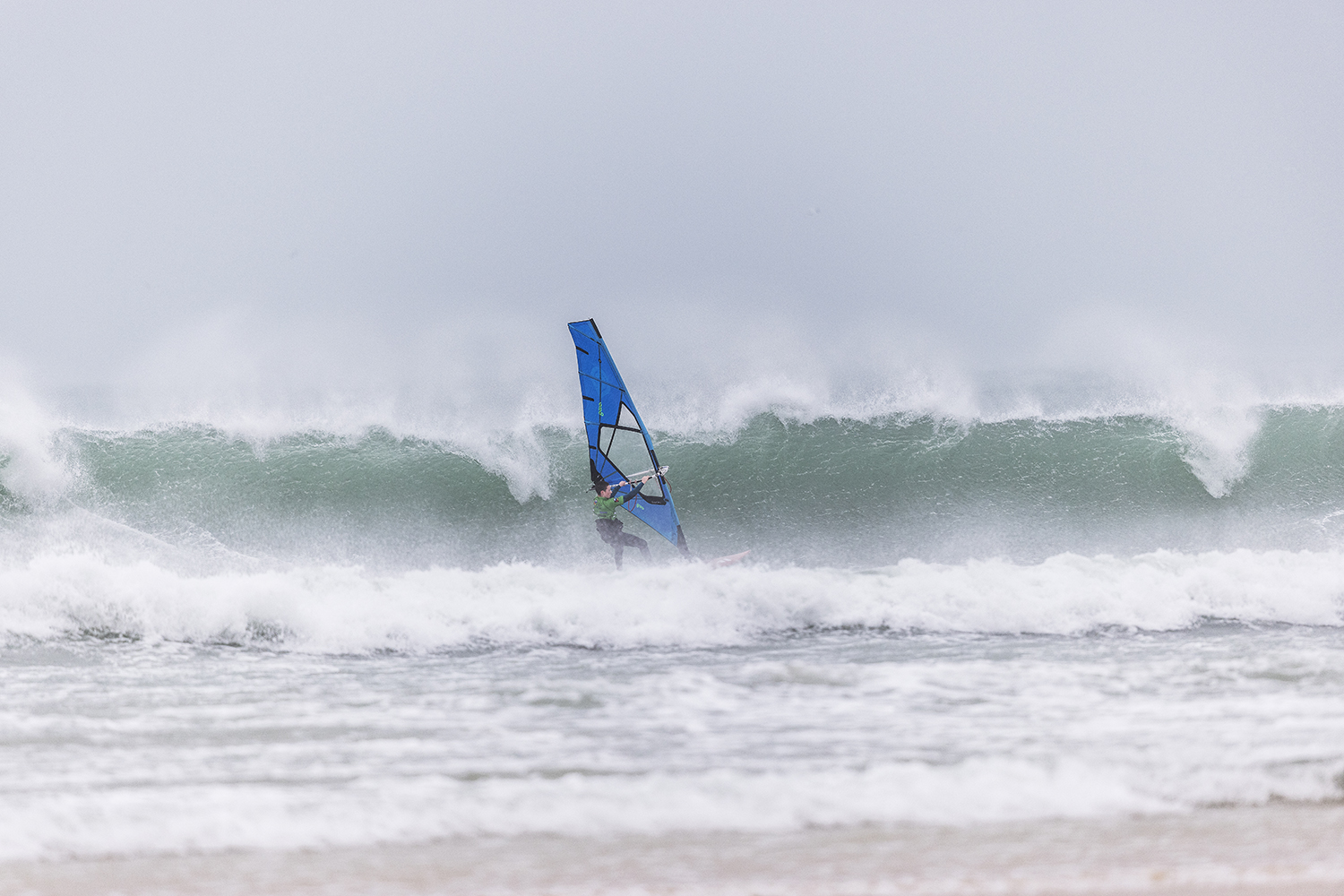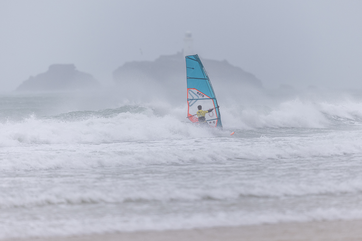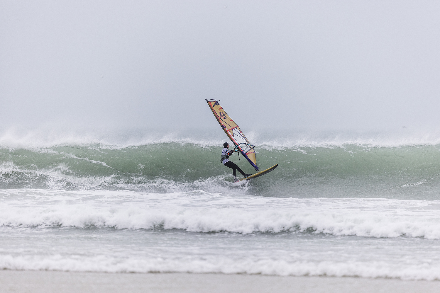 I was pleasantly surprised when we showed up at Gwithian. The original forecast looked ridiculous. It was clearly pretty big, but it looked doable. There was still a luck element to it still. If you were in the wrong place at the wrong time, you would just get eaten. The conditions were just epic to be honest. I really enjoyed the sailing. Occasionally I was a bit scared but on the whole, it was really fun. Some of the big waves were so choppy. I was really focussed on not crashing from the chop, rather than what was going on behind me. I started the day on the 3.7m and it was knee to waist high chop on the big ones. You could hardly do anything. It was like moguls everywhere. At the end I changed up to a 4.2m. I was riding my Goya 84L quad. I only just received my new boards so rode my faithful as I had not had time to get used to the new ones. I took that size so I would not bounce out from the chop. It was the same board I used in Tiree last year. I had to stick with what worked that I knew already.