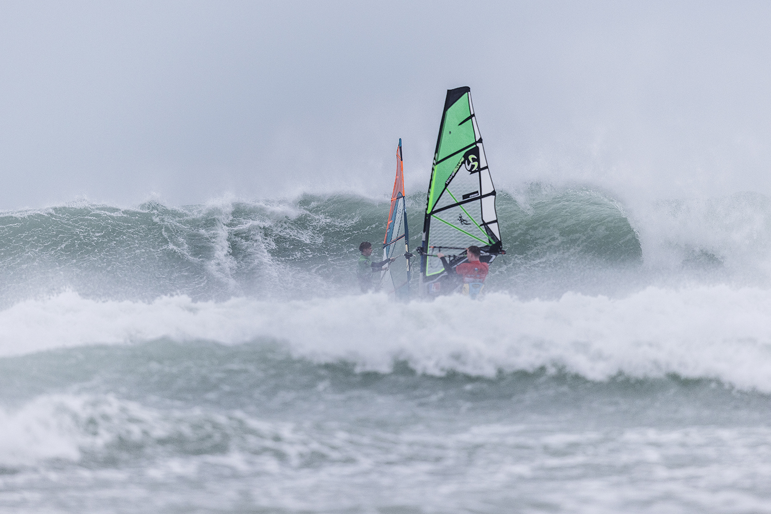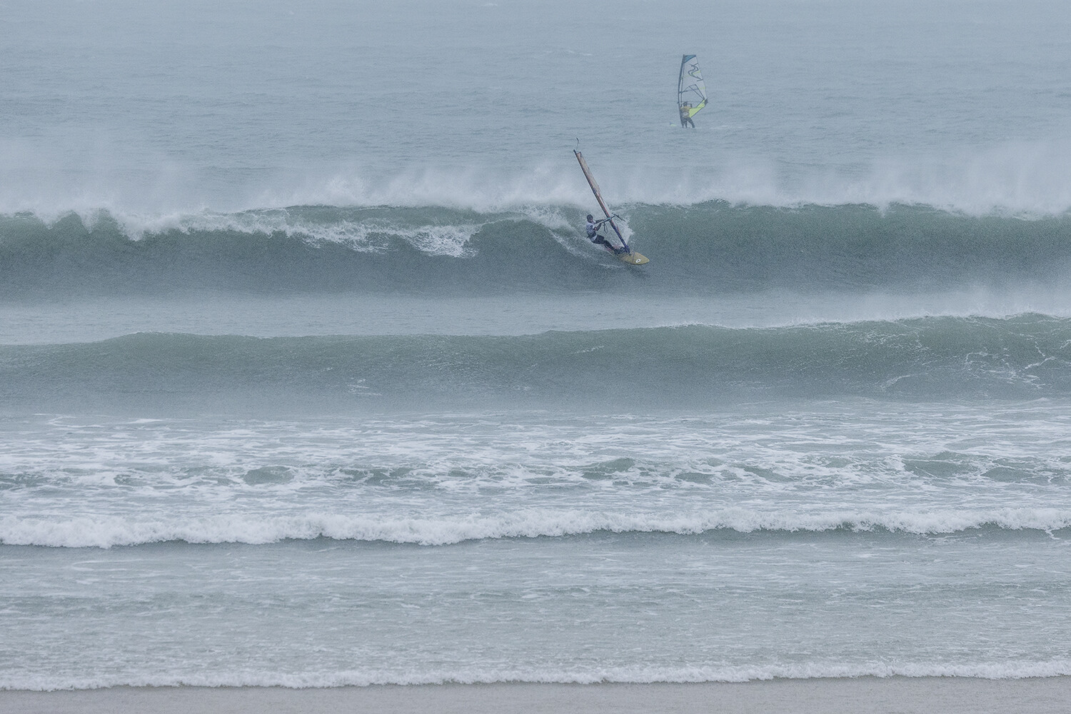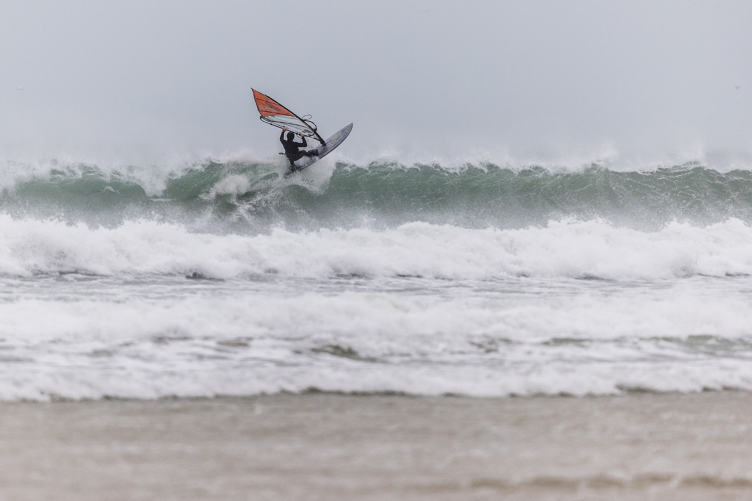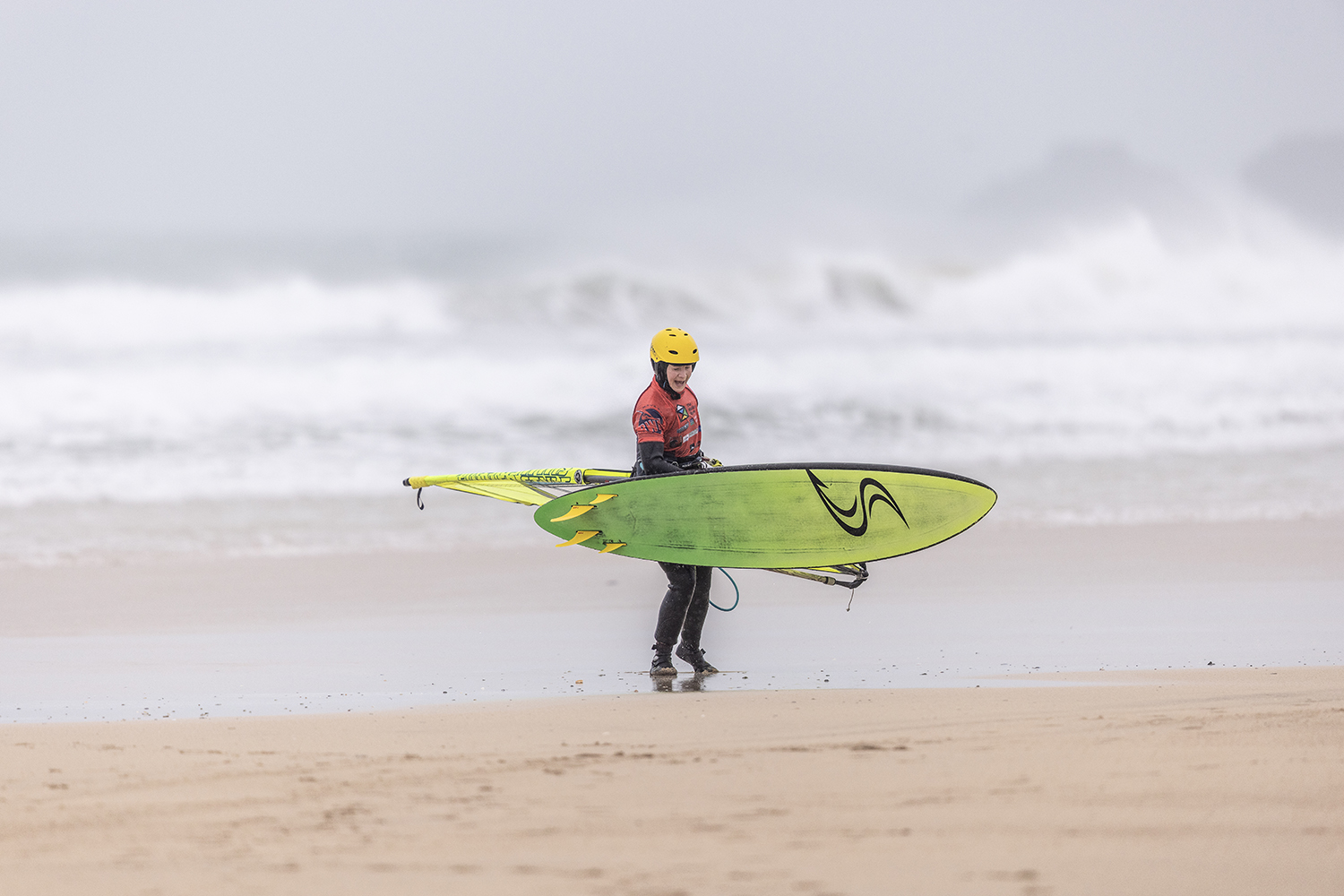 I was pleasantly surprised when we showed up at Gwithian. The original forecast looked ridiculous. It was clearly pretty big, but it looked doable. There was still a luck element to it still. If you were in the wrong place at the wrong time, you would just get eaten. The conditions were just epic to be honest. I really enjoyed the sailing. Occasionally I was a bit scared but on the whole, it was really fun. Some of the big waves were so choppy. I was really focussed on not crashing from the chop, rather than what was going on behind me. I started the day on the 3.7m and it was knee to waist high chop on the big ones. You could hardly do anything. It was like moguls everywhere. At the end I changed up to a 4.2m. I was riding my Goya 84L quad. I only just received my new boards so rode my faithful as I had not had time to get used to the new ones. I took that size so I would not bounce out from the chop. It was the same board I used in Tiree last year. I had to stick with what worked that I knew already.