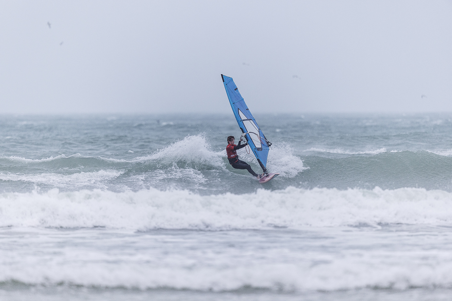I think that is the biggest Gwithian I have ever sailed. It was actually not crazy out there. The tide worked in our favour, because it was a little bit high it took the edge off the waves. I came down here last Spring and I sailed with Steve Thorpe on a day a bit smaller, but it was way heavier. It was nice to have big clean waves to ride. I really enjoyed it. I wanted to keep going. It was a shame we did a Dingle format because that meant it was over so quick. I was in the final after three heats and then that was it. I was just starting to get into it and then it ended. It was pretty wild out there.