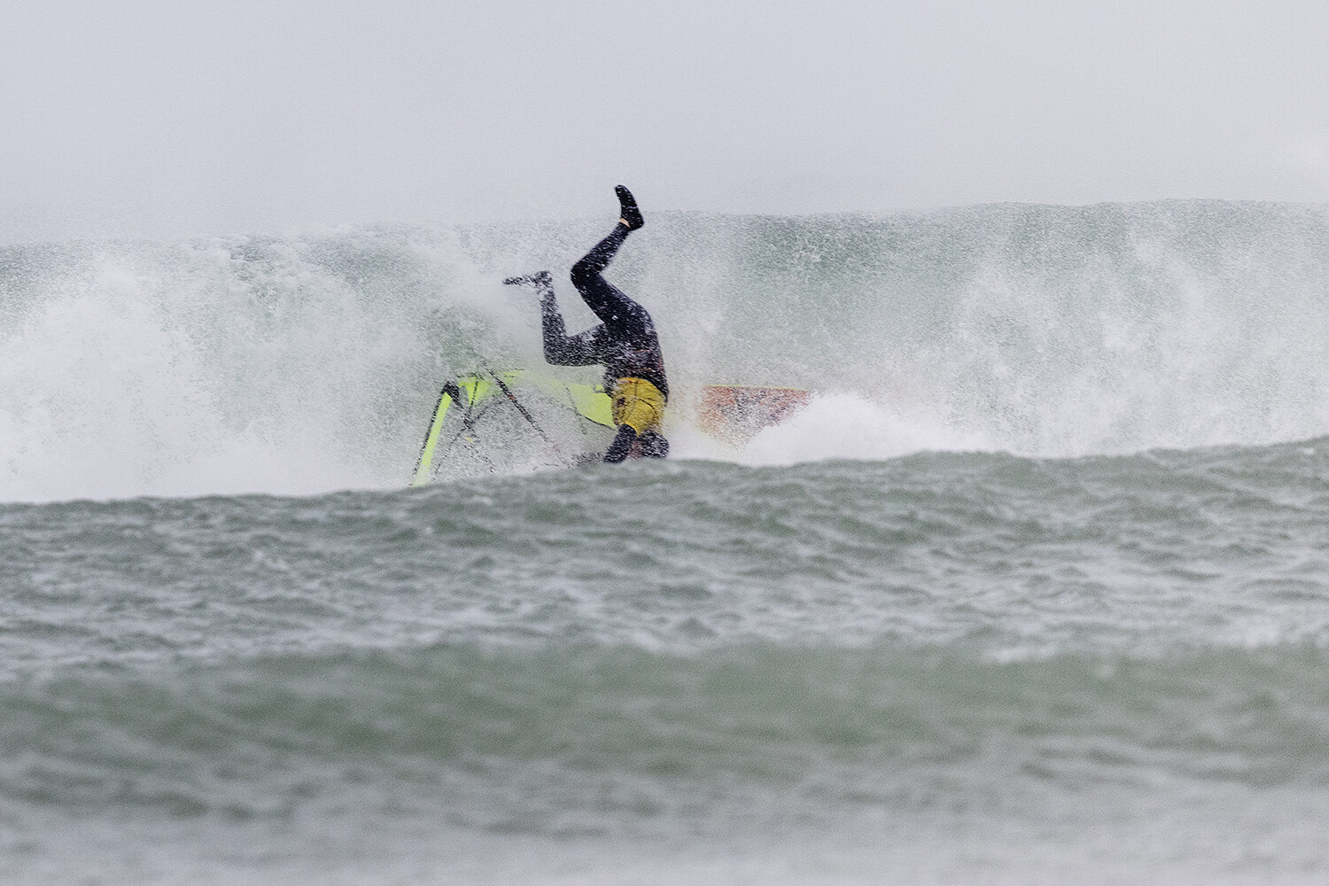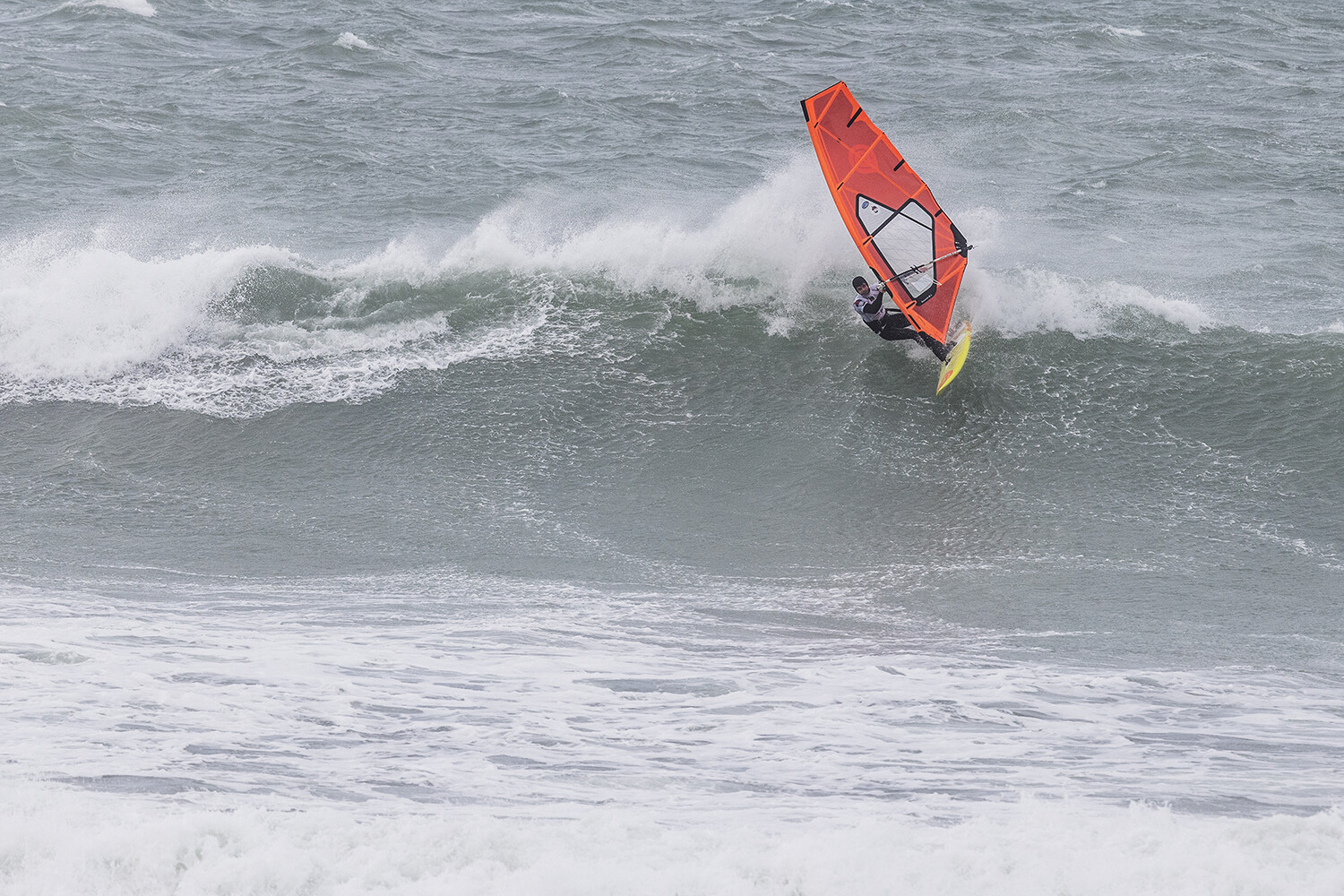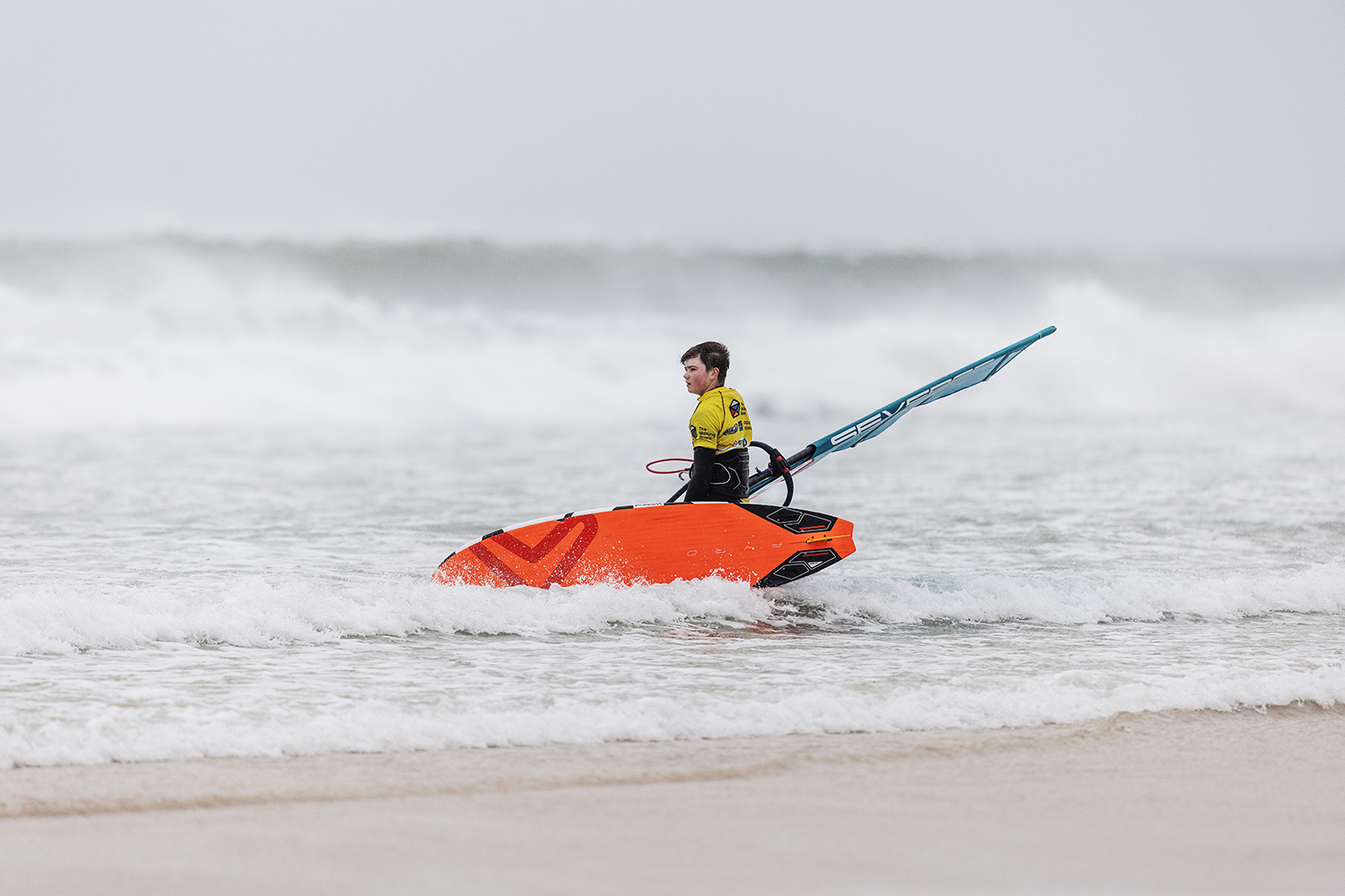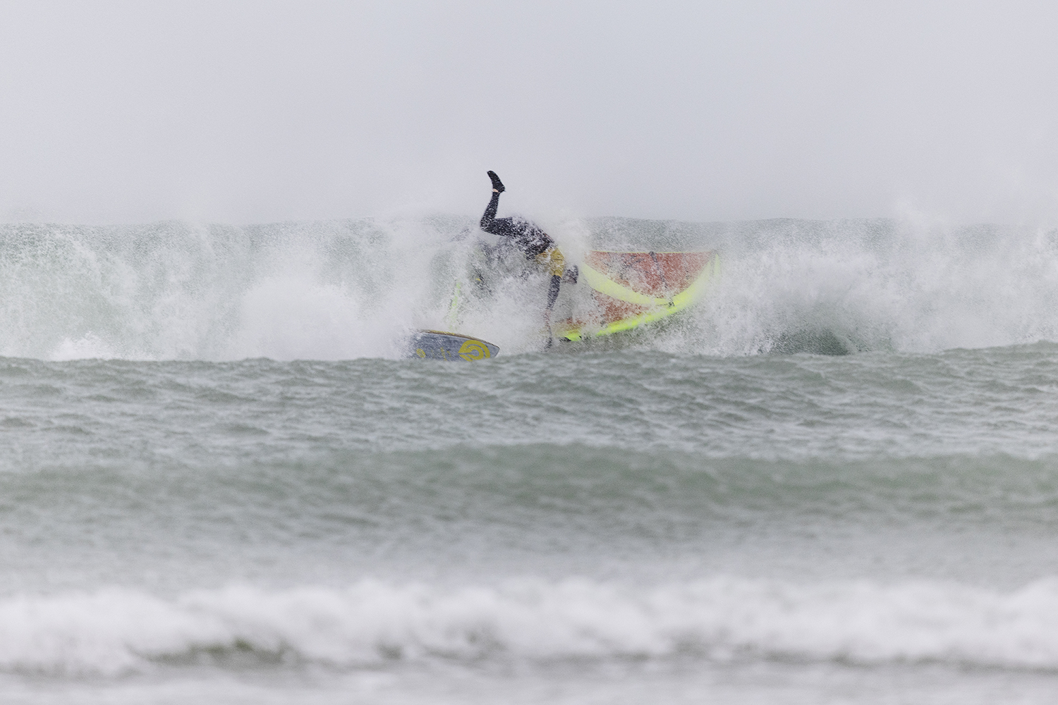 I have a little go but normally I am going for jumps or freestyle moves. With the cross off down the line, it was a bit different for me. I thought if I am going to have any shot at going through then I needed to go for the section, try hit it late and hope for the best. That was my game plan. I was riding a 68L Severne Pyro, with the quad set up. It is my favourite wave board I have ever had.