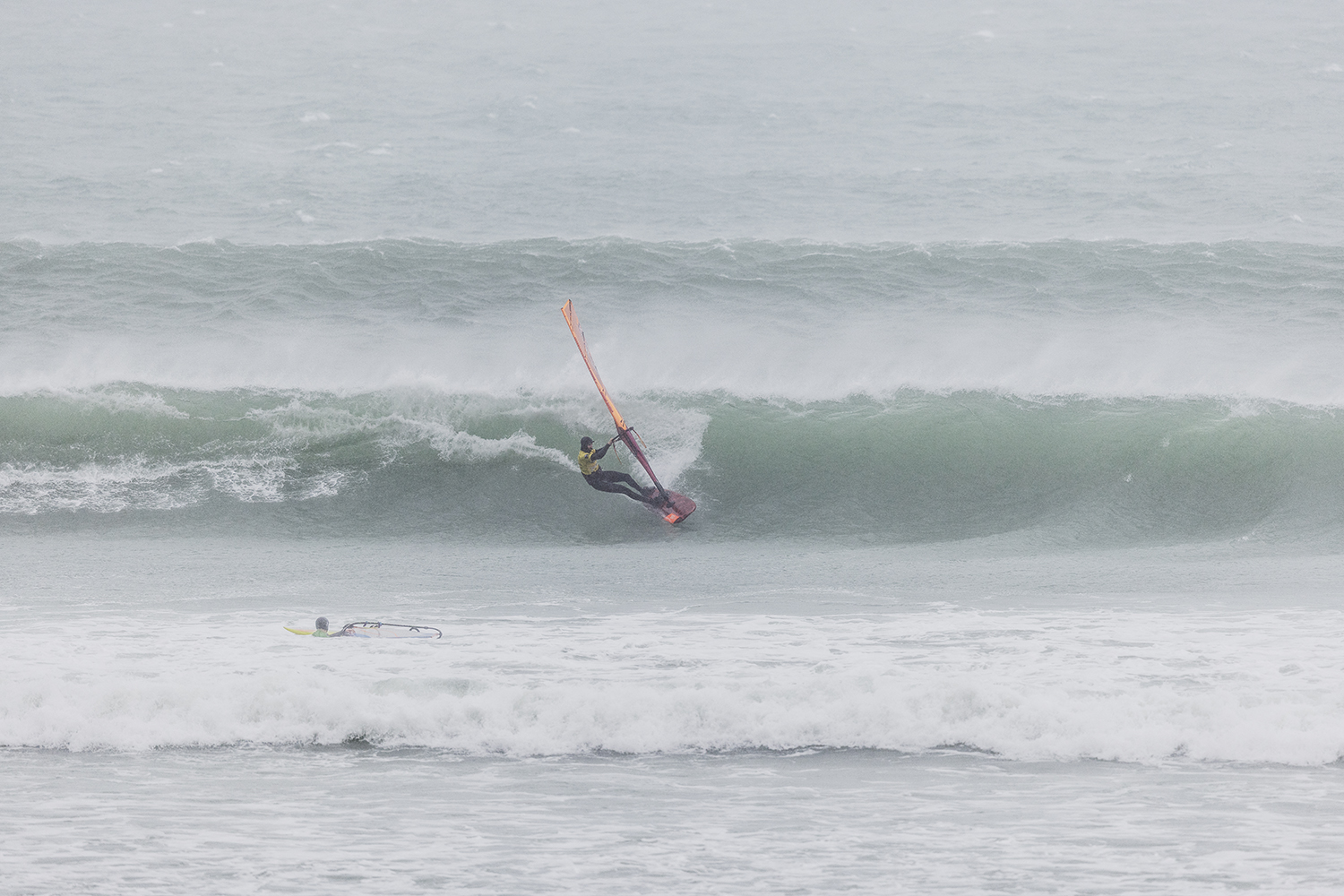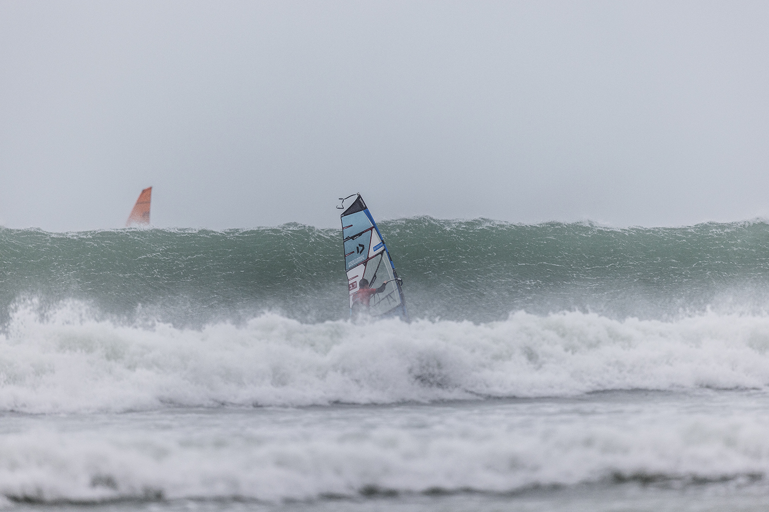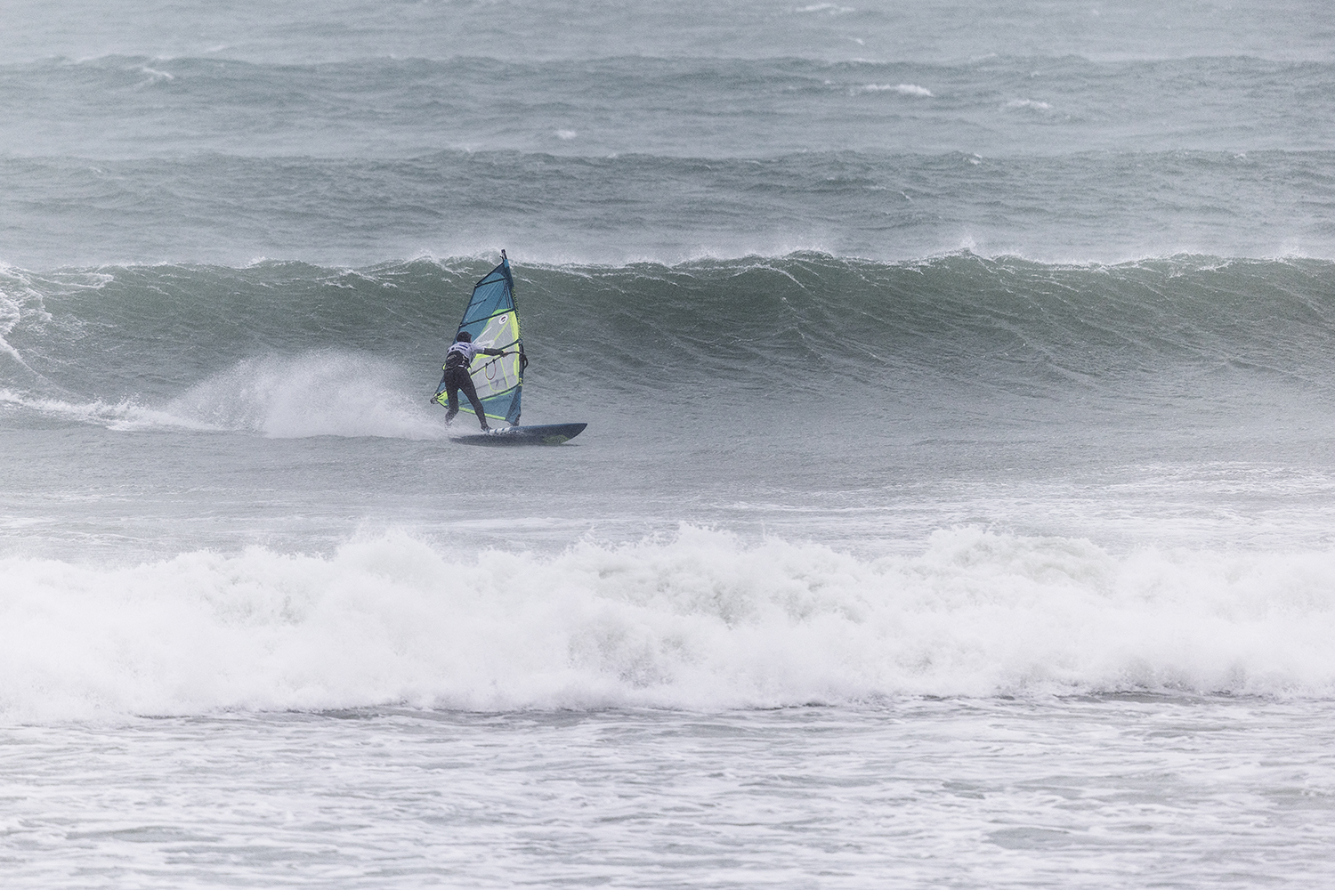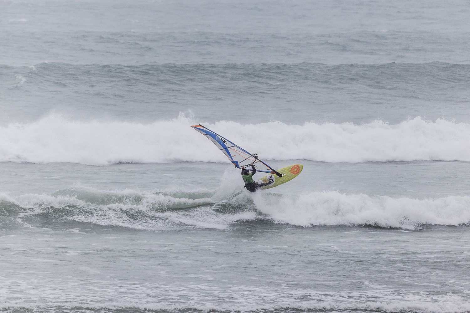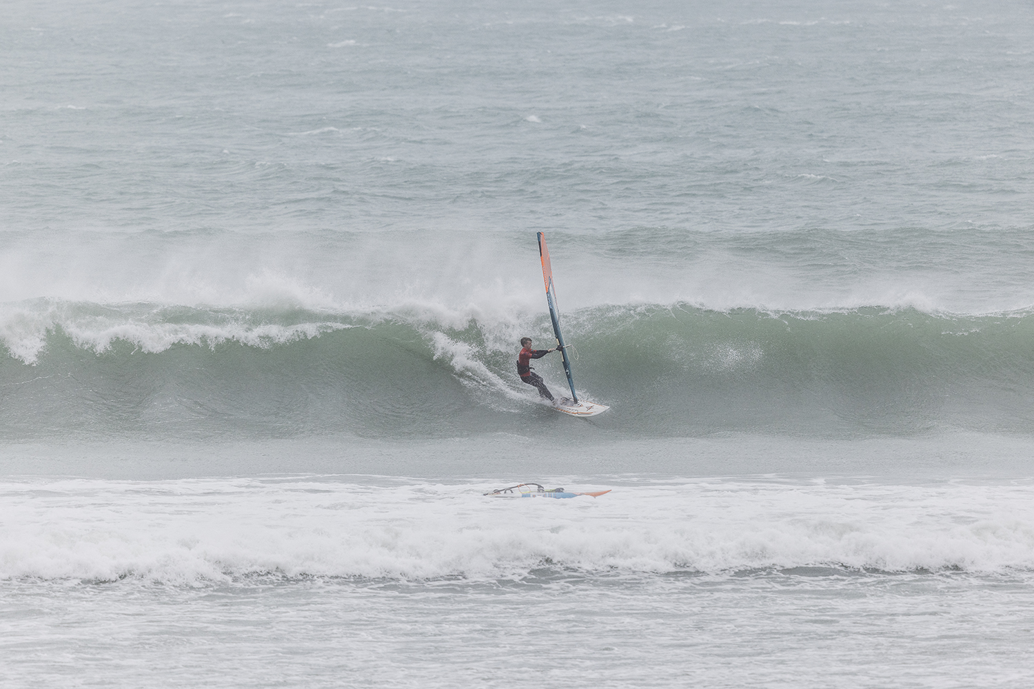 I was first on the water and figured I might as well get out there and break the ice. We had all see the forecast and there was a lot of anticipation. We were all a bit nervous at 4.5m swells and strong winds. The stronger wind actually helped. I’d rather it be windy than 5.3m weather when it is that big. The small sails can be a bit twitchy when the lulls come. I was a bit relived when I first got there to be honest. It was not as big as thought it might be. There is a size where it is still sailable, and you have to be a bit mindful.