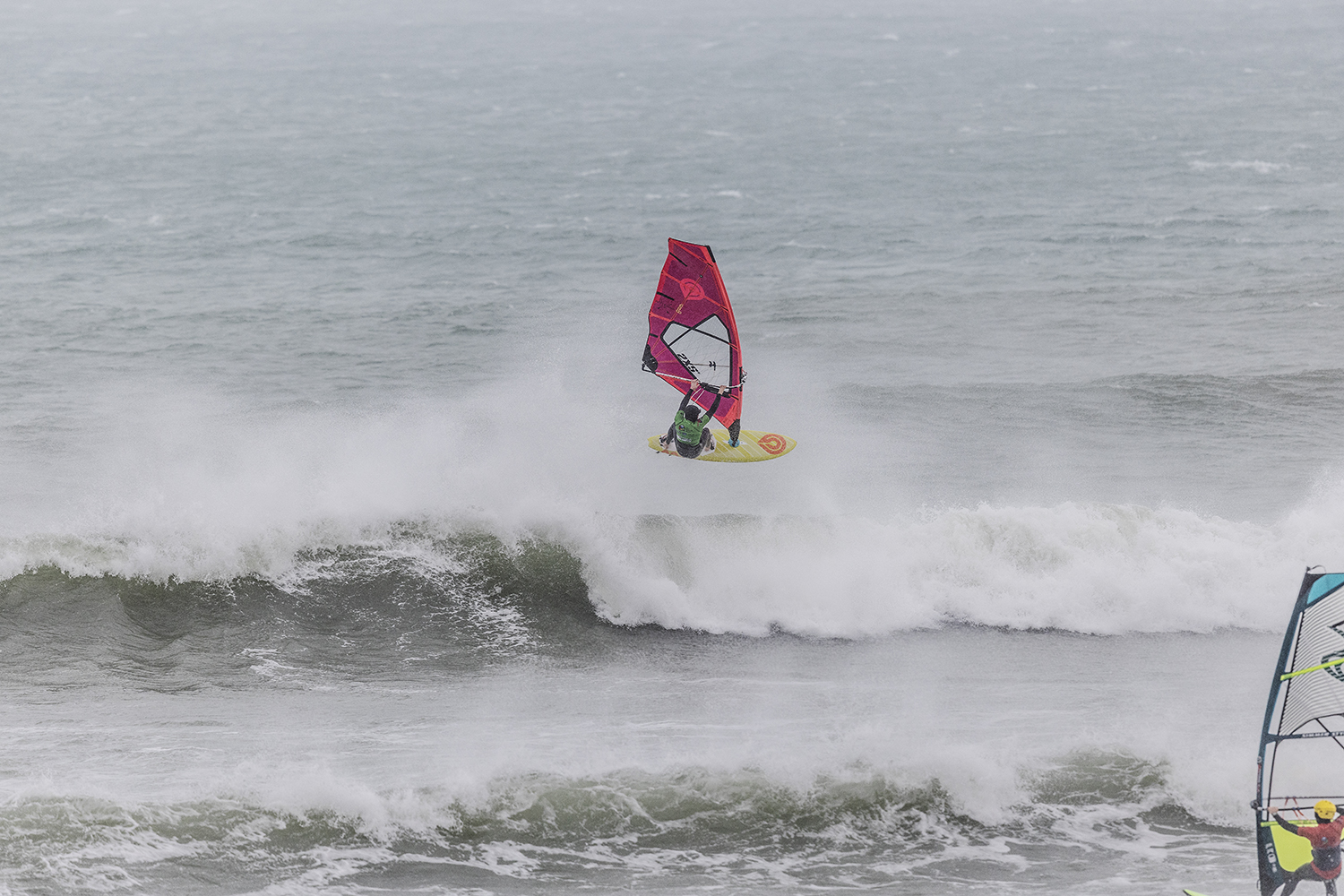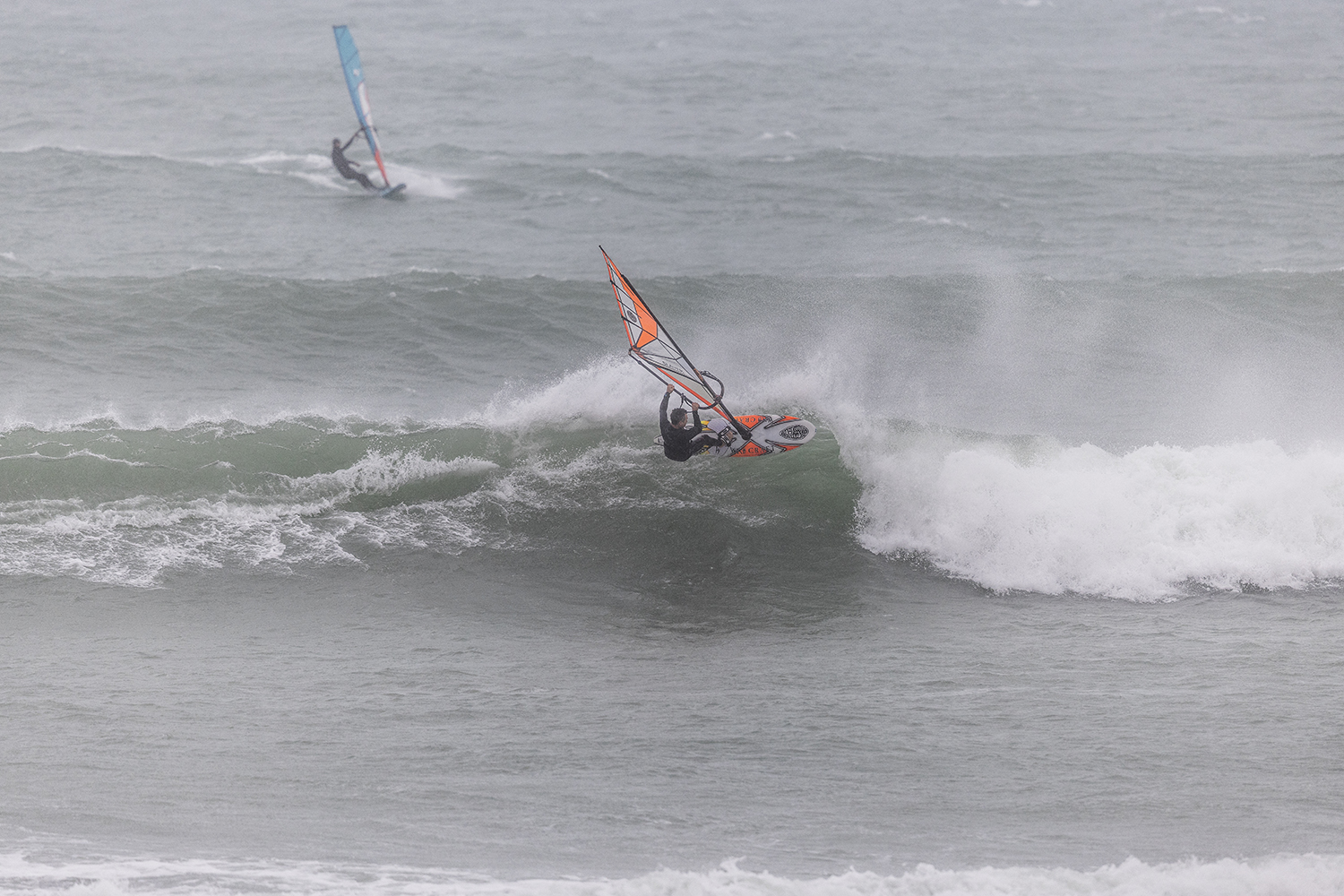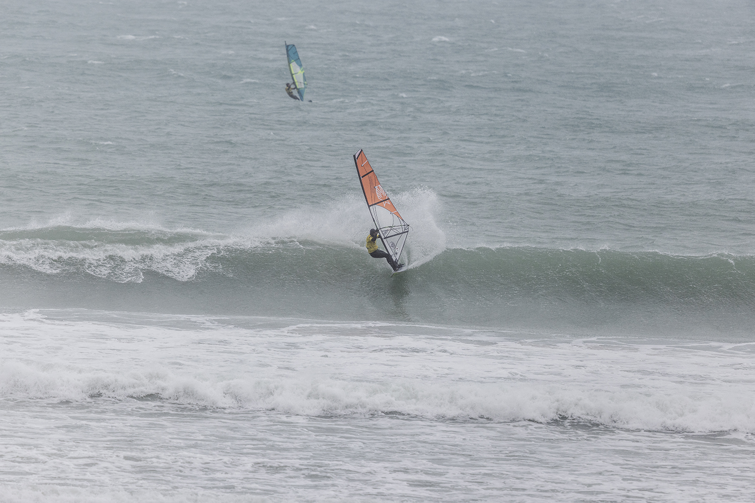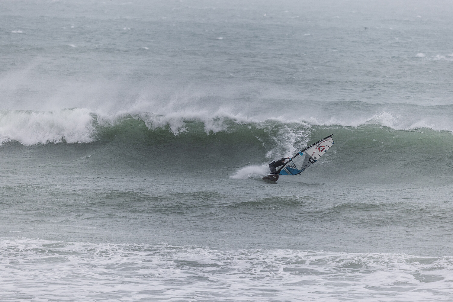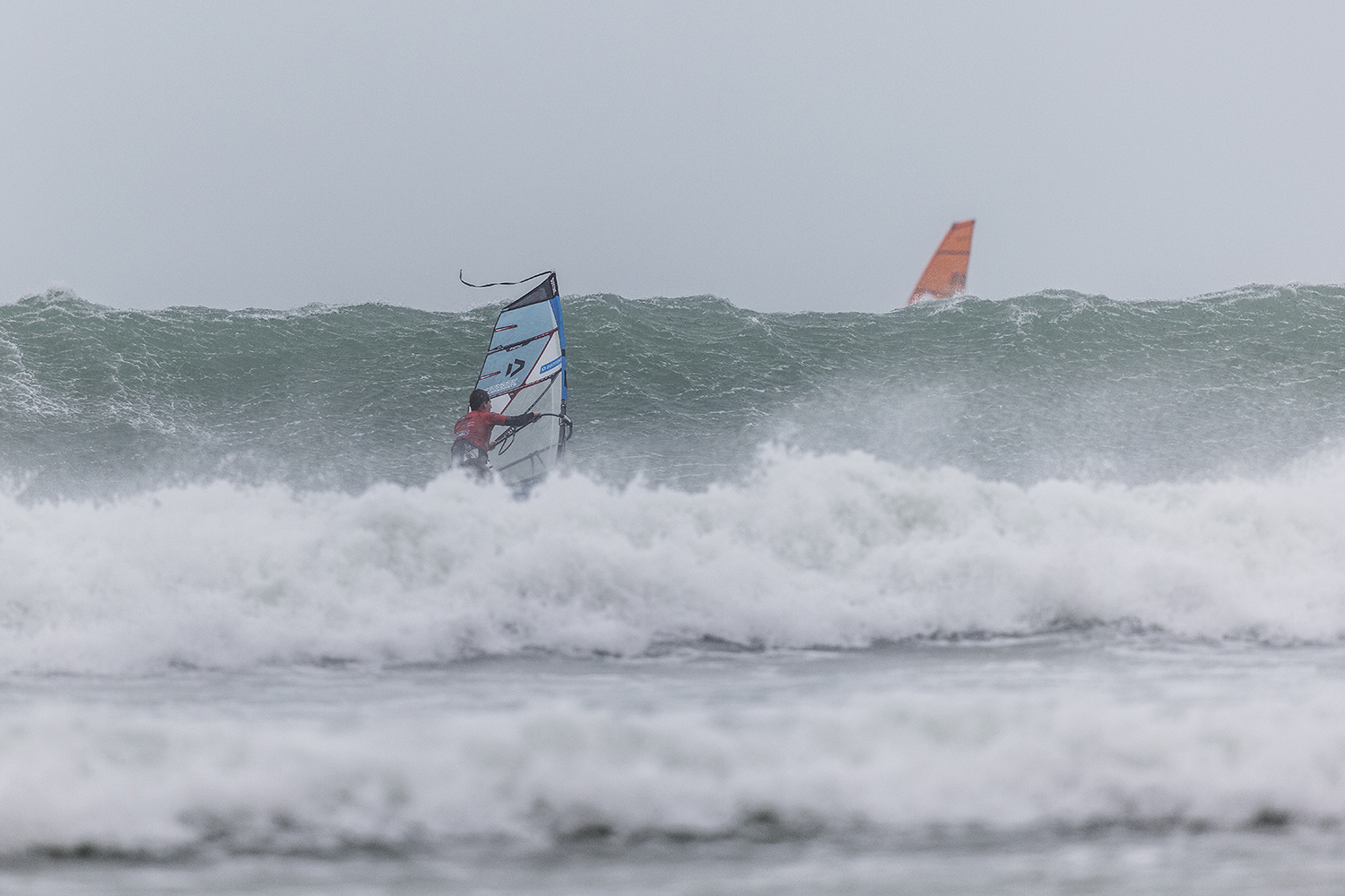 I was first on the water and figured I might as well get out there and break the ice. We had all see the forecast and there was a lot of anticipation. We were all a bit nervous at 4.5m swells and strong winds. The stronger wind actually helped. I’d rather it be windy than 5.3m weather when it is that big. The small sails can be a bit twitchy when the lulls come. I was a bit relived when I first got there to be honest. It was not as big as thought it might be. There is a size where it is still sailable, and you have to be a bit mindful.