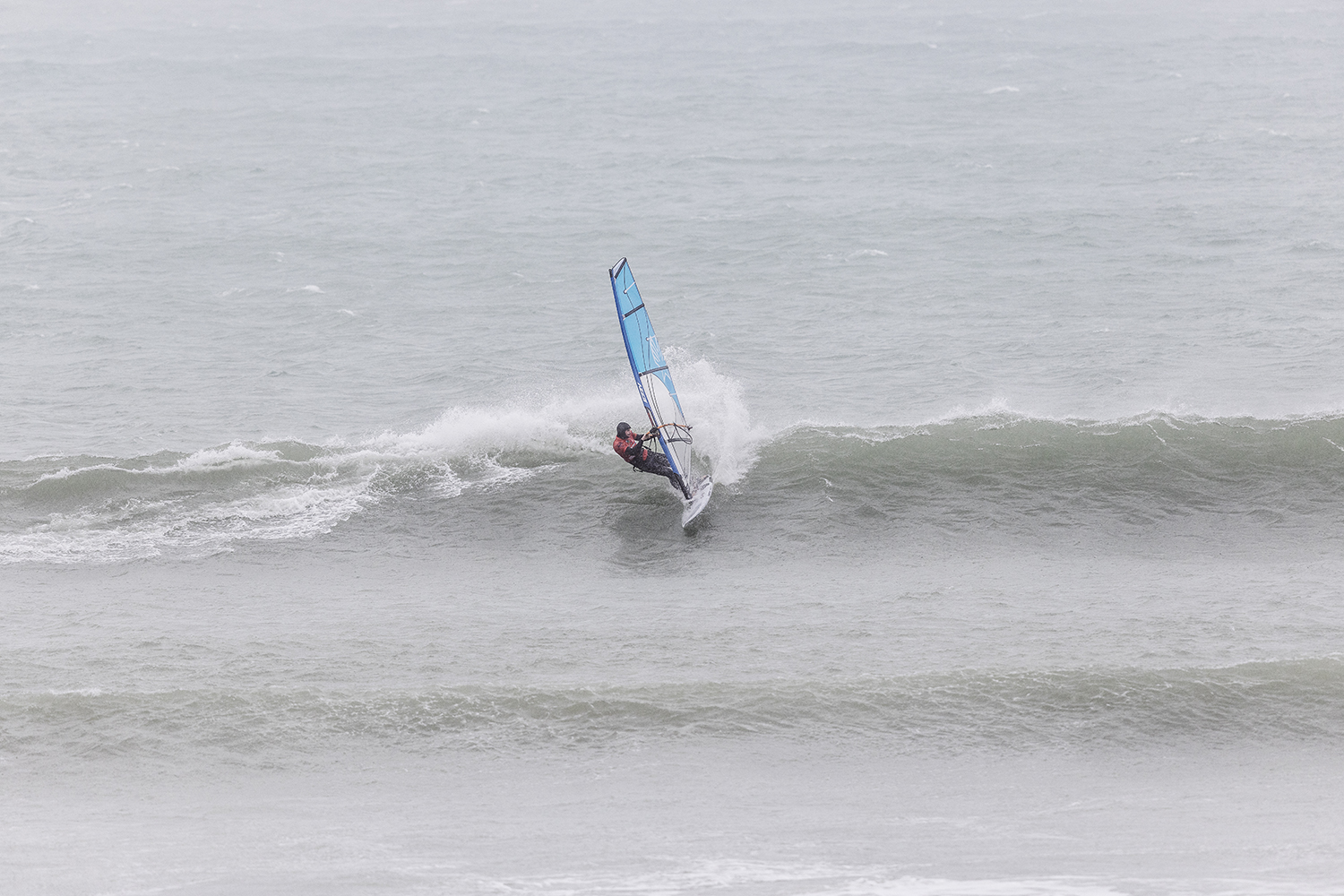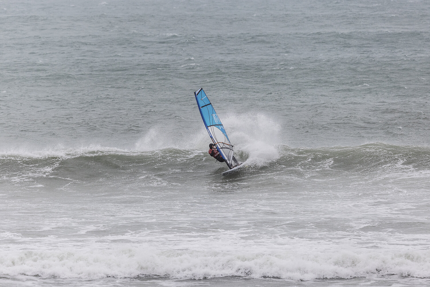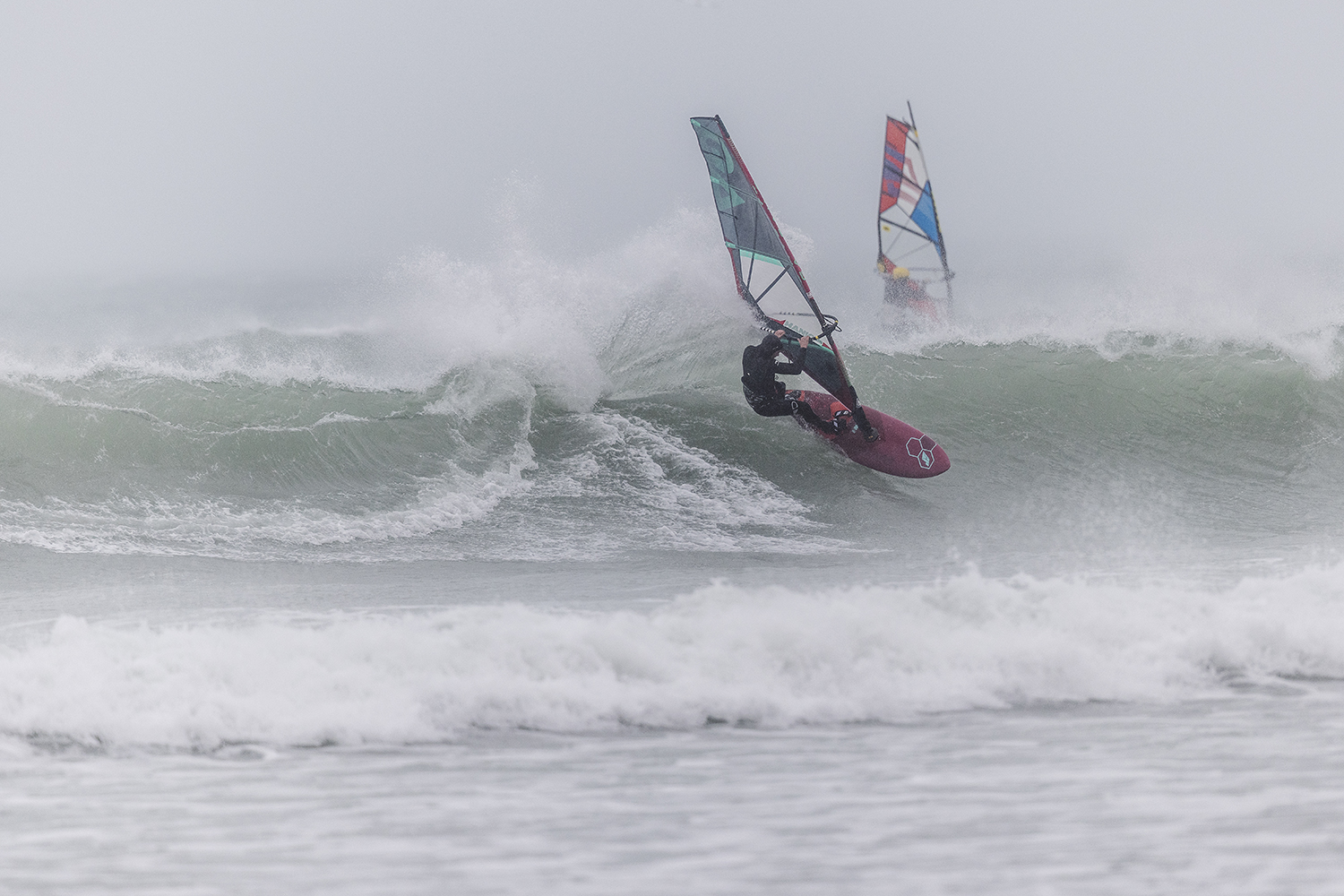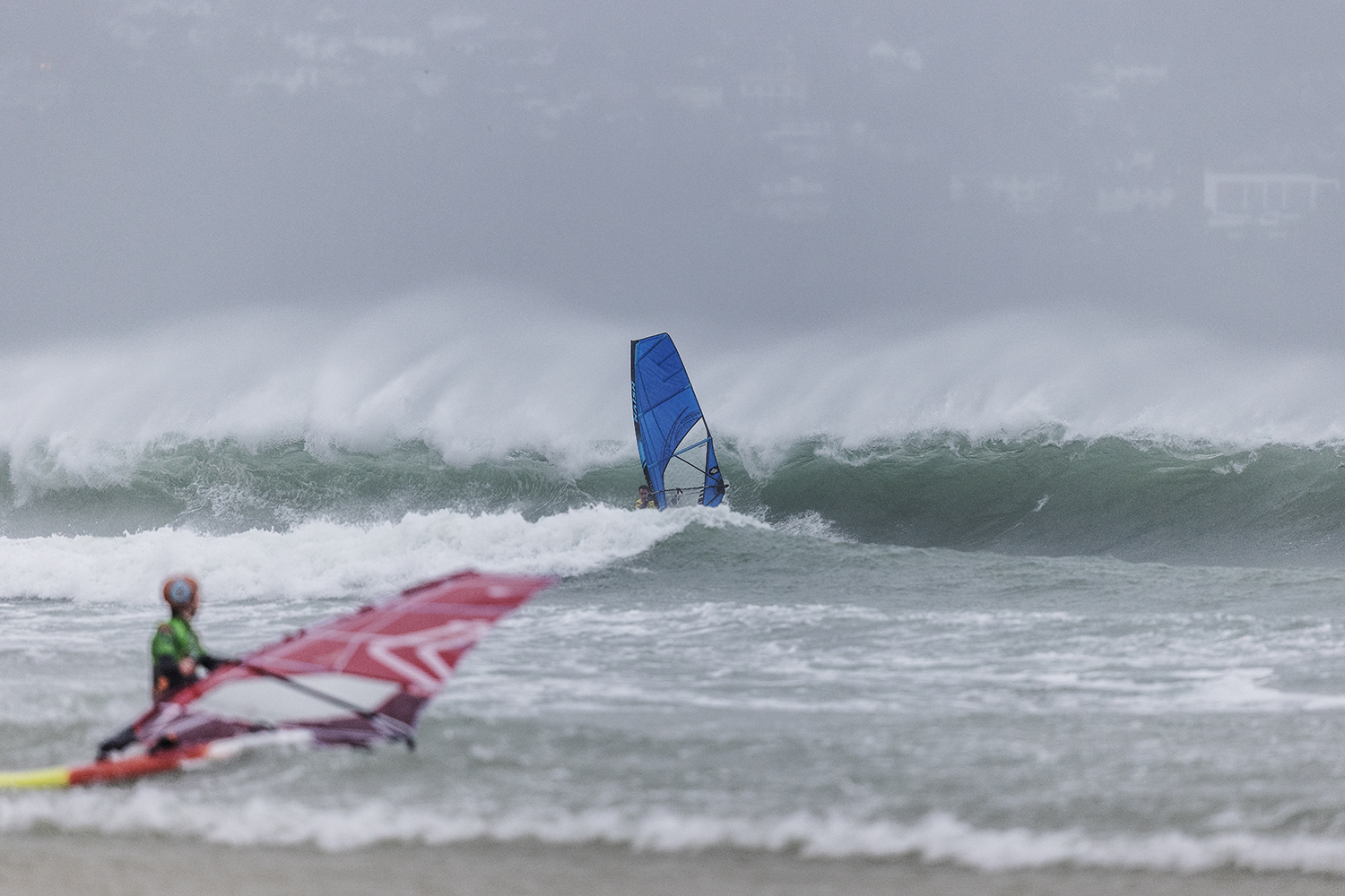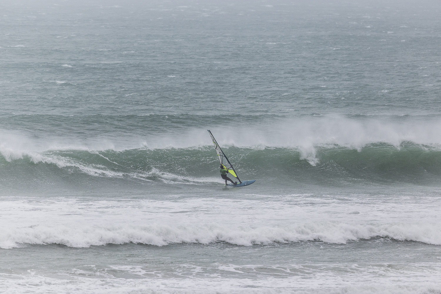 I was first on the water and figured I might as well get out there and break the ice. We had all see the forecast and there was a lot of anticipation. We were all a bit nervous at 4.5m swells and strong winds. The stronger wind actually helped. I’d rather it be windy than 5.3m weather when it is that big. The small sails can be a bit twitchy when the lulls come. I was a bit relived when I first got there to be honest. It was not as big as thought it might be. There is a size where it is still sailable, and you have to be a bit mindful.